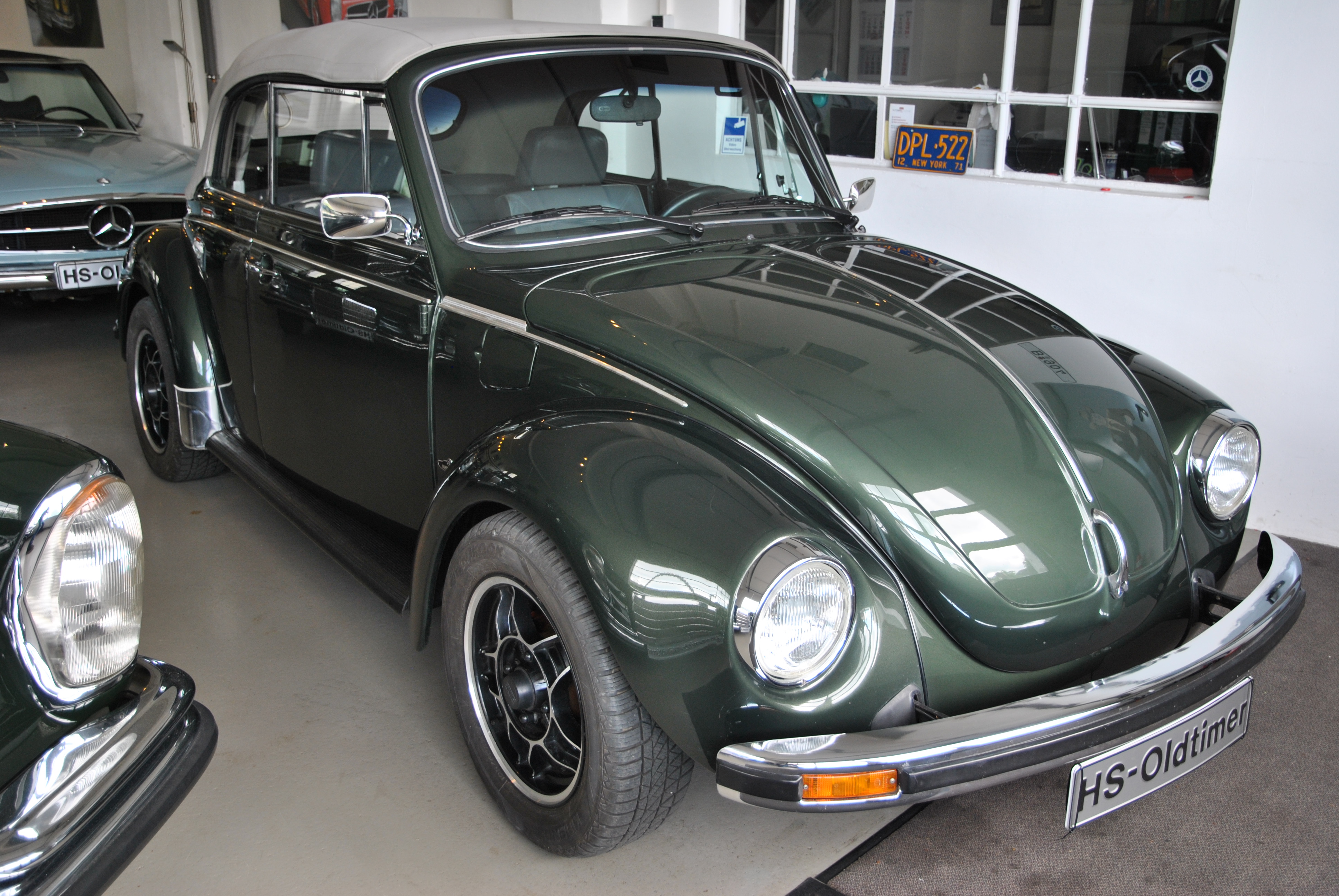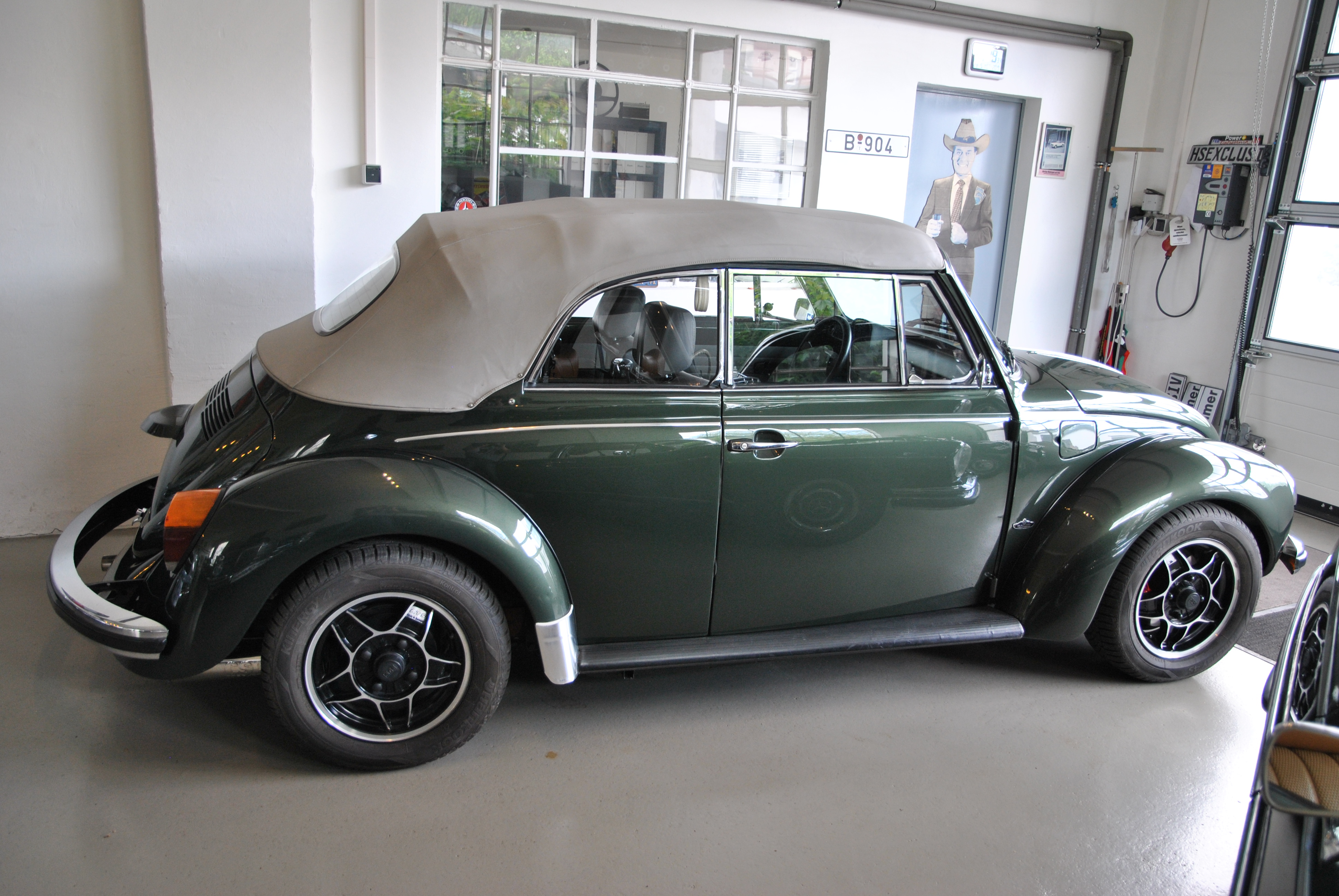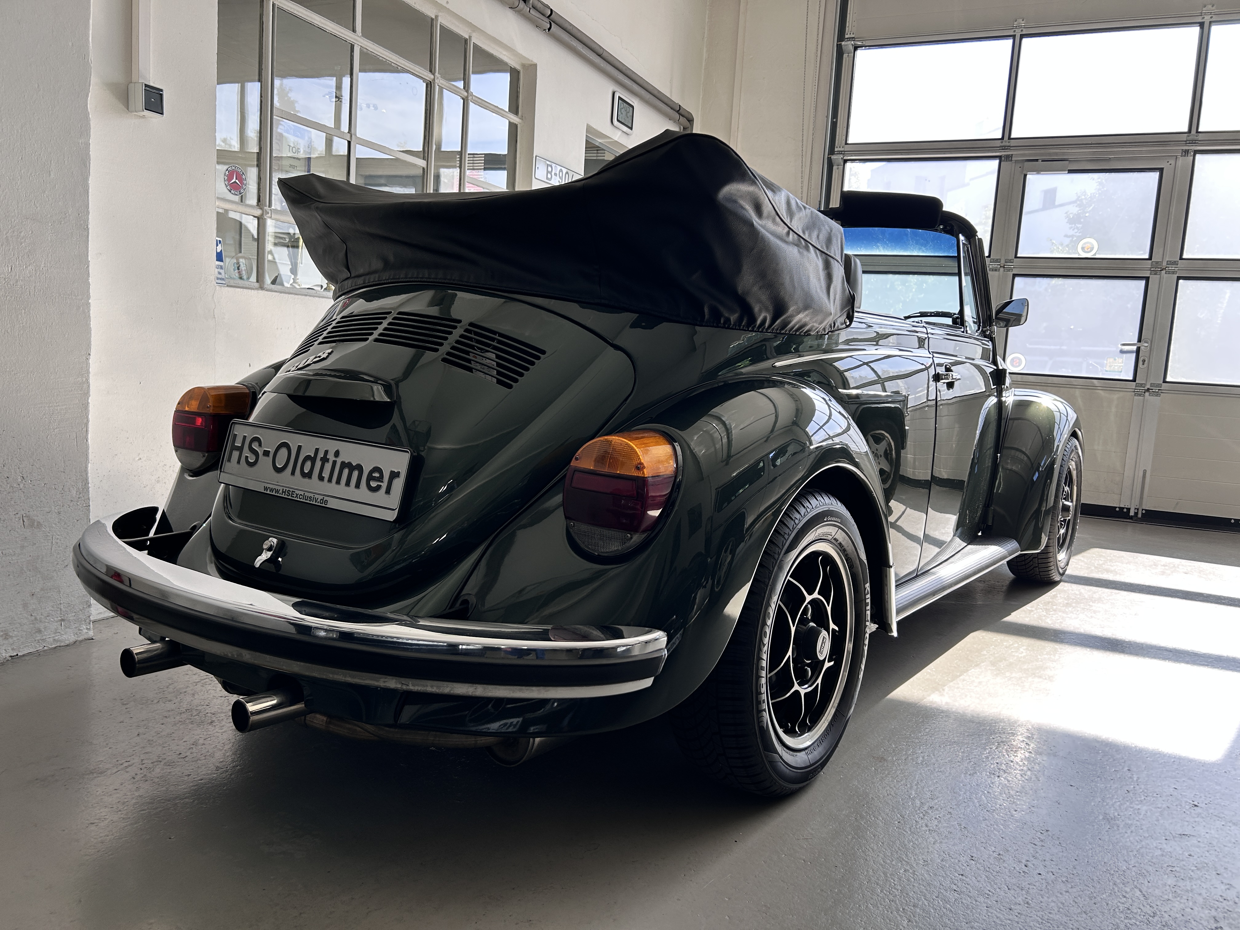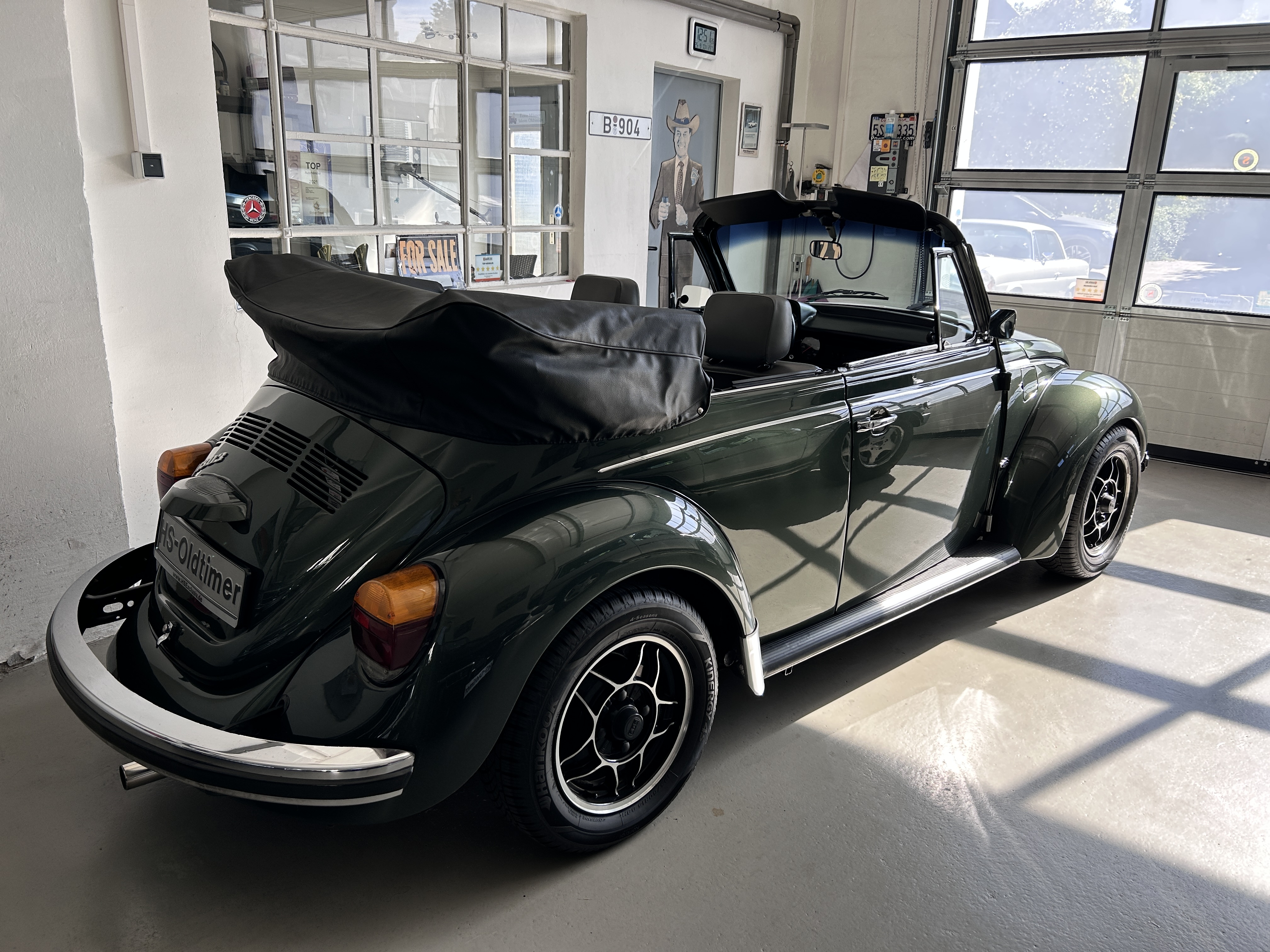 Ein beeindruckendes Käfer 1303 LS Cabriolet in dunkelgrün Metallic. Kaum Gebrauchsspuren. Super Karosserie, Rost haben wir auch an den typischen Stellen nicht gefunden. Die Spaltmaße sind auch sehr gut. Der Eigentümer hat sein Cabriolet intensiv gepflegt und viel Geld in Optik und Technik investiert und sogar einige Porsche Teile verbaut. Dieser VW fährt sich unglaublich gut und klingt sehr kernig durch den dezenten Sportauspuff. Der Motor läuft phantastisch und die Schaltung ist nicht im geringsten hakelig. Wir haben schon einige schöne 1303 hier gehabt, aber so ein besonderes Exemplar noch nicht. Die Leistungssteigerung auf ca. 70 PS macht sich sehr positiv bemerkbar im heutigen Straßenverkehr und schont den Motor. Es wurde alles Eingetragen und er hat natürlich auch eine H-Abnahme. Wer einen der Besten Käfer sucht, sollte sich diesen auf jeden Fall anschauen, es lohnt sich wie immer bei uns! Wir freuen uns auf Ihren Anruf und Besuch. Weitere schöne Oldtimer finden Sie auf unserer eigenen Homepage: HS-Oldtimer.de