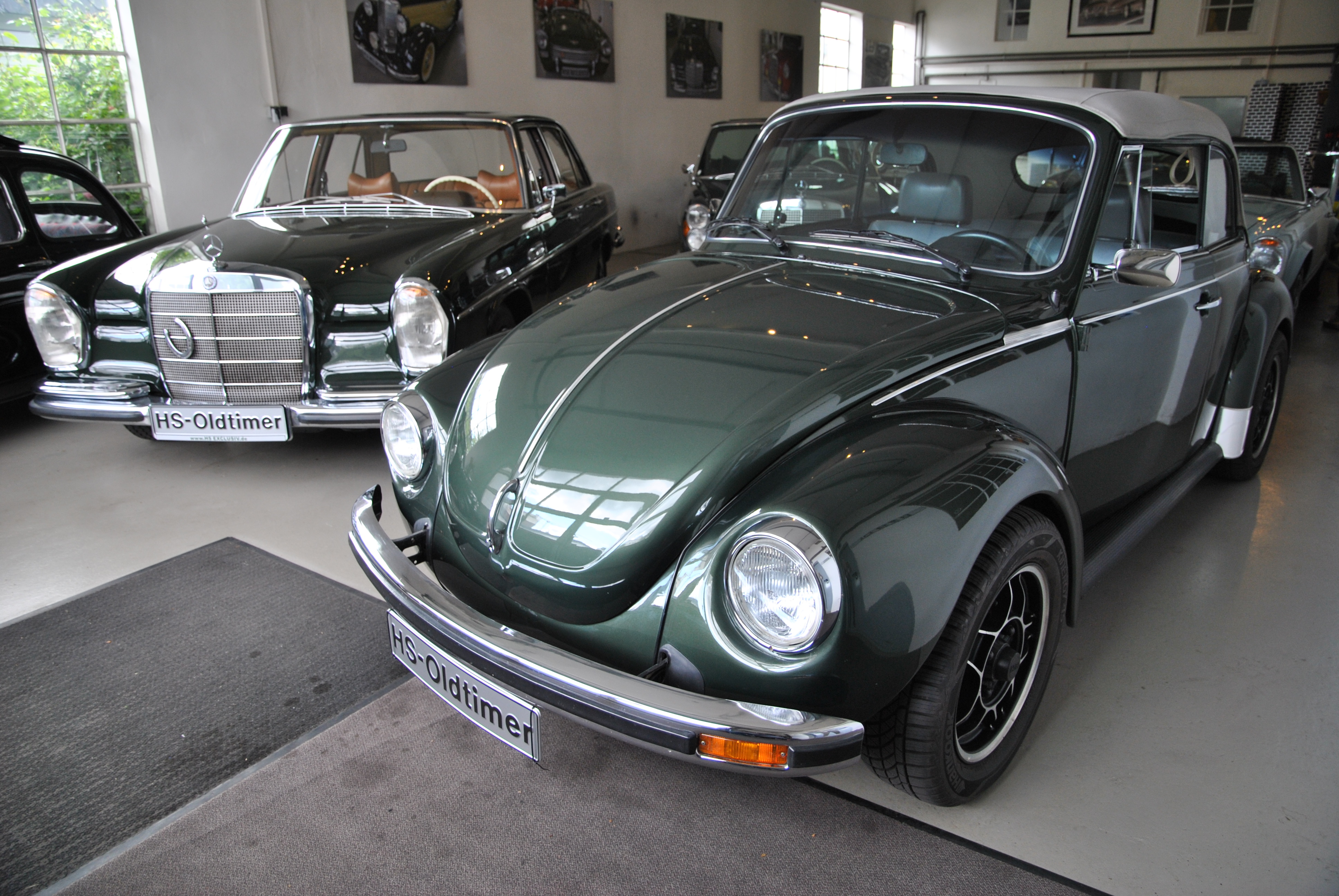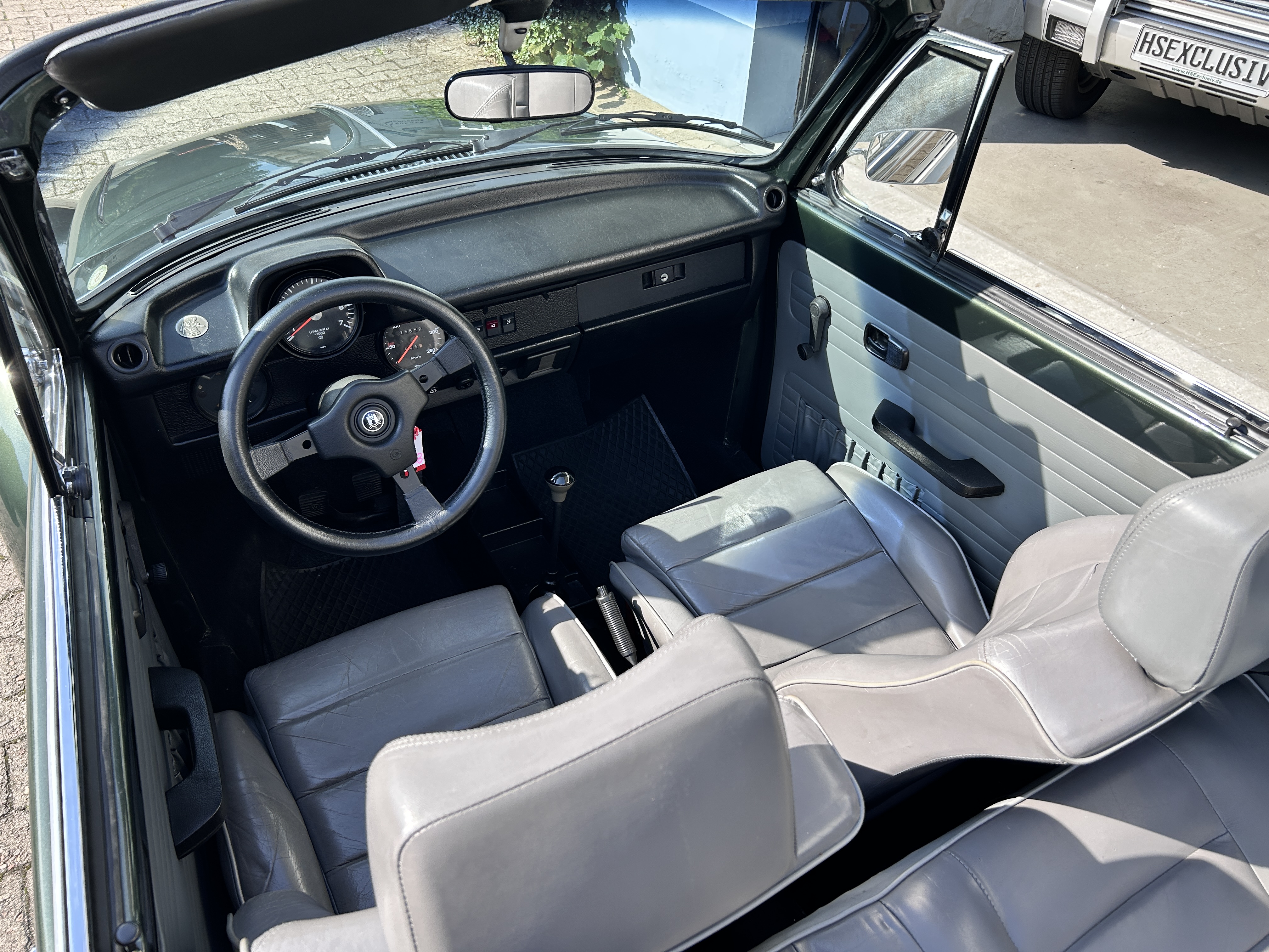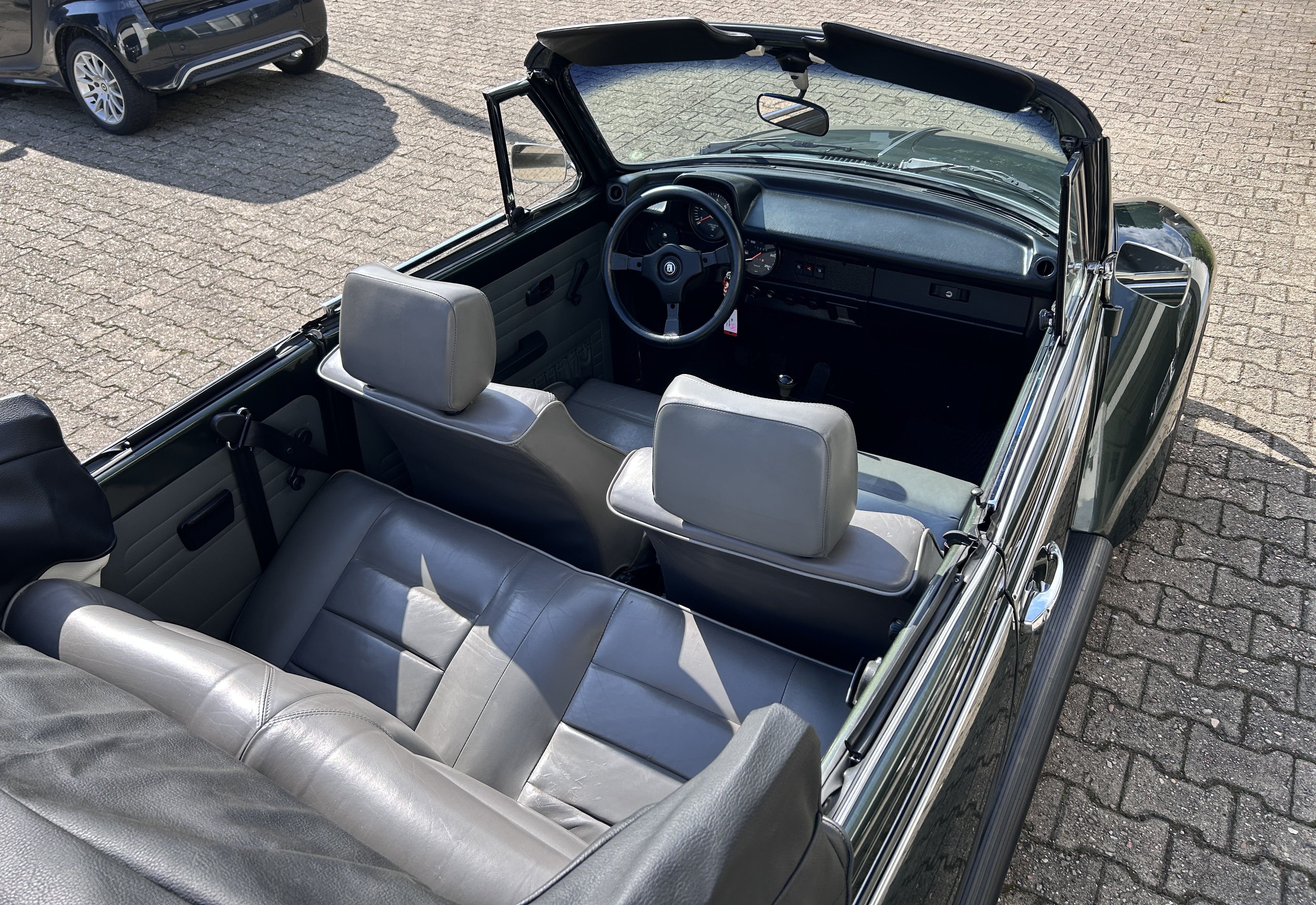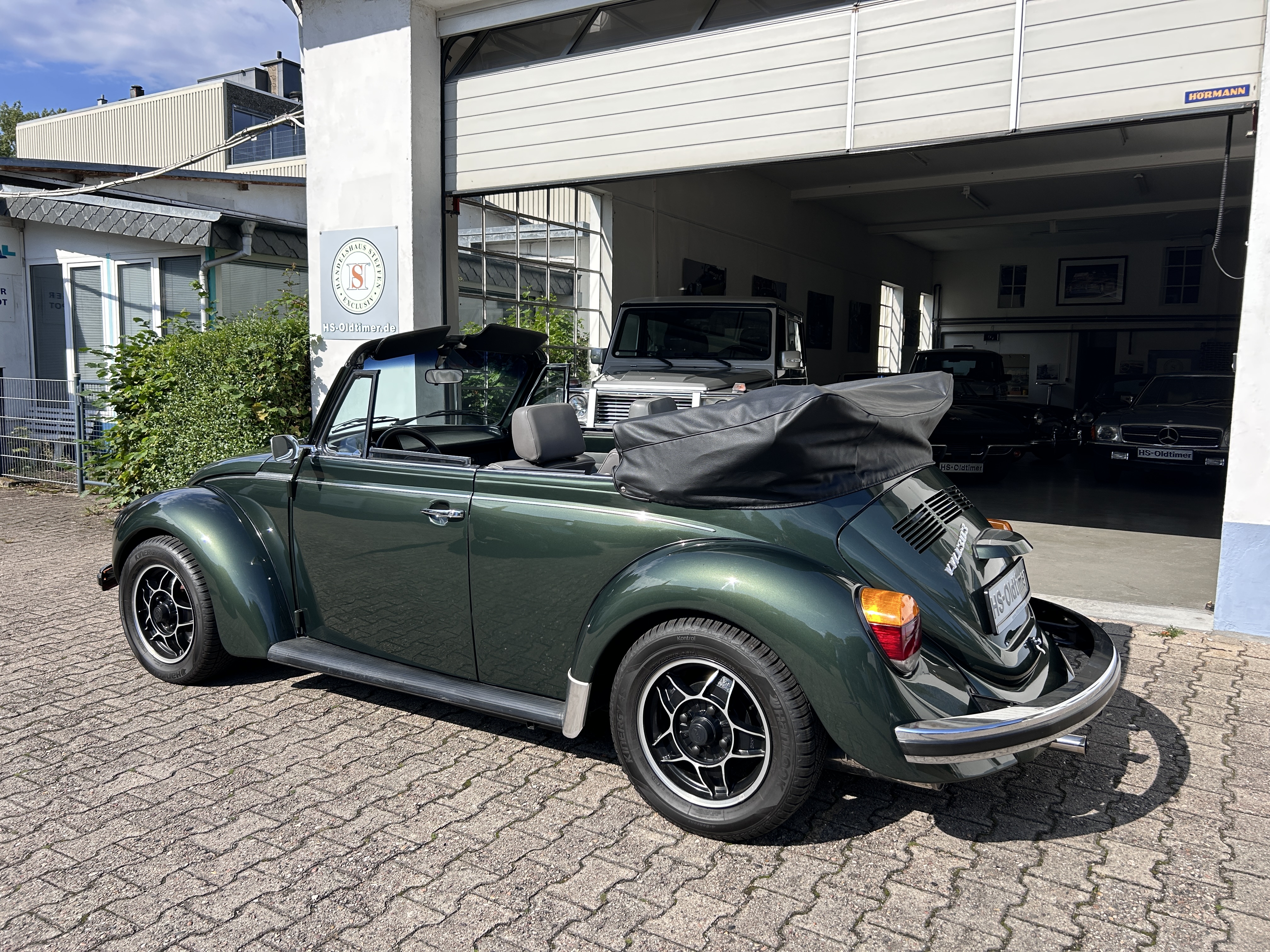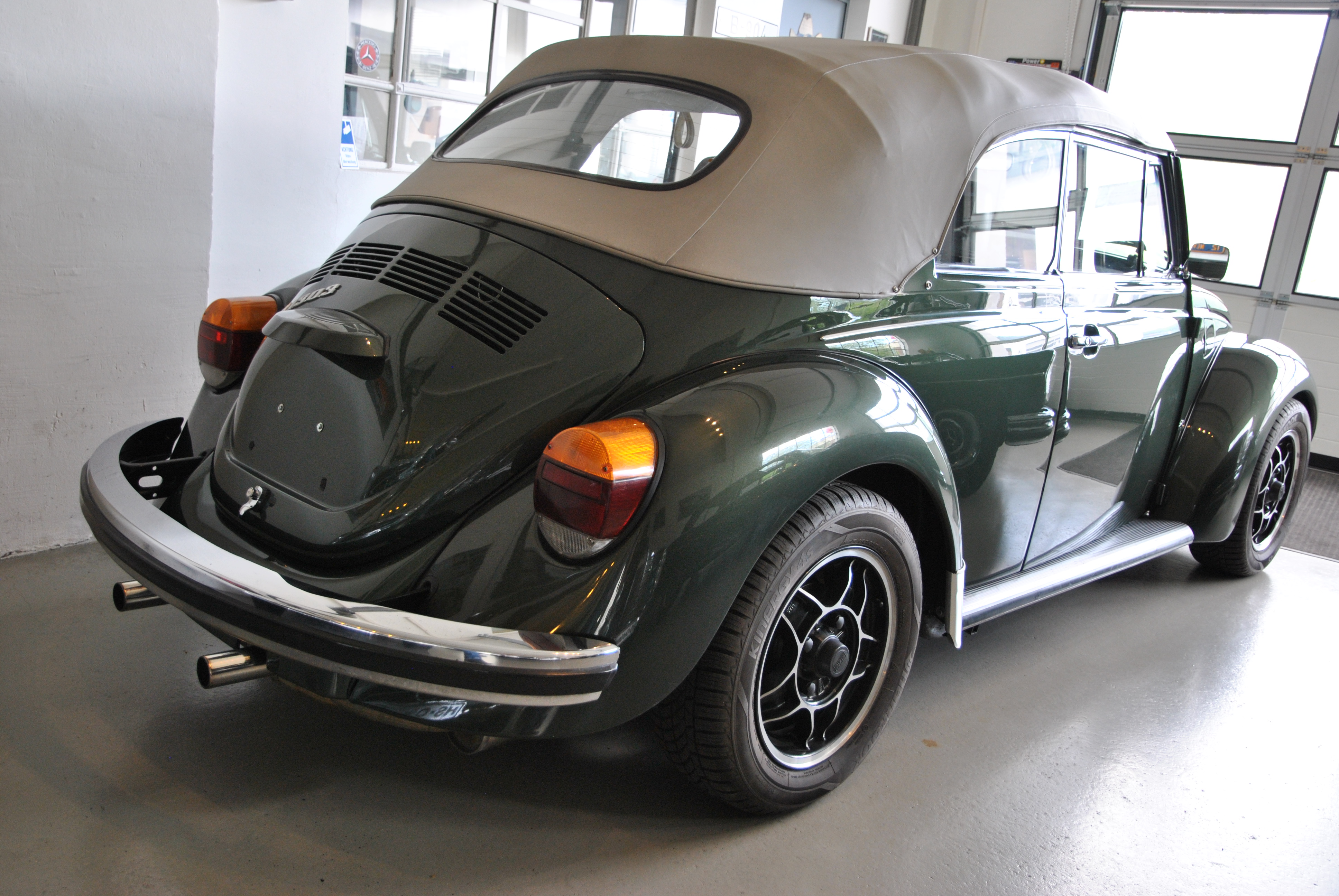 Ein beeindruckendes Käfer 1303 LS Cabriolet in dunkelgrün Metallic. Kaum Gebrauchsspuren. Super Karosserie, Rost haben wir auch an den typischen Stellen nicht gefunden. Die Spaltmaße sind auch sehr gut. Der Eigentümer hat sein Cabriolet intensiv gepflegt und viel Geld in Optik und Technik investiert und sogar einige Porsche Teile verbaut. Dieser VW fährt sich unglaublich gut und klingt sehr kernig durch den dezenten Sportauspuff. Der Motor läuft phantastisch und die Schaltung ist nicht im geringsten hakelig. Wir haben schon einige schöne 1303 hier gehabt, aber so ein besonderes Exemplar noch nicht. Die Leistungssteigerung auf ca. 70 PS macht sich sehr positiv bemerkbar im heutigen Straßenverkehr und schont den Motor. Es wurde alles Eingetragen und er hat natürlich auch eine H-Abnahme. Wer einen der Besten Käfer sucht, sollte sich diesen auf jeden Fall anschauen, es lohnt sich wie immer bei uns! Wir freuen uns auf Ihren Anruf und Besuch. Weitere schöne Oldtimer finden Sie auf unserer eigenen Homepage: HS-Oldtimer.de