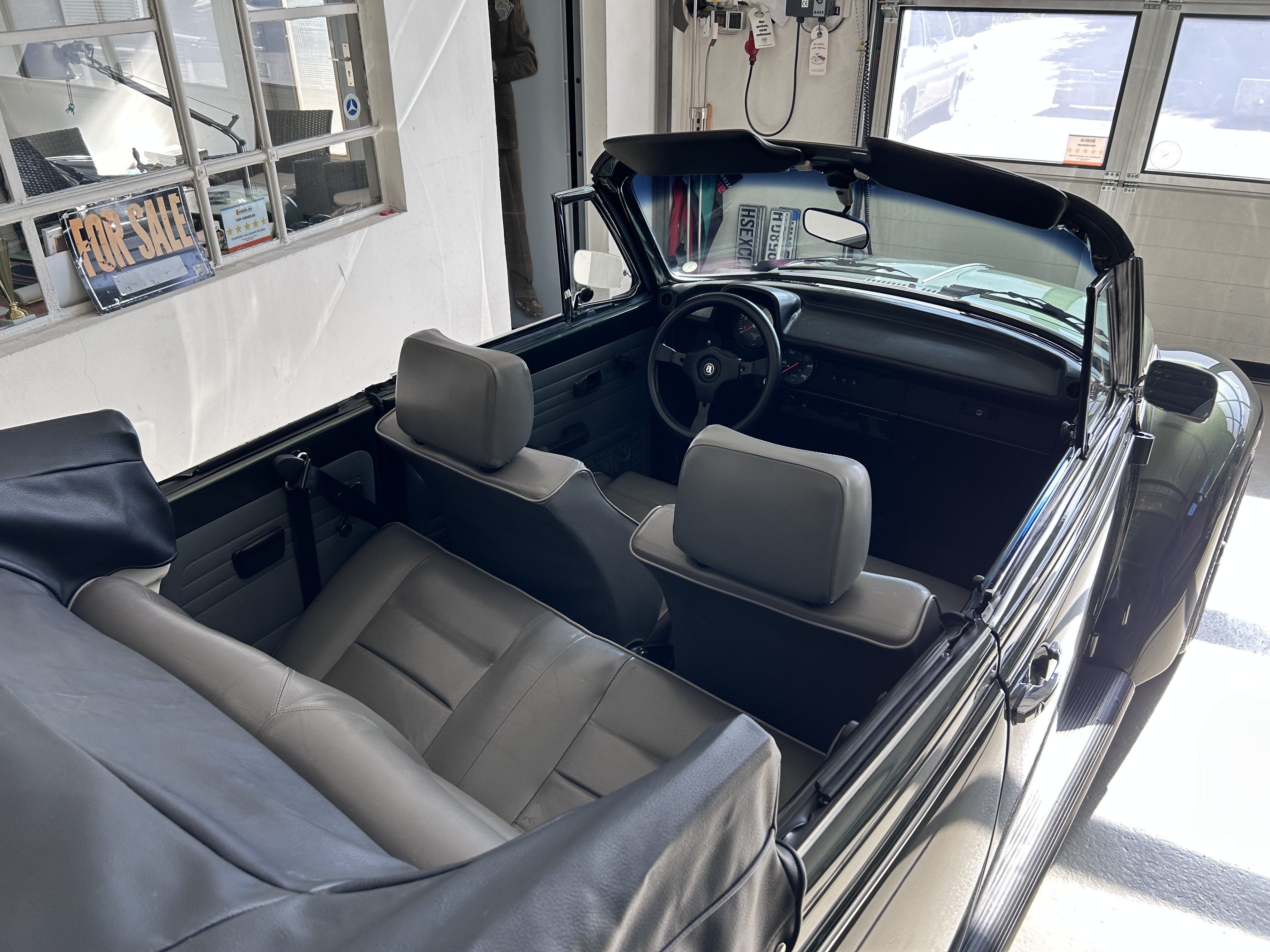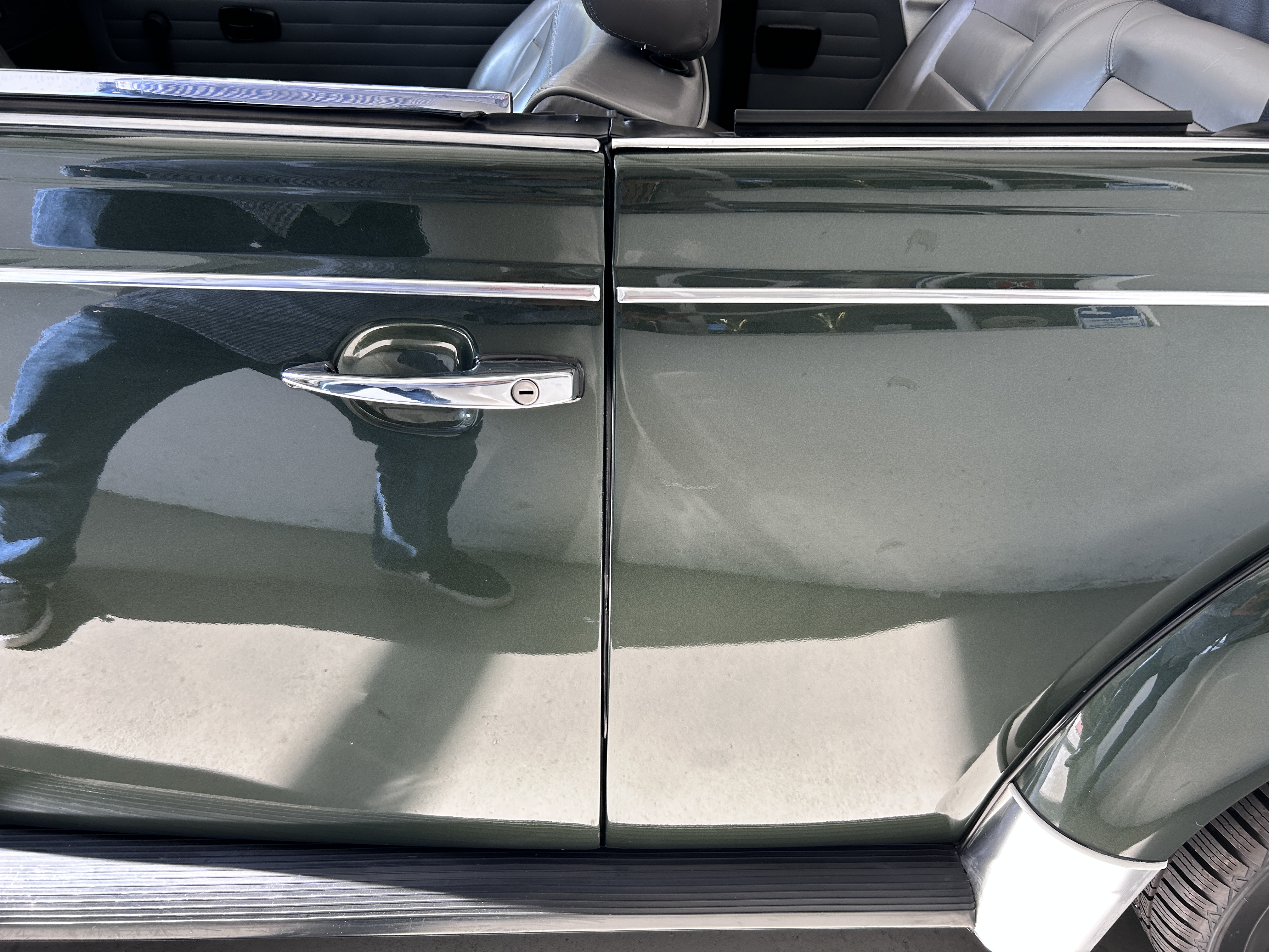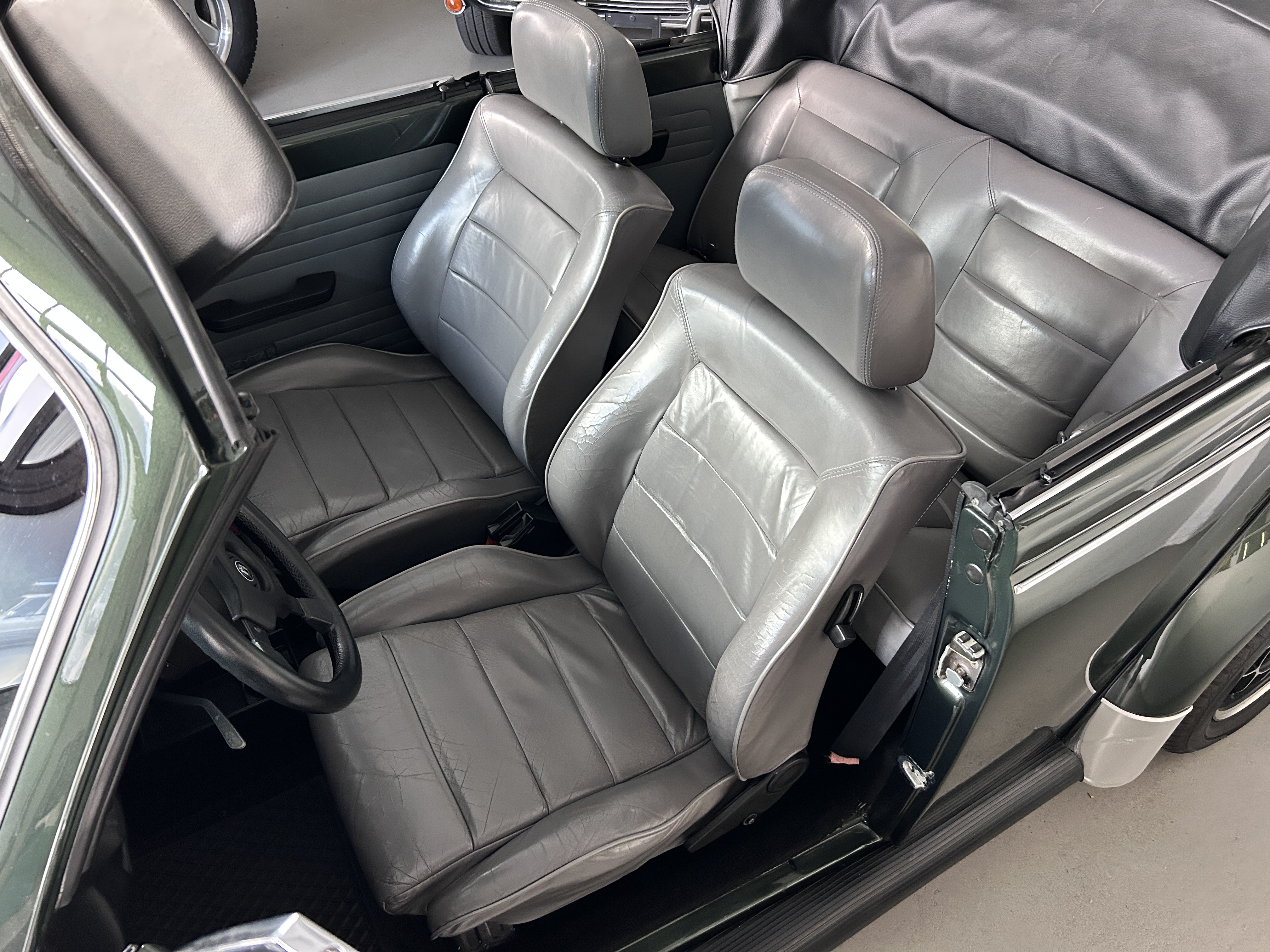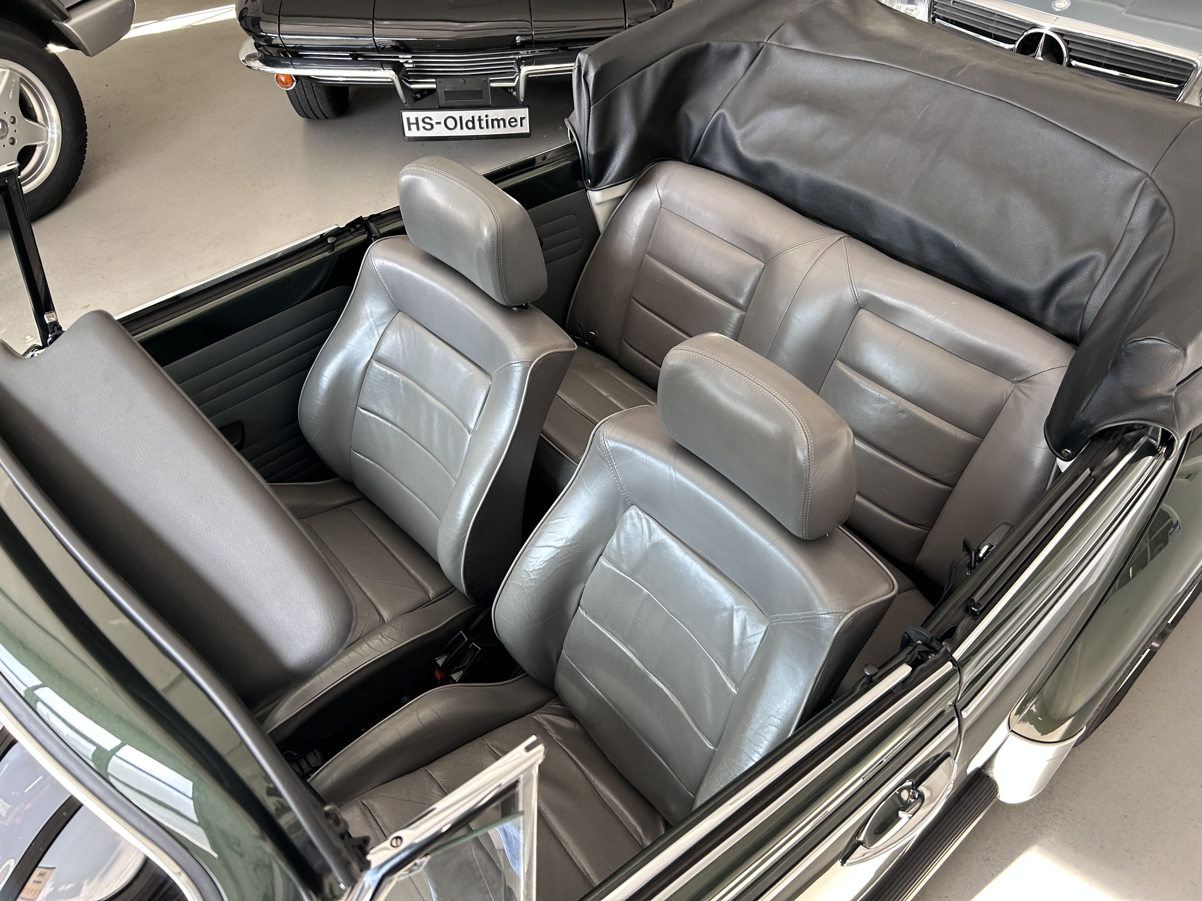 Ein beeindruckendes Käfer 1303 LS Cabriolet in dunkelgrün Metallic. Kaum Gebrauchsspuren. Super Karosserie, Rost haben wir auch an den typischen Stellen nicht gefunden. Die Spaltmaße sind auch sehr gut. Der Eigentümer hat sein Cabriolet intensiv gepflegt und viel Geld in Optik und Technik investiert und sogar einige Porsche Teile verbaut. Dieser VW fährt sich unglaublich gut und klingt sehr kernig durch den dezenten Sportauspuff. Der Motor läuft phantastisch und die Schaltung ist nicht im geringsten hakelig. Wir haben schon einige schöne 1303 hier gehabt, aber so ein besonderes Exemplar noch nicht. Die Leistungssteigerung auf ca. 70 PS macht sich sehr positiv bemerkbar im heutigen Straßenverkehr und schont den Motor. Es wurde alles Eingetragen und er hat natürlich auch eine H-Abnahme. Wer einen der Besten Käfer sucht, sollte sich diesen auf jeden Fall anschauen, es lohnt sich wie immer bei uns! Wir freuen uns auf Ihren Anruf und Besuch. Weitere schöne Oldtimer finden Sie auf unserer eigenen Homepage: HS-Oldtimer.de