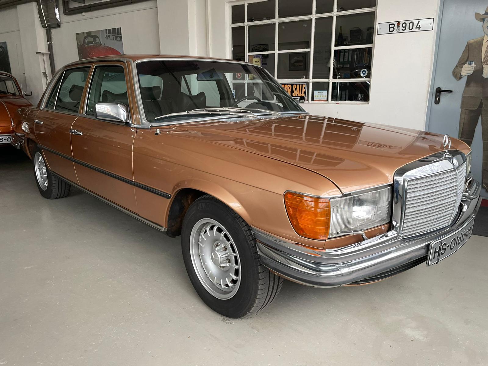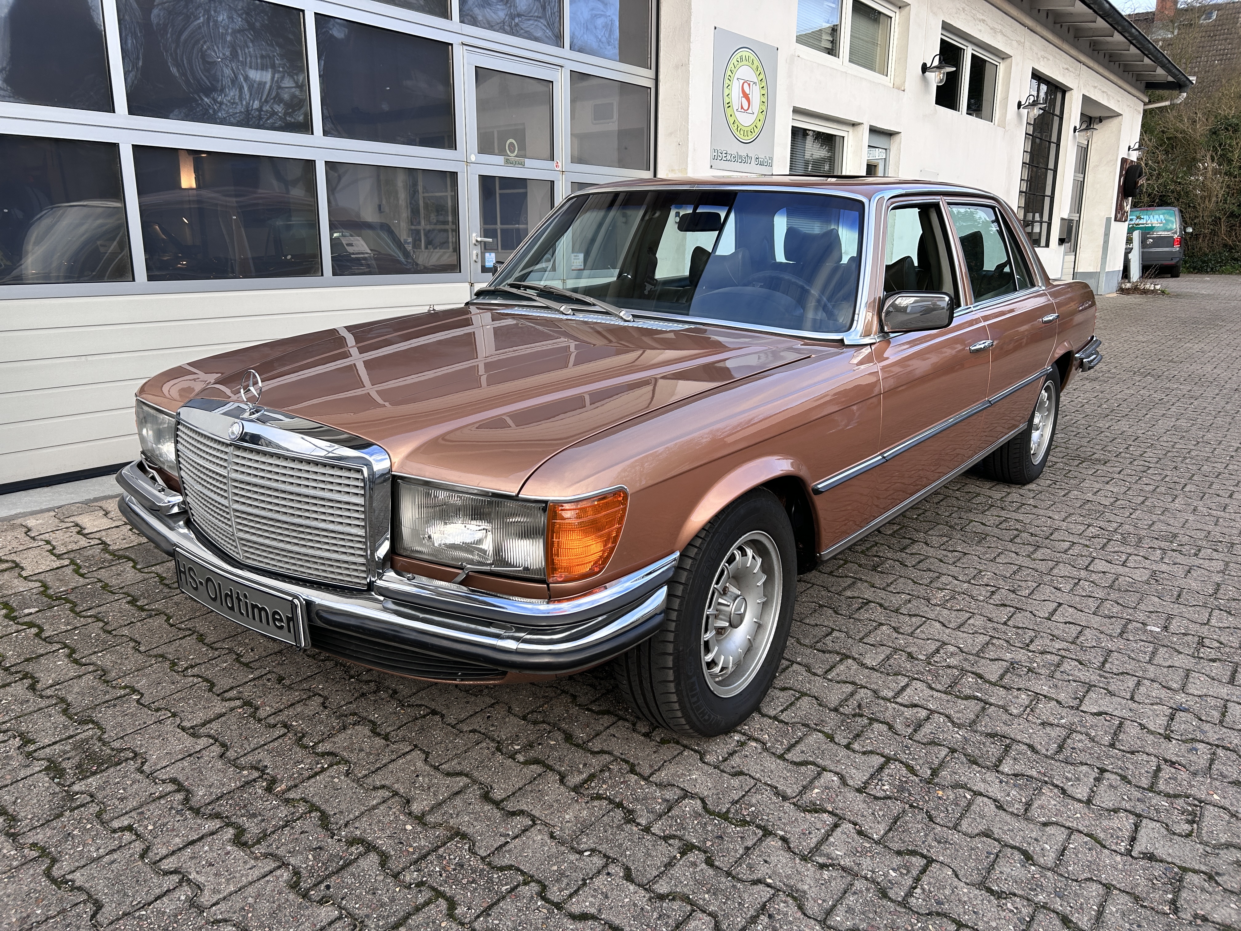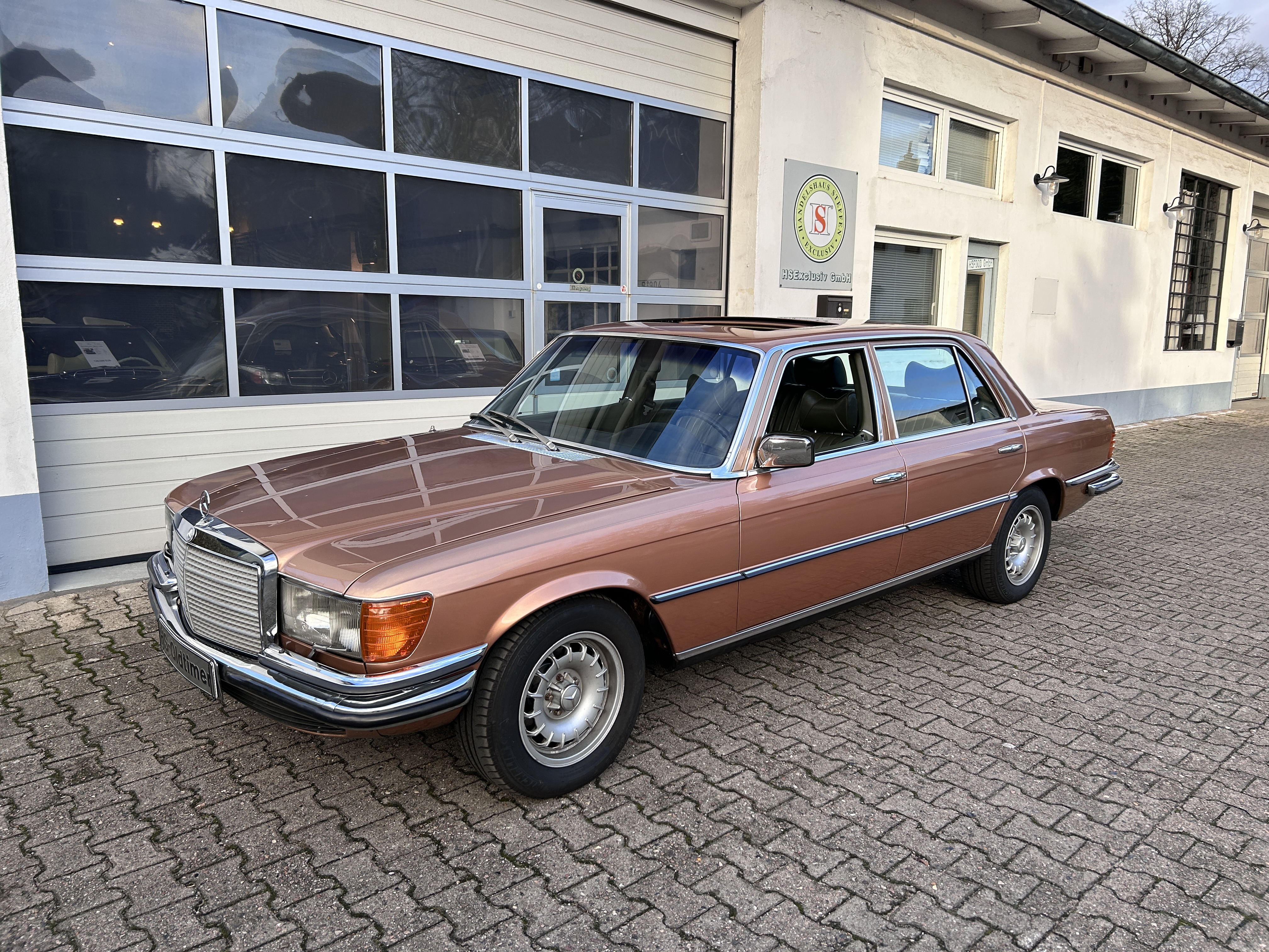 Ein 450 SEL in besonders schöner Farbkombination. Byzanzgold Metallic, Leder dunkelgrün. Mit Schiebedach. Viele große Rechnungen vorhanden. Ab 2015 wurde hier nach längerer Standzeit sehr viel gemacht (Ca. 13.000 Euro)! Einige TÜV-Belege und alte Fg.- Briefe sind auch noch mit dabei. Dieser 450er fährt sich phantastisch. Motor läuft sehr schön und das Getriebe schaltet sauber hoch. Wer einen richtig guten Mercedes 450 SEL sucht, sollte sich diesen auf jeden Fall einmal anschauen, es lohnt sich wie immer bei uns. Wir freuen uns auf Ihren Anruf und Besuch. Weitere Infos und schöne Oldtimer finden Sie auf unserer eigenen Homepage: www.hs-oldtimer.de