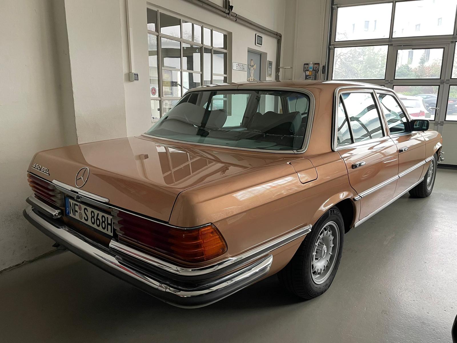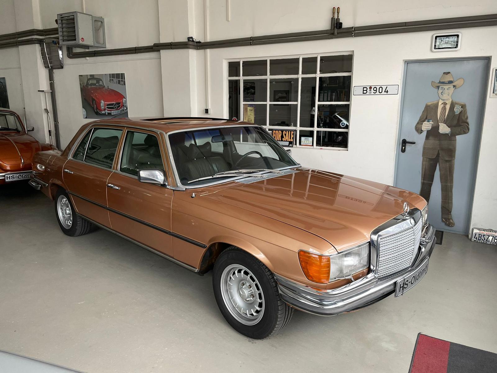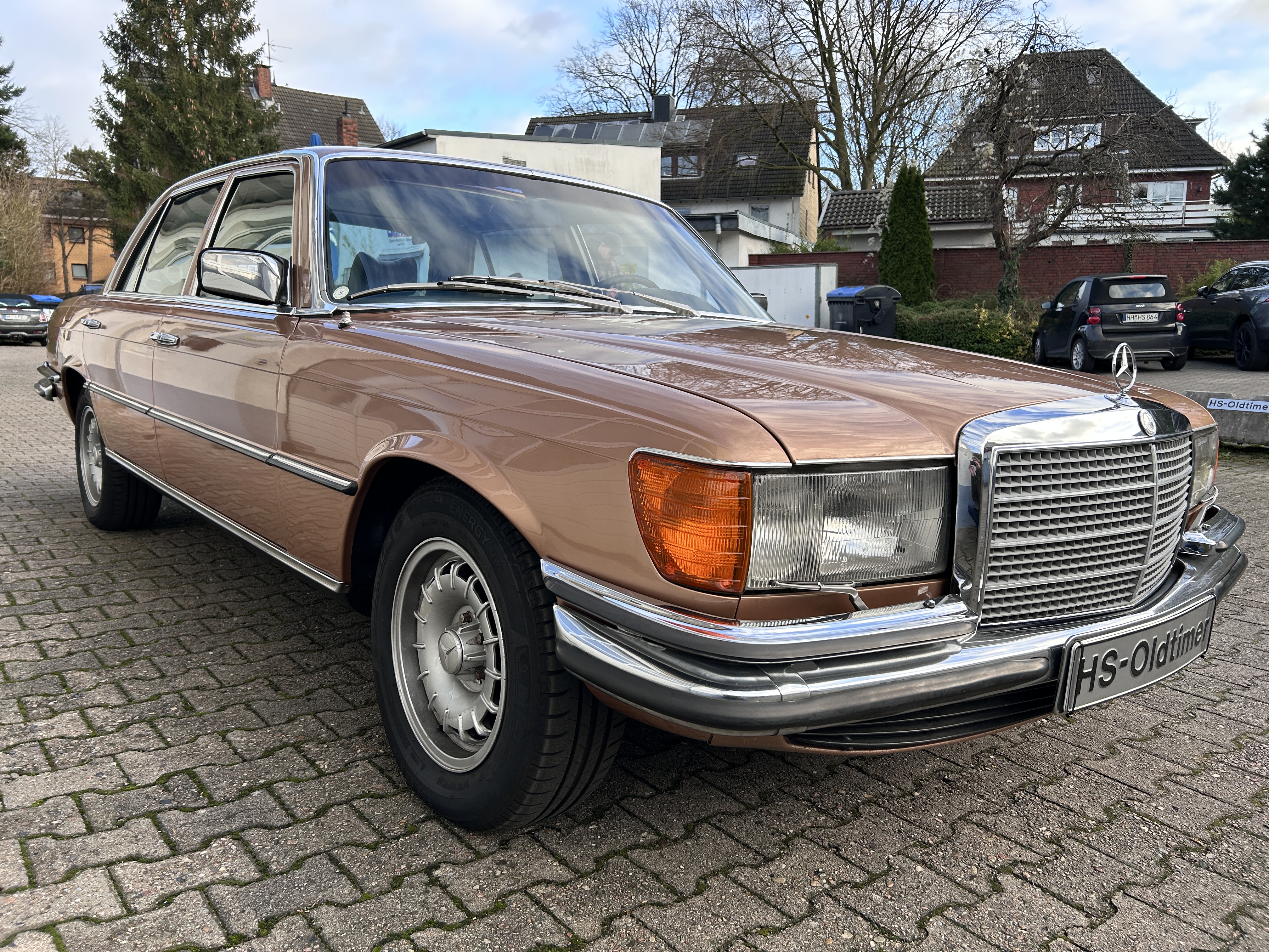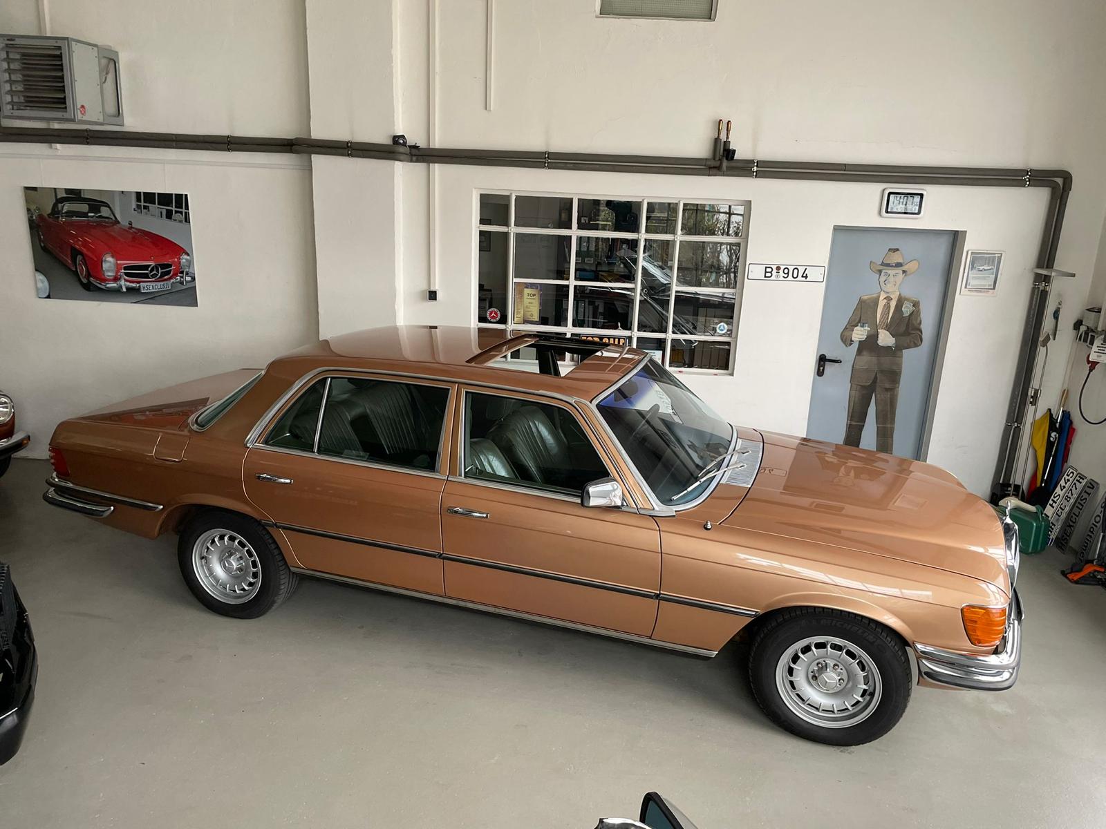 Ein 450 SEL in besonders schöner Farbkombination. Byzanzgold Metallic, Leder dunkelgrün. Mit Schiebedach. Viele große Rechnungen vorhanden. Ab 2015 wurde hier nach längerer Standzeit sehr viel gemacht (Ca. 13.000 Euro)! Einige TÜV-Belege und alte Fg.- Briefe sind auch noch mit dabei. Dieser 450er fährt sich phantastisch. Motor läuft sehr schön und das Getriebe schaltet sauber hoch. Wer einen richtig guten Mercedes 450 SEL sucht, sollte sich diesen auf jeden Fall einmal anschauen, es lohnt sich wie immer bei uns. Wir freuen uns auf Ihren Anruf und Besuch. Weitere Infos und schöne Oldtimer finden Sie auf unserer eigenen Homepage: www.hs-oldtimer.de