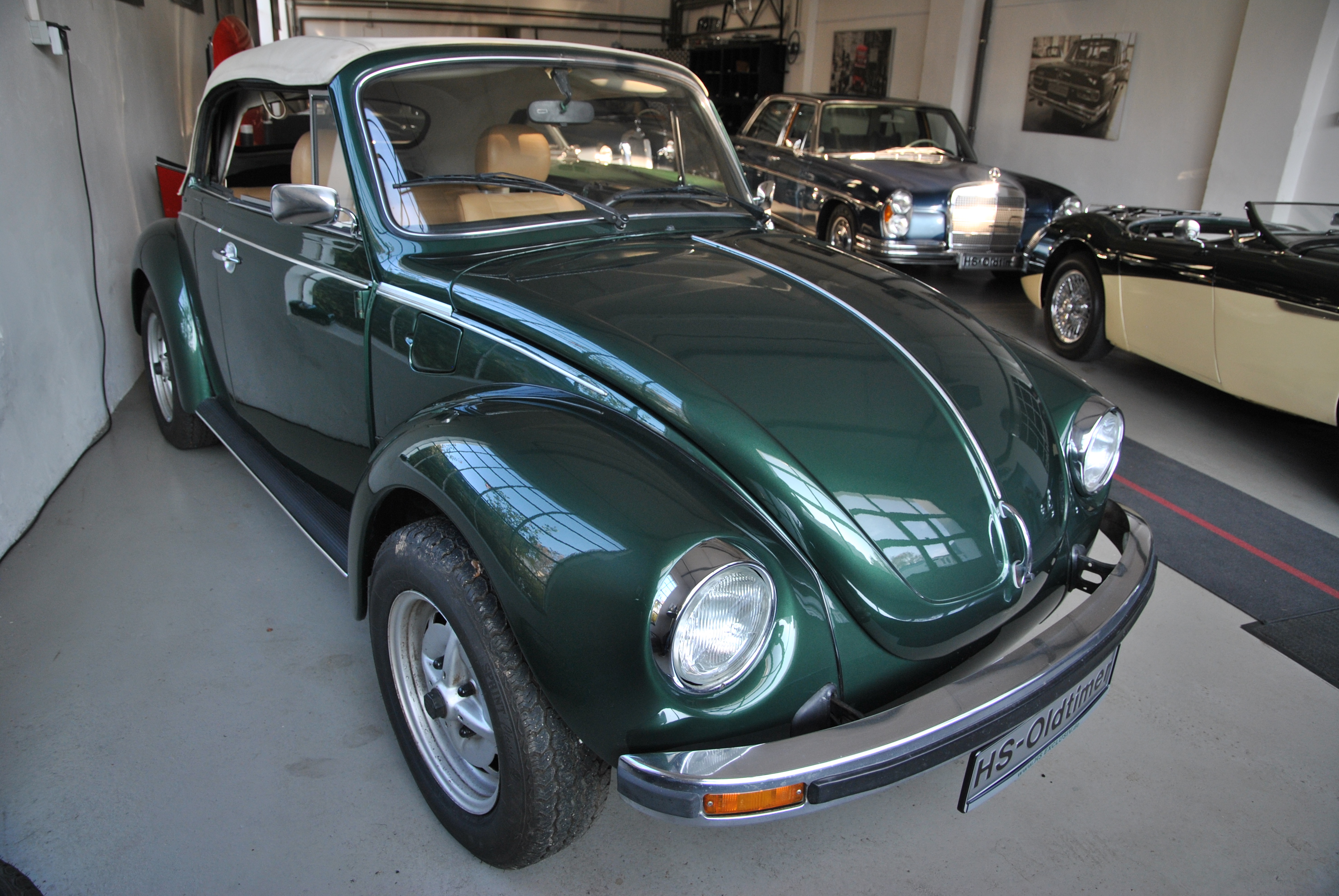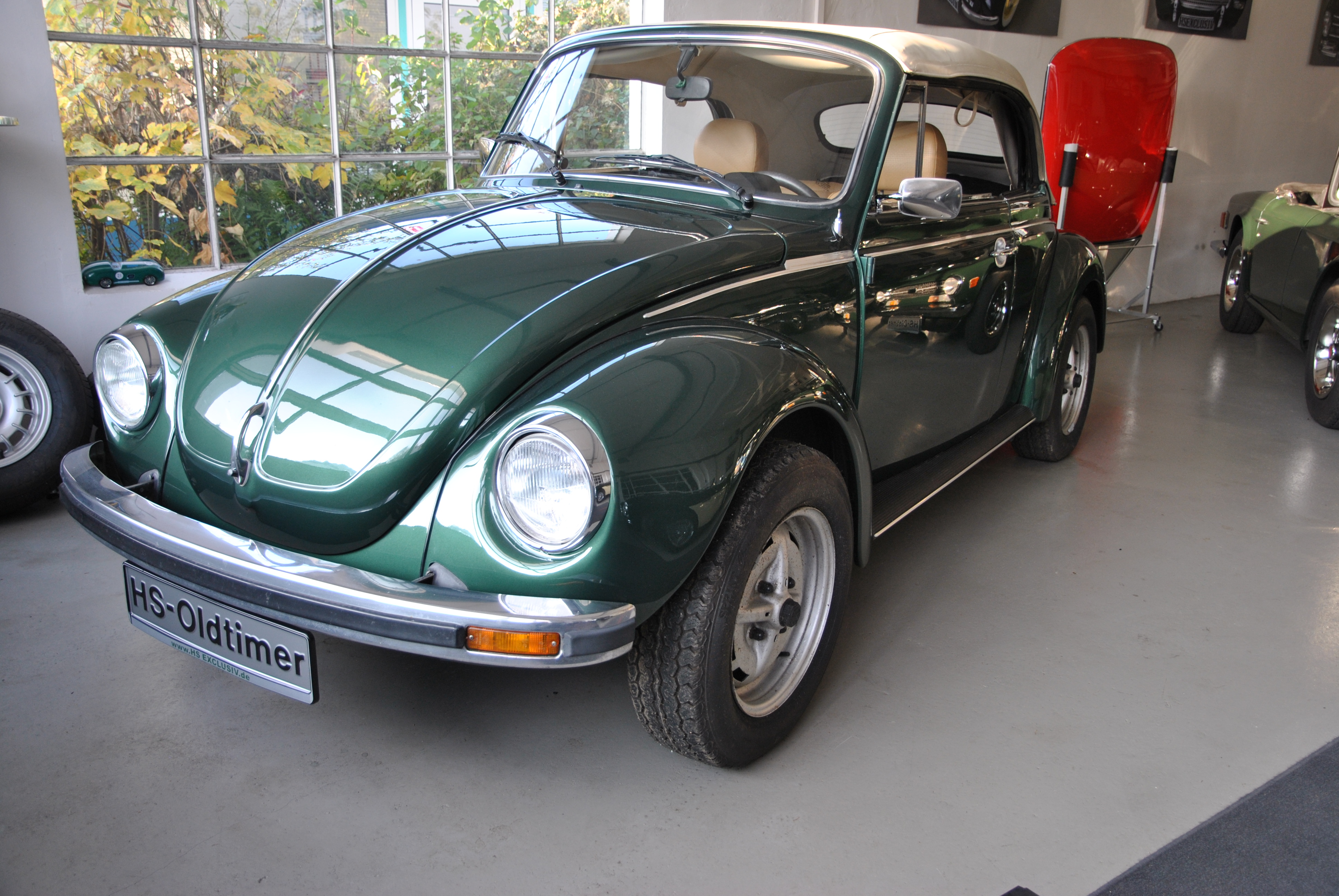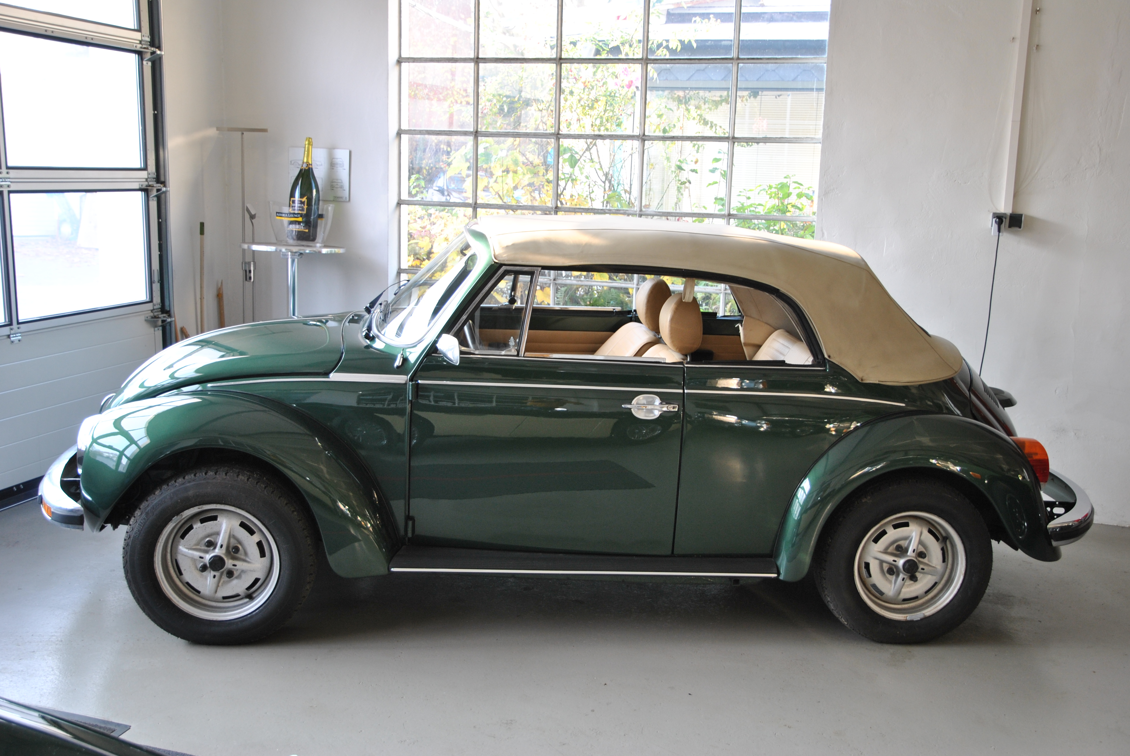 Dieses Käfer Cabriolet hat, wie ich finde, eine besonders schöne Farbkombination und ist super gepflegt. Die Sitze sind fast neuwertig im original Kunstleder. Das Verdeck scheint noch das Erste zu sein und sieht kaum gebraucht aus. Das Lackbild ist top. Der Unterboden ist gut, Rost haben wir keinen gefunden. Der Käfer fährt sich phantastisch. Der Motor läuft super und die Schaltung ist exakt. Das 1303 LS Cabriolet macht rundum einen sehr guten Eindruck. Dokumentation ab 1991 durch Rechnungen von VW etc. Der alte Brief ist auch noch da. Die H-Zulassung ist vorhanden. Neuer TÜV wird auf Wunsch vor Ausliefrerung gemacht und der Sommer kann kommen. Anschauen lohnt sich wie immer bei uns! Wir freuen uns auf Ihren Anruf und Besuch. Weitere Infos und schöne Oldtimer finden Sie auf unserer Homepage.