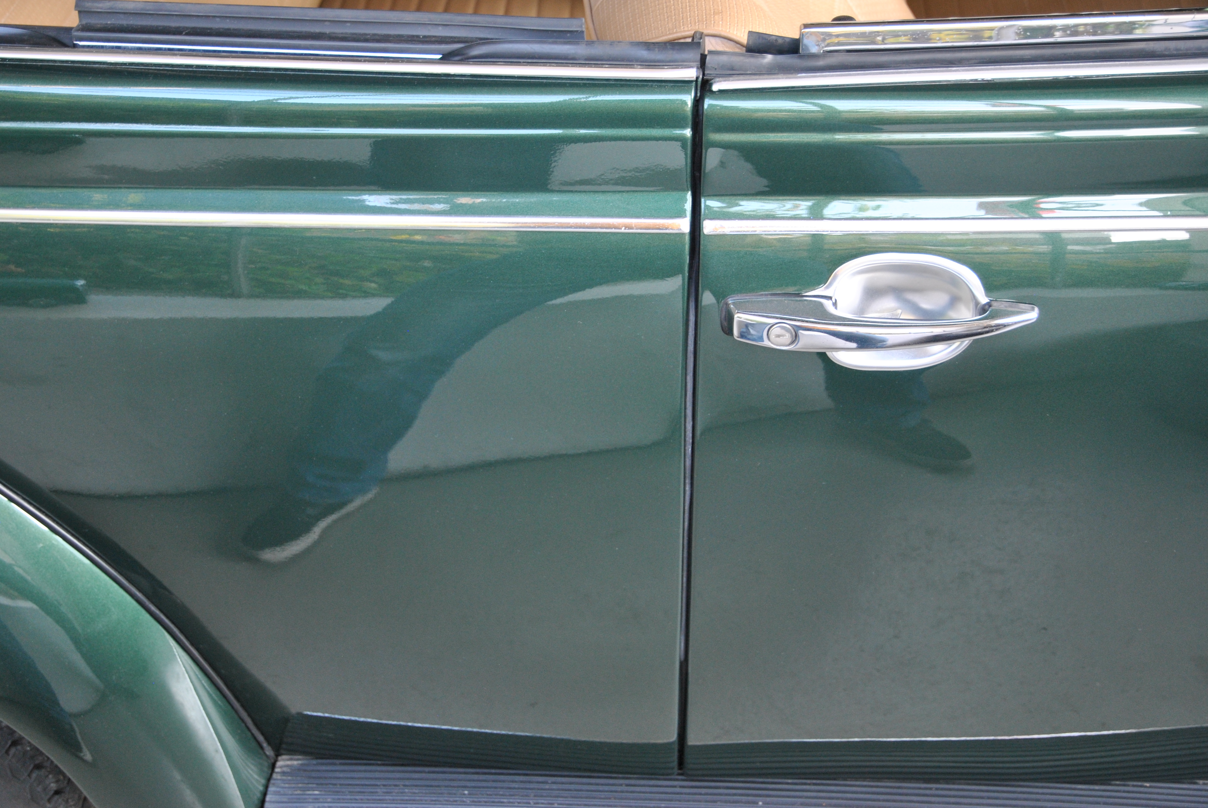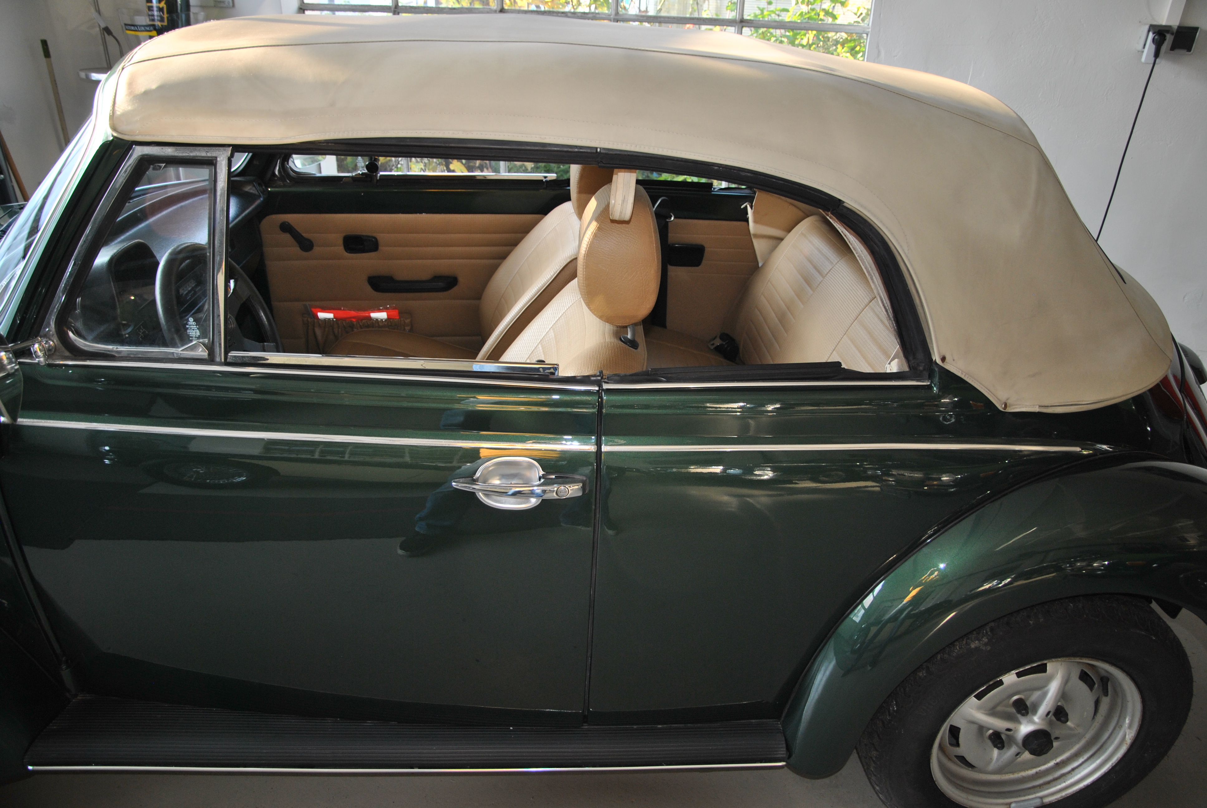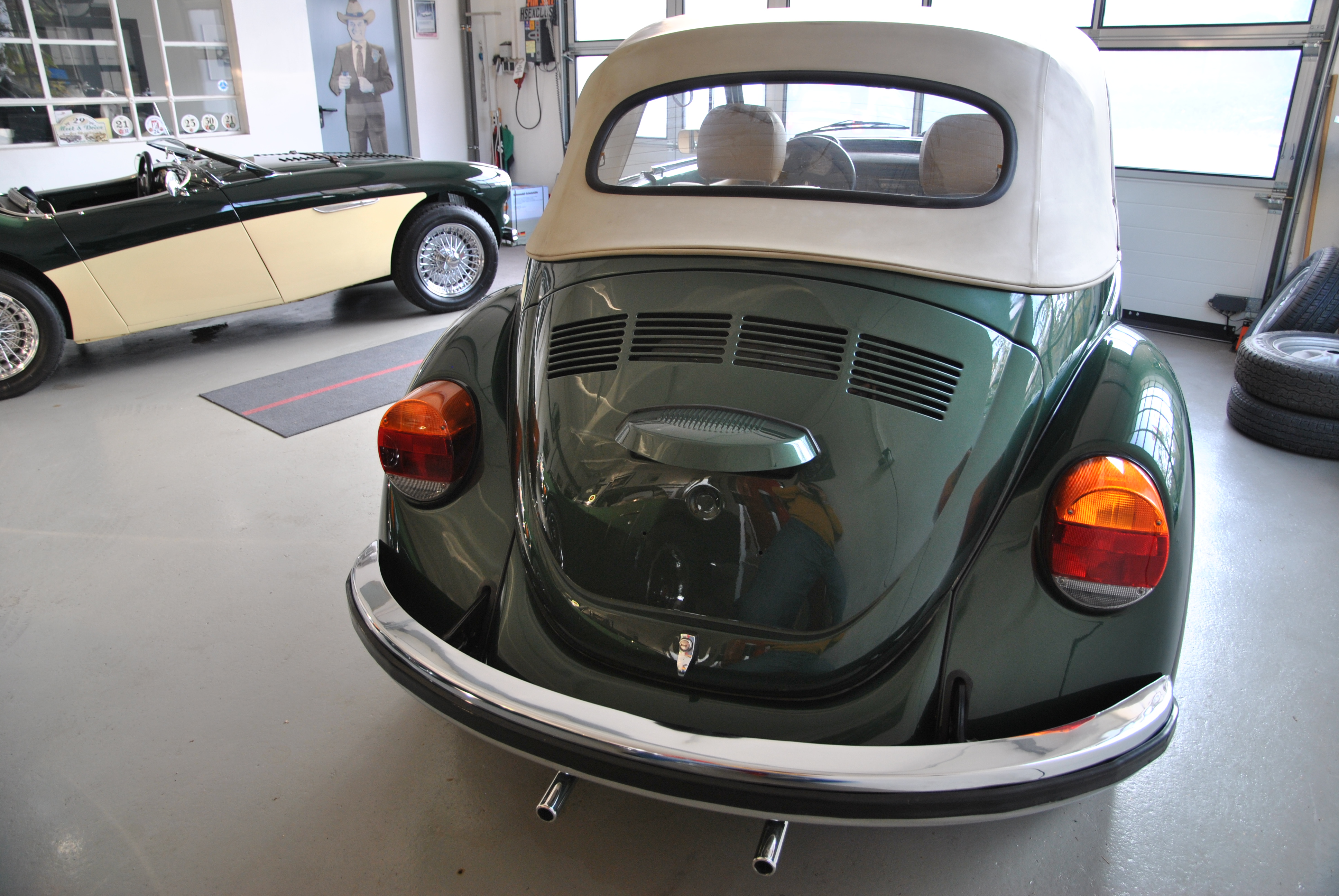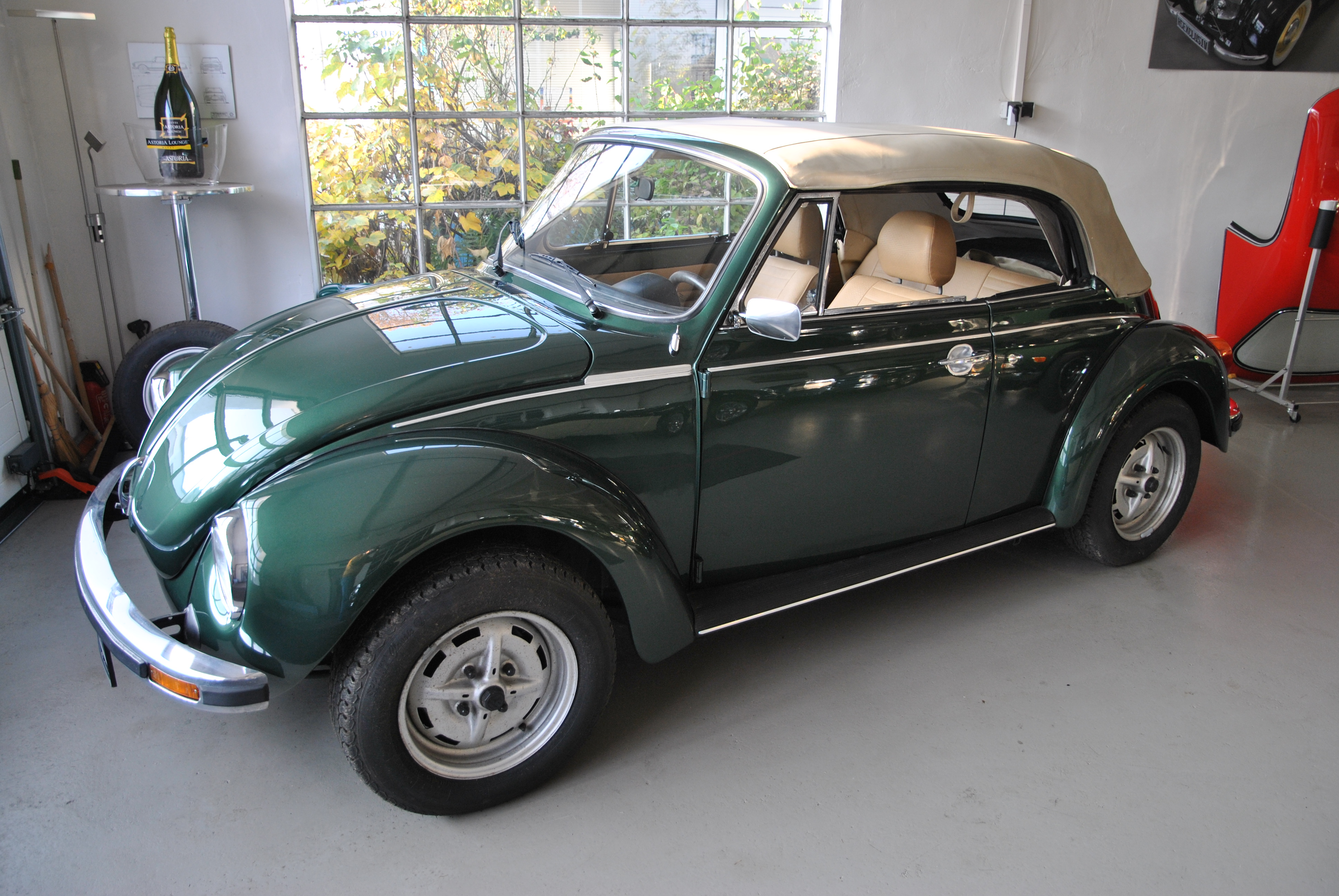 Dieses Käfer Cabriolet hat, wie ich finde, eine besonders schöne Farbkombination und ist super gepflegt. Die Sitze sind fast neuwertig im original Kunstleder. Das Verdeck scheint noch das Erste zu sein und sieht kaum gebraucht aus. Das Lackbild ist top. Der Unterboden ist gut, Rost haben wir keinen gefunden. Der Käfer fährt sich phantastisch. Der Motor läuft super und die Schaltung ist exakt. Das 1303 LS Cabriolet macht rundum einen sehr guten Eindruck. Dokumentation ab 1991 durch Rechnungen von VW etc. Der alte Brief ist auch noch da. Die H-Zulassung ist vorhanden. Neuer TÜV wird auf Wunsch vor Ausliefrerung gemacht und der Sommer kann kommen. Anschauen lohnt sich wie immer bei uns! Wir freuen uns auf Ihren Anruf und Besuch. Weitere Infos und schöne Oldtimer finden Sie auf unserer Homepage.