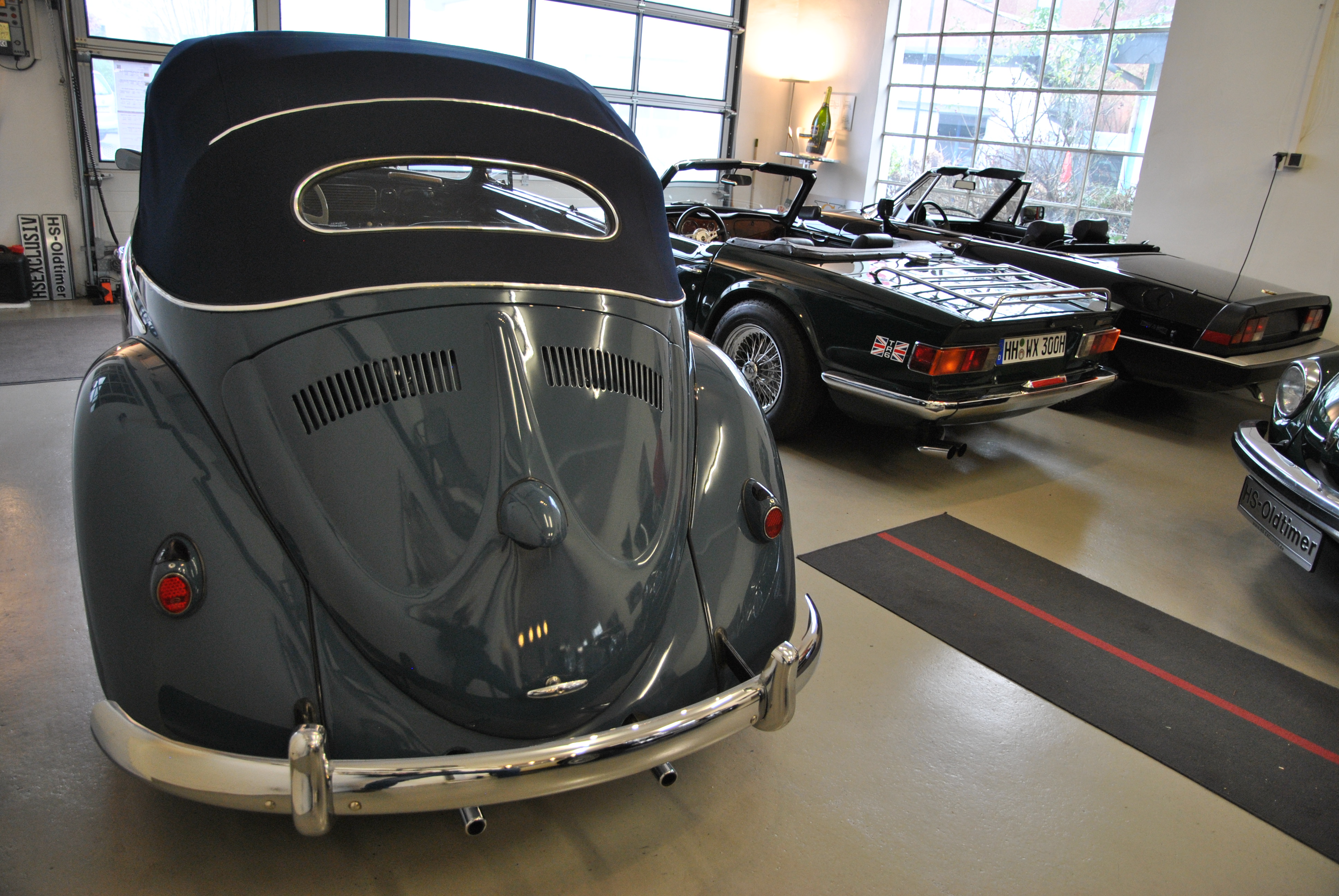 Ein Käfer Cabriolet im hervorragenden Zustand. Das Fahrzeug wurde vor ca. 5 Jahren aufwendig restauriert und sieht dementsprechend umwerfend aus. Die Farbkombination ist unglaublich! Im Original noch schöner als auf den Fotos. Wer den Besten 54er Käfer sucht, sollte diesen auf jeden Fall gesehen haben. Der alte Brief ist in Kopie vorhanden. Von 1977 - 1992 in der Hand der Fam. Engler. TÜV, H-Abnahme und Garantie auf Wunsch möglich. Wir freuen uns auf Ihren Anruf und Besuch. Weitere Infos und schöne Oldtimer finden Sie auf unserer Homepage: HS-Oldtimer.de