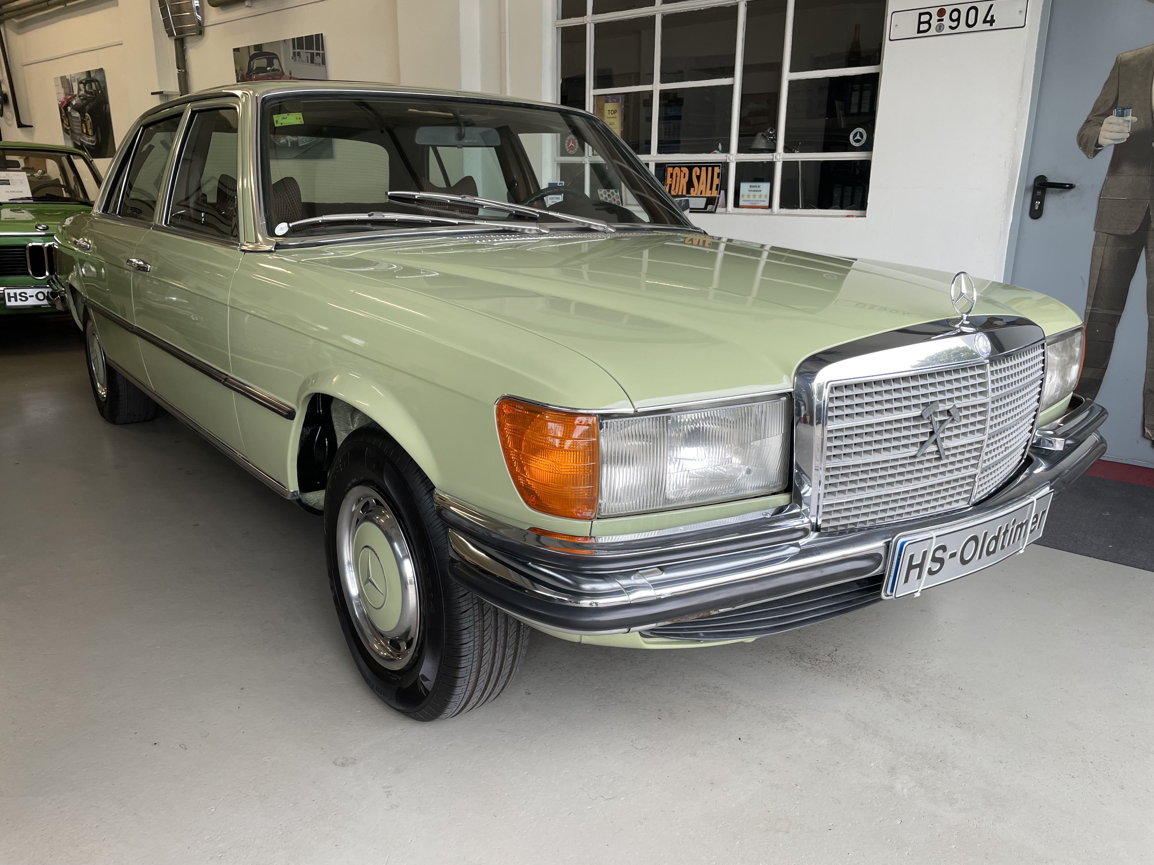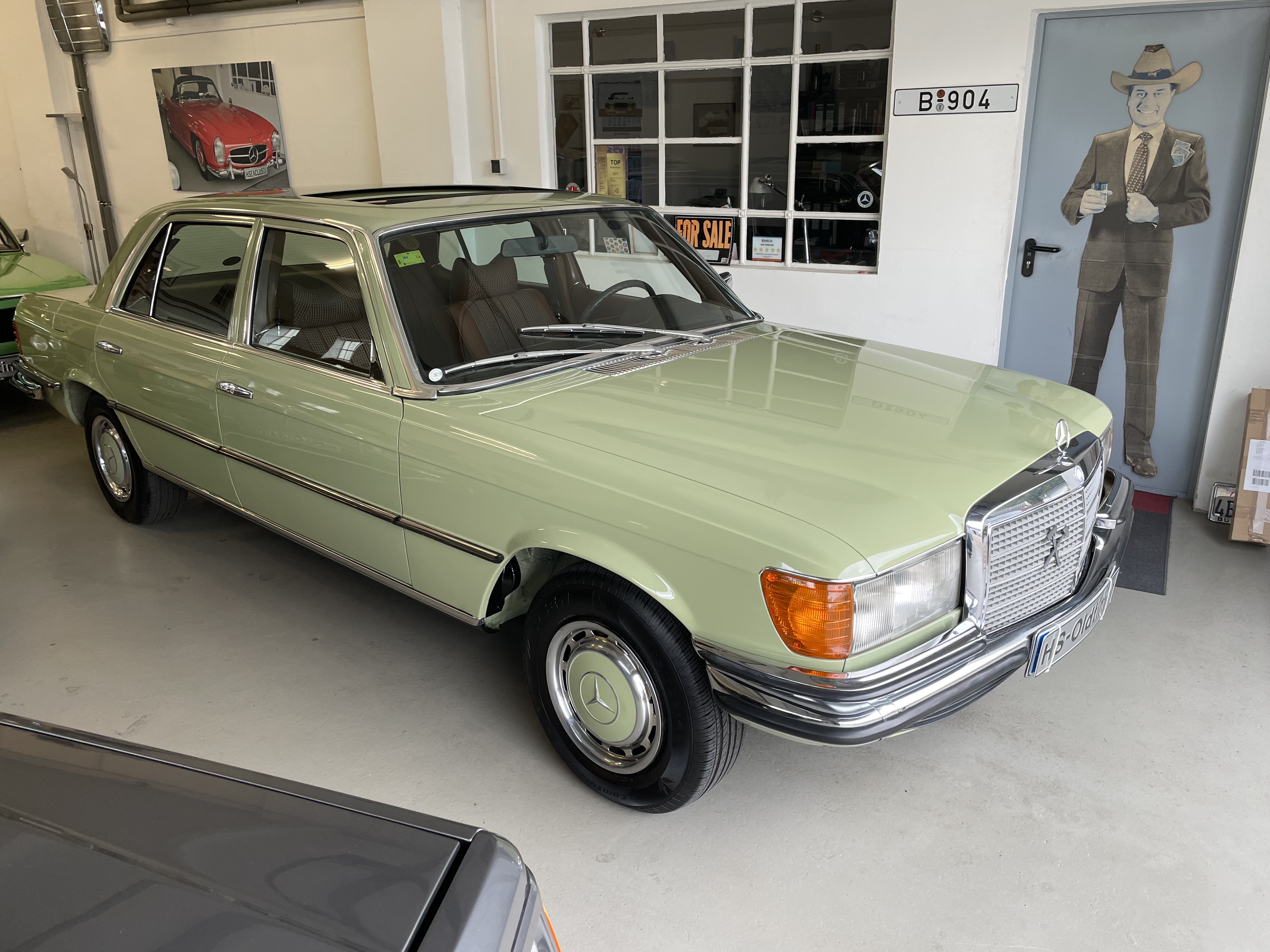 Dieser Mercedes 350 SEL ist seit 1987 in Spanien. Ursprünglich in Deutschland ausgeliefert und jetzt wieder zurück. Durch einen Car Fax sind die Km seit 2013 belegt. Der 350er fährt sich sehr schön, Motor läuft phantastisch und das Getriebe schaltet sehr sanft. Lack ist gut, die Spaltmaße sind super. Der Innenraum ist sehr sauber und top gepflegt. Wer einen 350 SEL in besonderer Farbkombination suchtsollte sich dieses auf jeden Fall einmal anschauen, es lohnt sich wie immer bei uns. Wir freuen uns auf Ihren Anruf und Besuch. Weitere Infos und schöne Oldtimer finden Sie auf unserer eigenen Homepage: www.hs-oldtimer.de