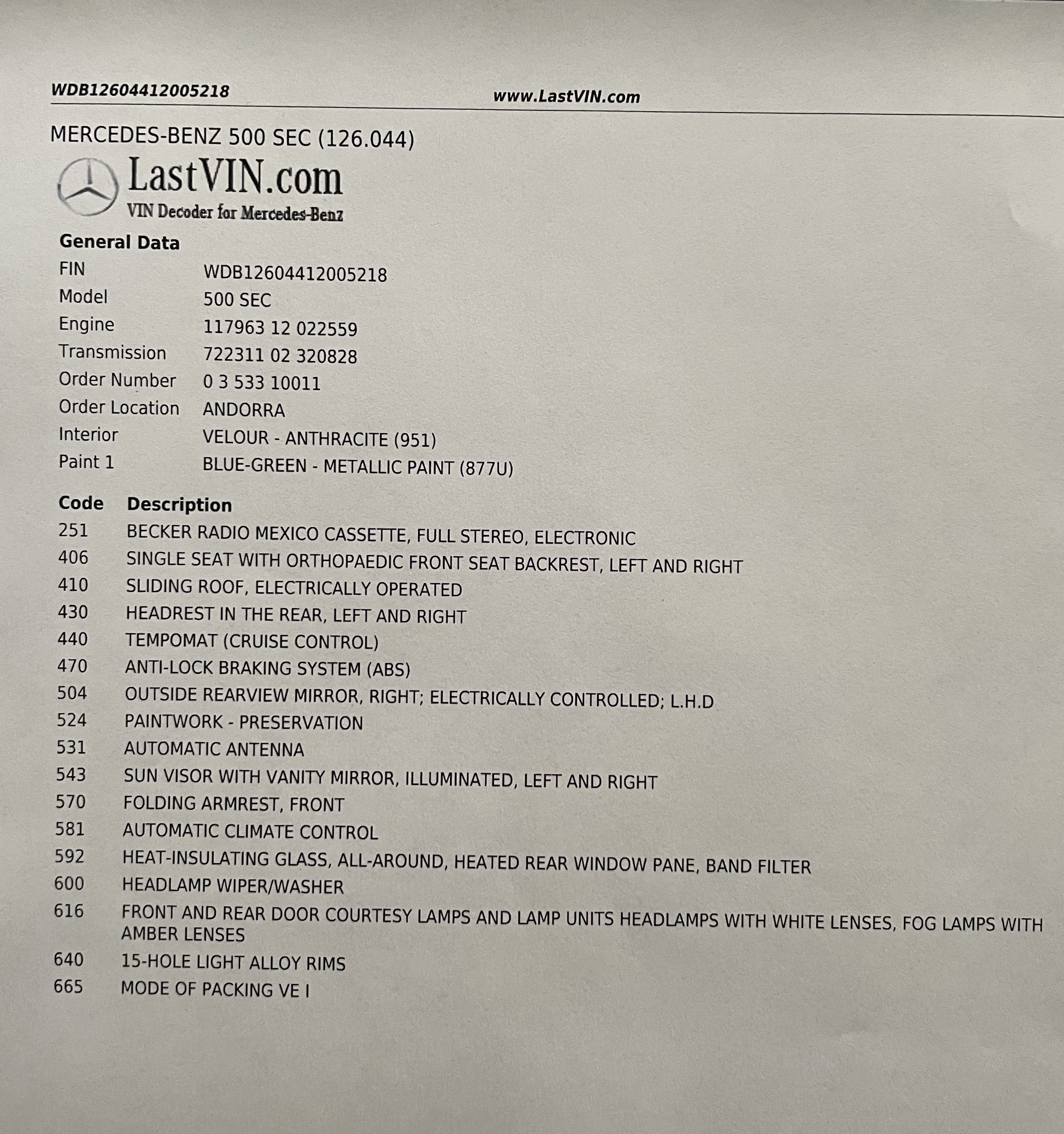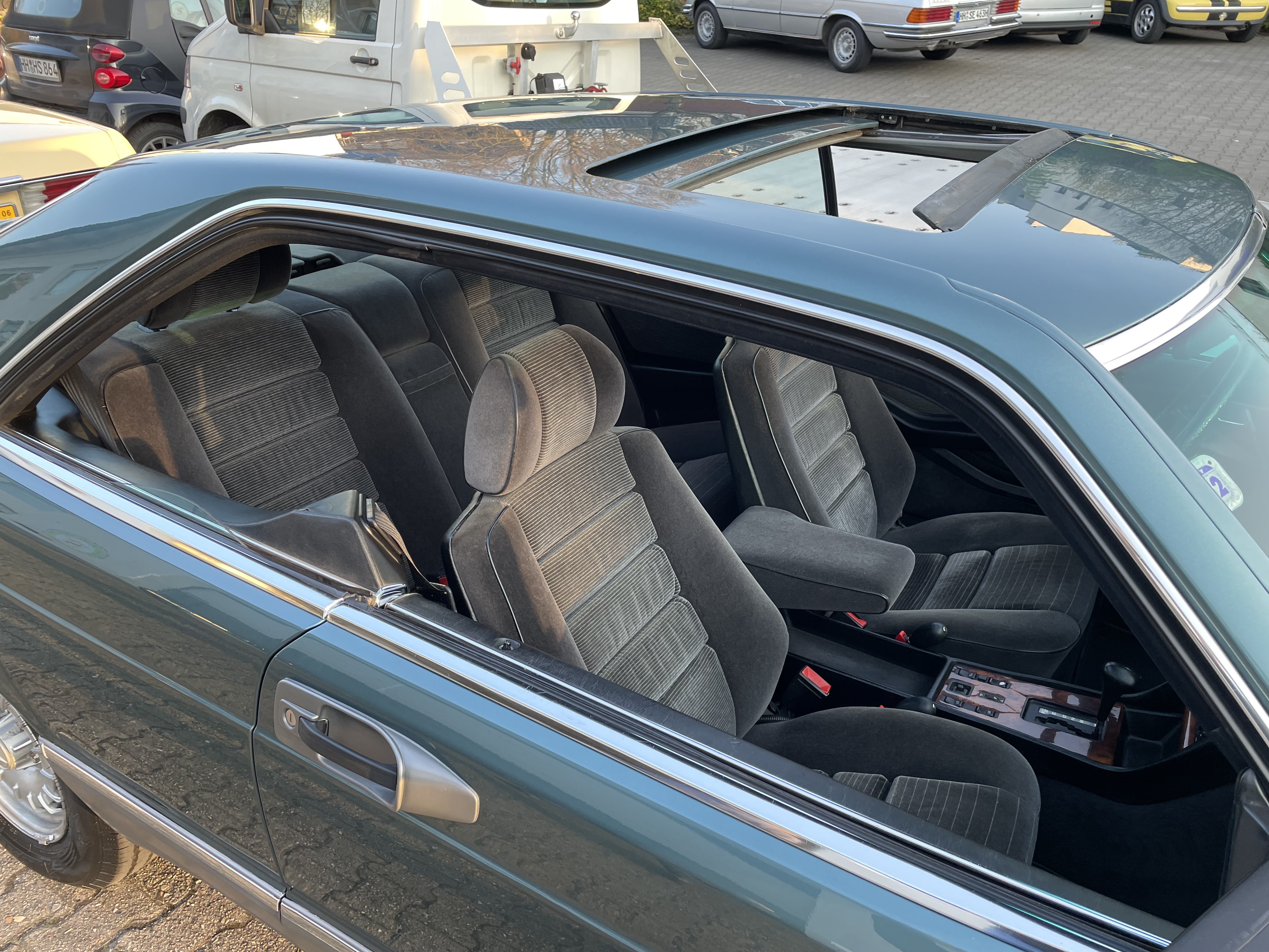 Dieser 500 SEC befindet sich in einem außergewöhnlich gutem Pflegezustand. Durch das Scheckheft sind die Kilometer belegt. Laut Erscheinungsbild könnte der 500er auch erst 100.000 Km gelaufen haben. TÜV und H-Abnahme sind schon gemacht worden, der SEC ist jetzt zulassungsfähig. Alles soweit erledigt, bis auf Kleinigkeiten kein weiterer Handlungsbedarf. Wer ein besonders schönes Fahrzeug sucht, sollte sich dieses auf jeden Fall einmal anschauen, es lohnt sich wie immer bei uns. Wir freuen uns auf Ihren Anruf und Besuch. Weitere Infos und schöne Oldtimer finden Sie auf unserer eigenen Homepage: www.hs-oldtimer.de