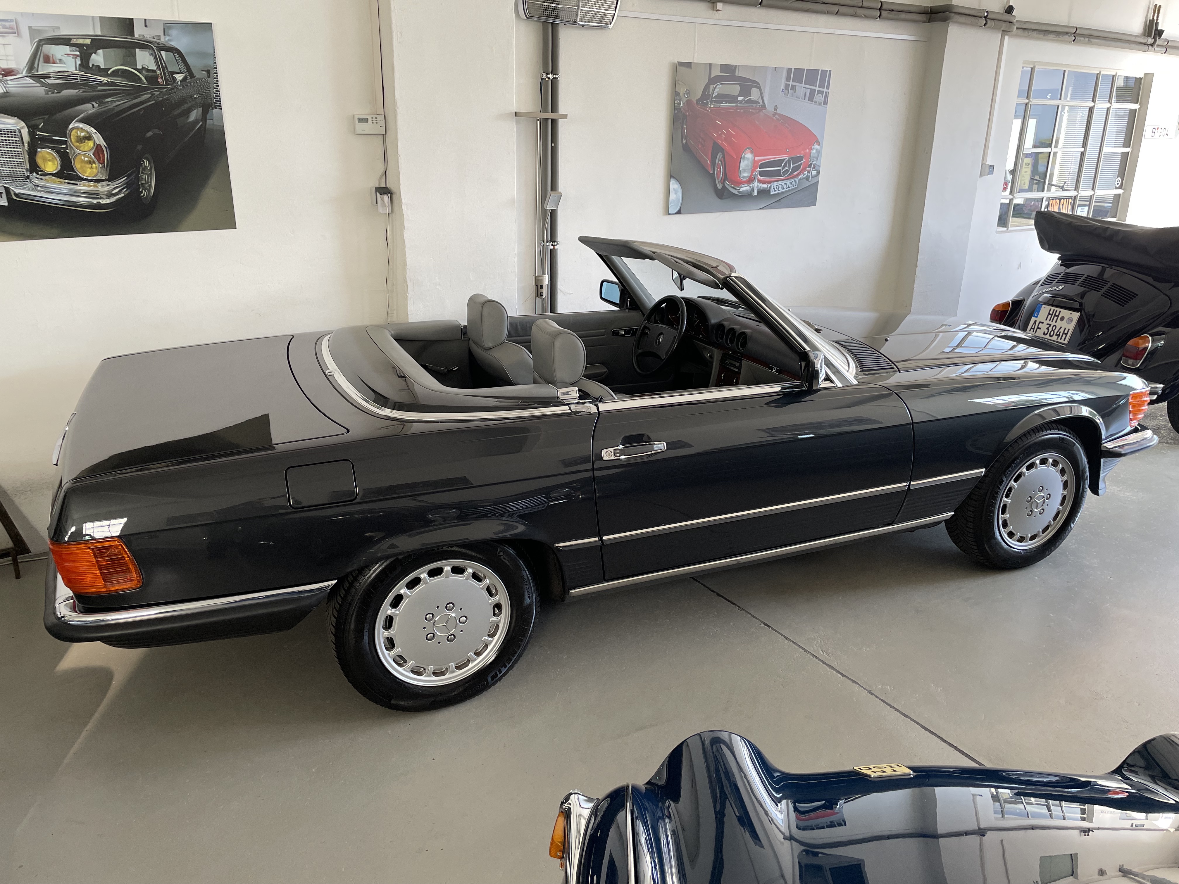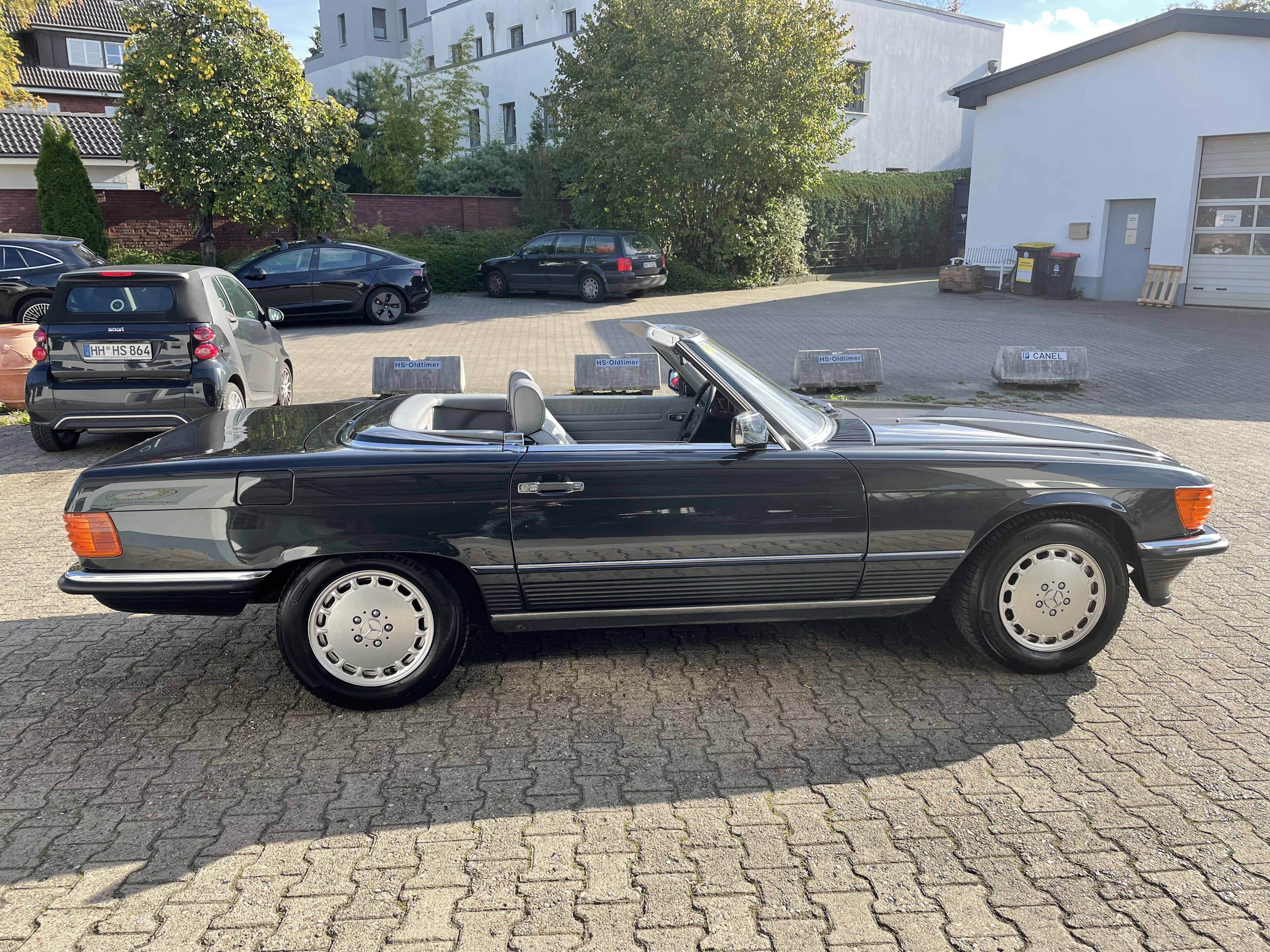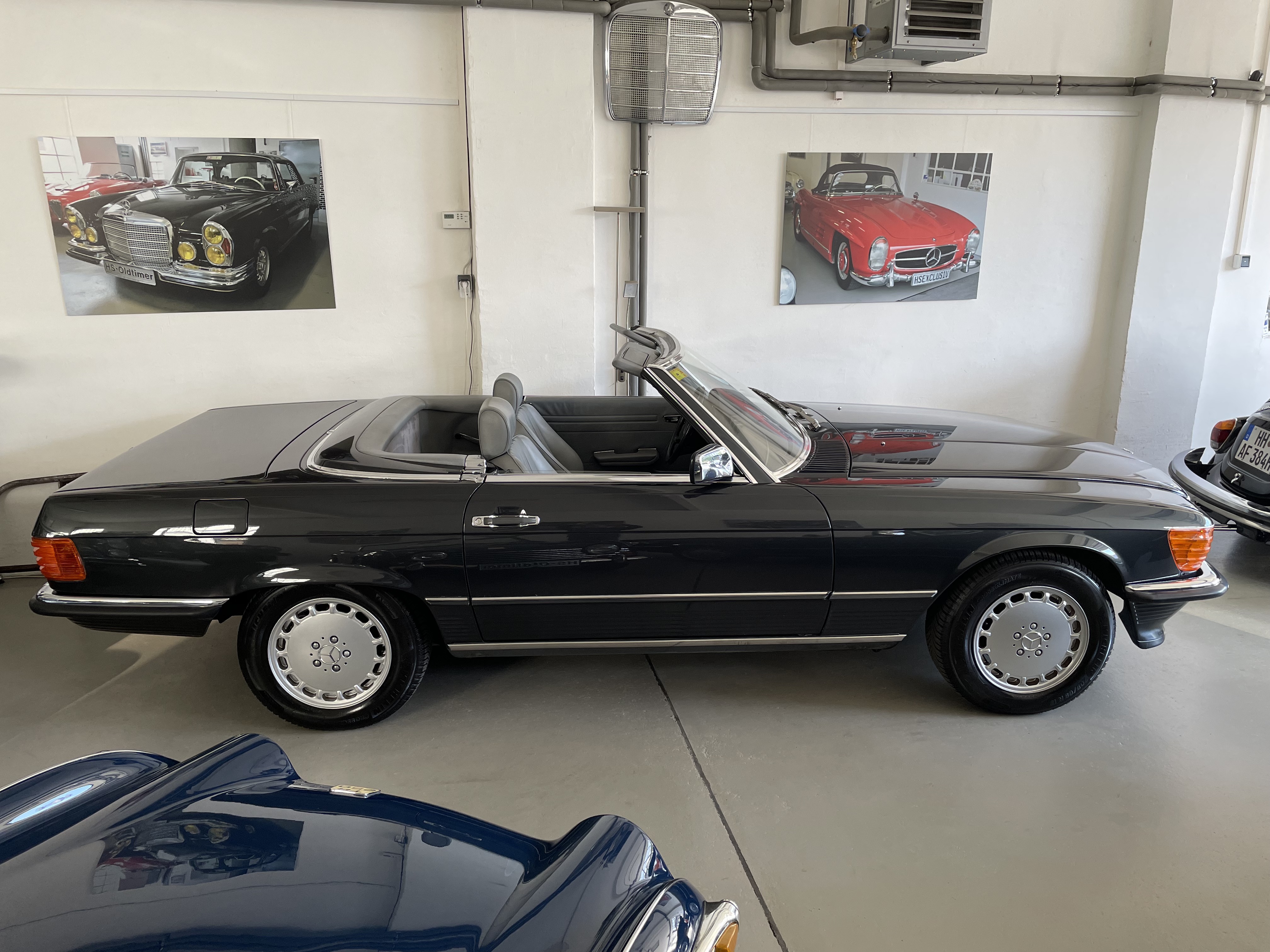 Dieser 300 SL ist in Lübeck ausgeliefert worden und ende der 90er Jahe aus 1. Hand nach Spanien exportiert.  Von 1998 bis heute gab es nur einen Halter in Spanien.  Die Bordmappe, mit Serviceheft und Bedienungsanleitung, ist vorhanden.  Die Laufleisgung ist gut nachvollziehbar.  Im spanischen Fahrzeugschein sind zwei TÜV-Stempel, von 2016 und 2019, die sich unter anderem mit dem spanischem CarFax decken.  Der SL stand immer in einer trockenen Garage.  Wer einen richtig schönen 300 SL mit sehr wenig Kilometern sucht, sollte sich diese auf jeden Fall einmal anschauen, es lohnt sich wie immer bei uns. Wir freuen uns auf Ihren Anruf und Besuch. Weitere Infos und schöne Oldtimer finden Sie auf unserer eigenen Homepage:                   www.hs-oldtimer.de
