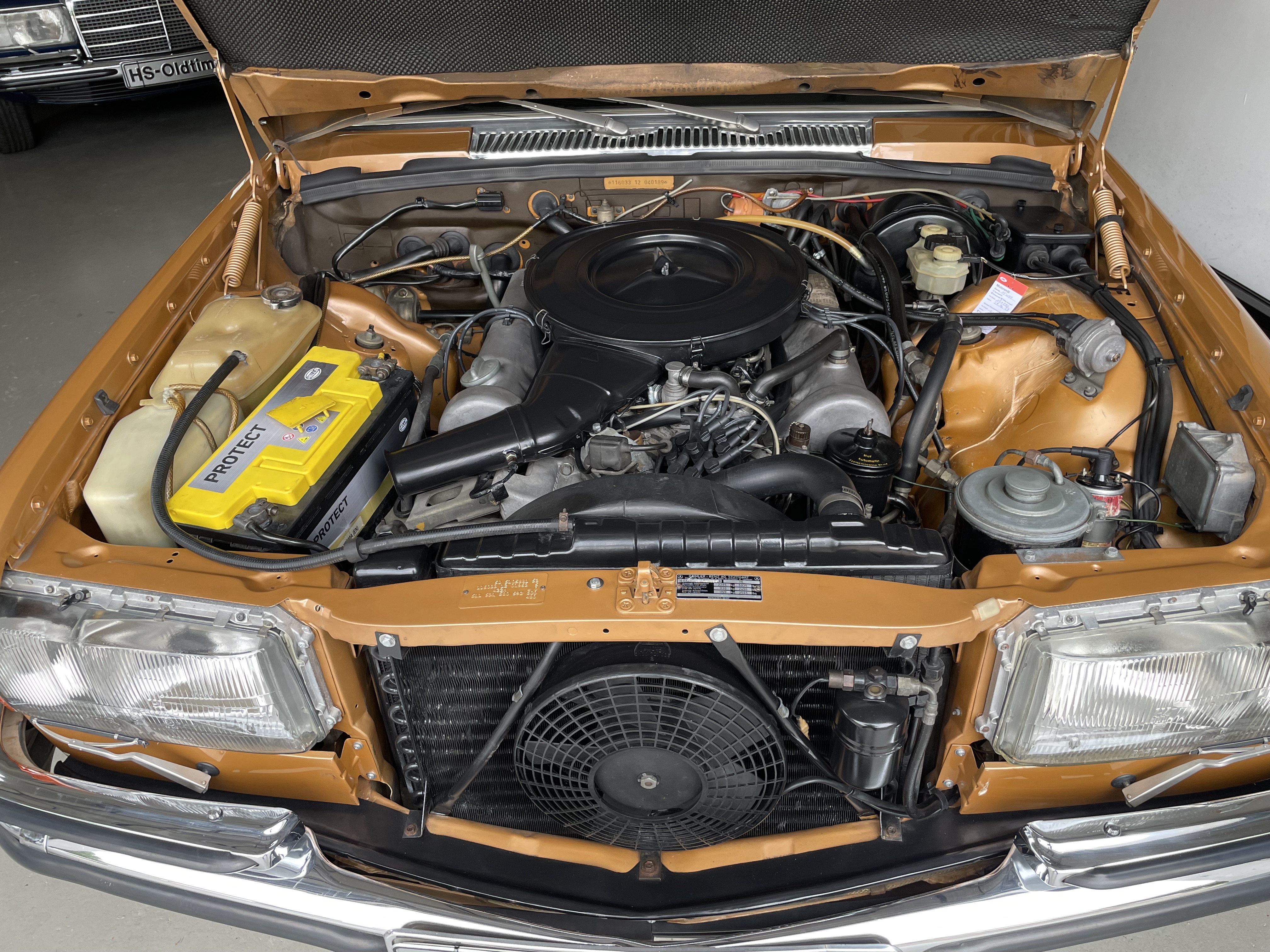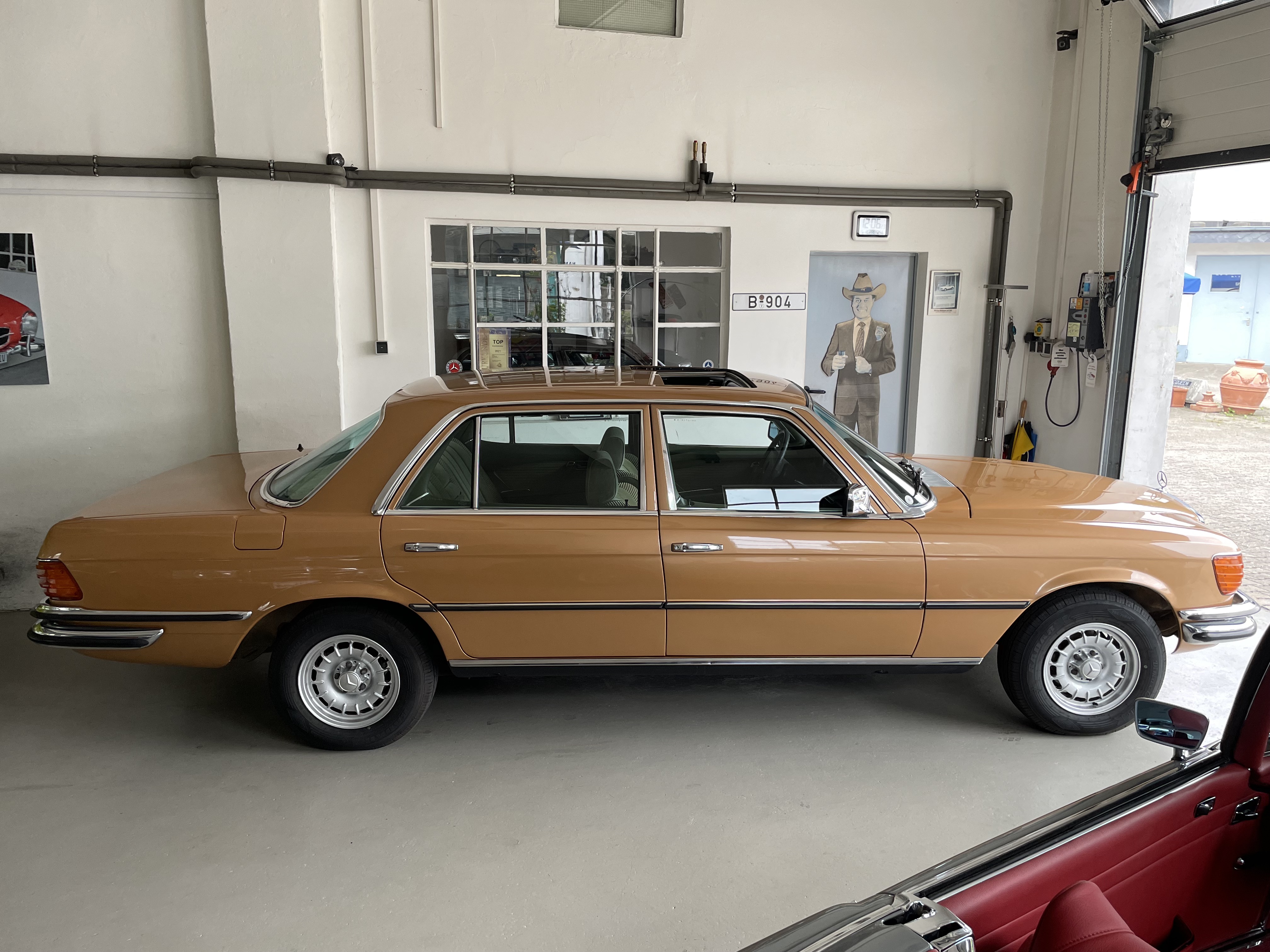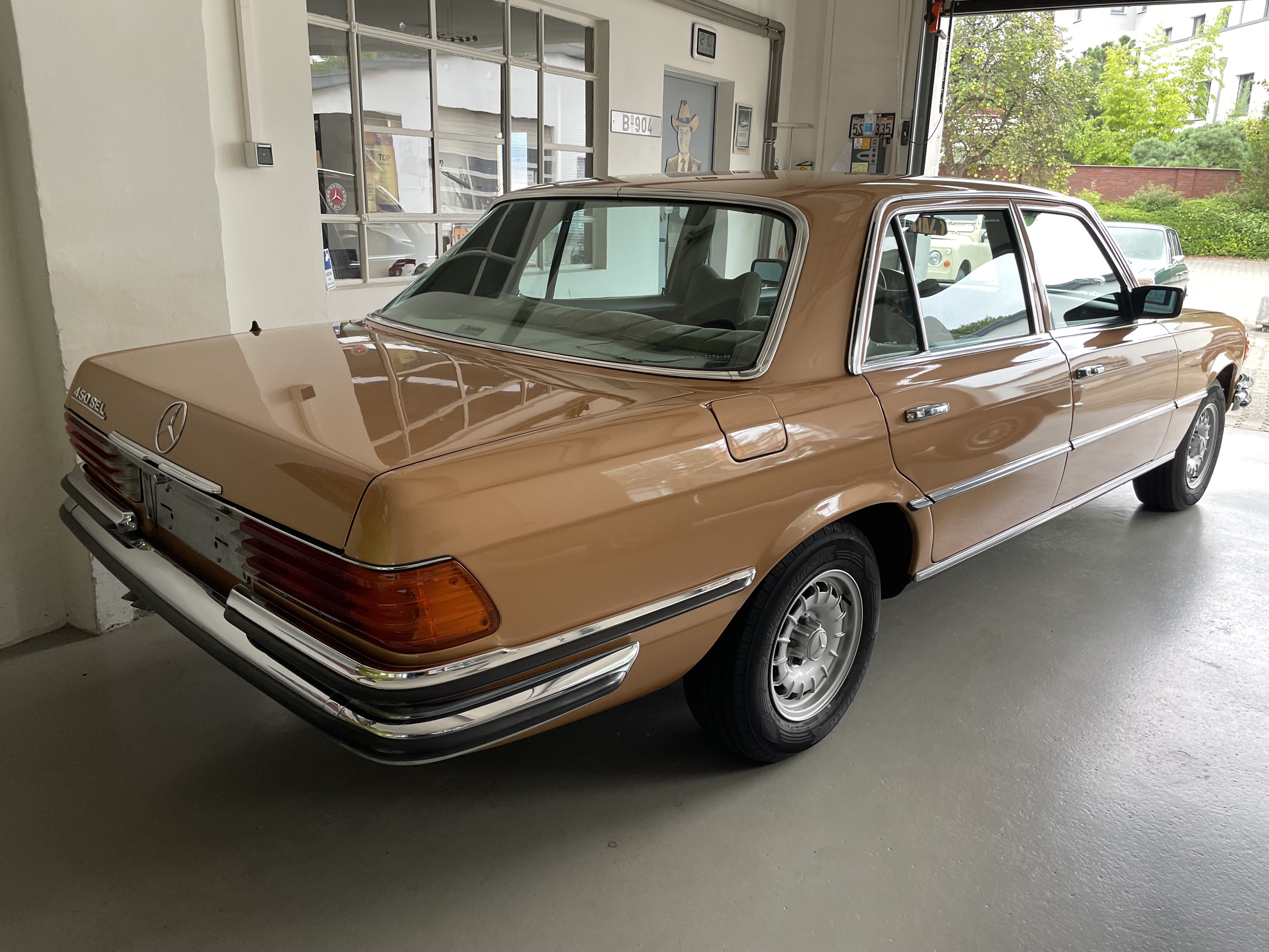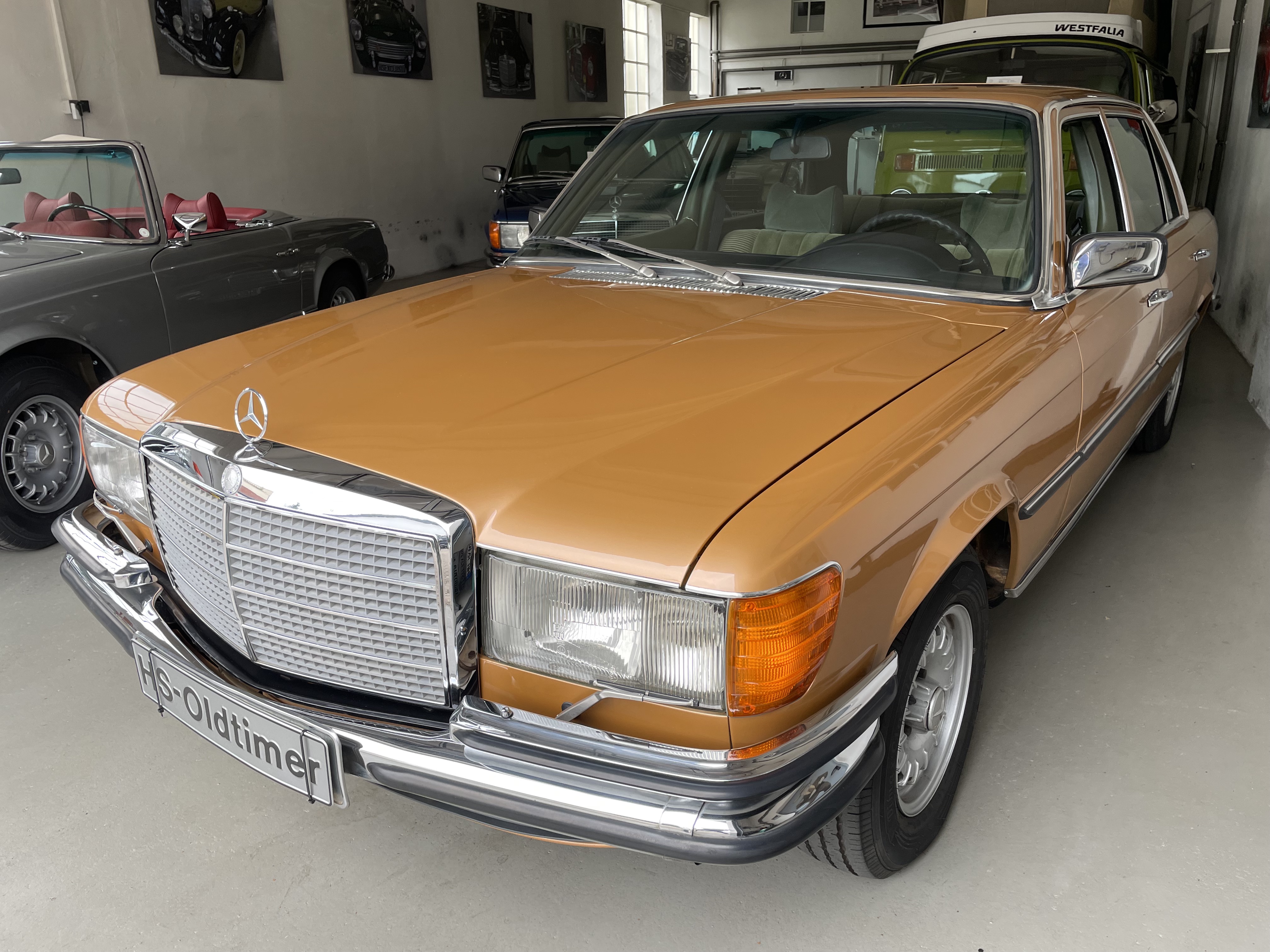 Gut gepflegter 450 SEL aus Spanien. Das moosgrüne Velours ist im guten Zustand. Der 450er wurde einige Jahre in Spanien kaum gefahren. Km sind laut der vorliegenden Unterlagen nachweisbar. Rechnungen der umfangreichen Arbeiten an der Technik (Mehr als 9.000 Euro) sind vorhanden. TÜV und H-Zulassung wurden neu gemacht. Der SEL fährt sich phantastisch, der Motor läuft seidenweich und das Getriebe schalte sanft die Gänge hoch. Wer einen 450 SEL mit sehr guter Blechsubstanz sucht, sollte sich diesen auf jeden Fall einmal anschauen, es lohnt sich wie immer bei uns. Wir freuen uns auf Ihren Anruf und Besuch. Weitere Infos und schöne Oldtimer finden Sie auf unserer Homepage: www.hs-oldtimer.de