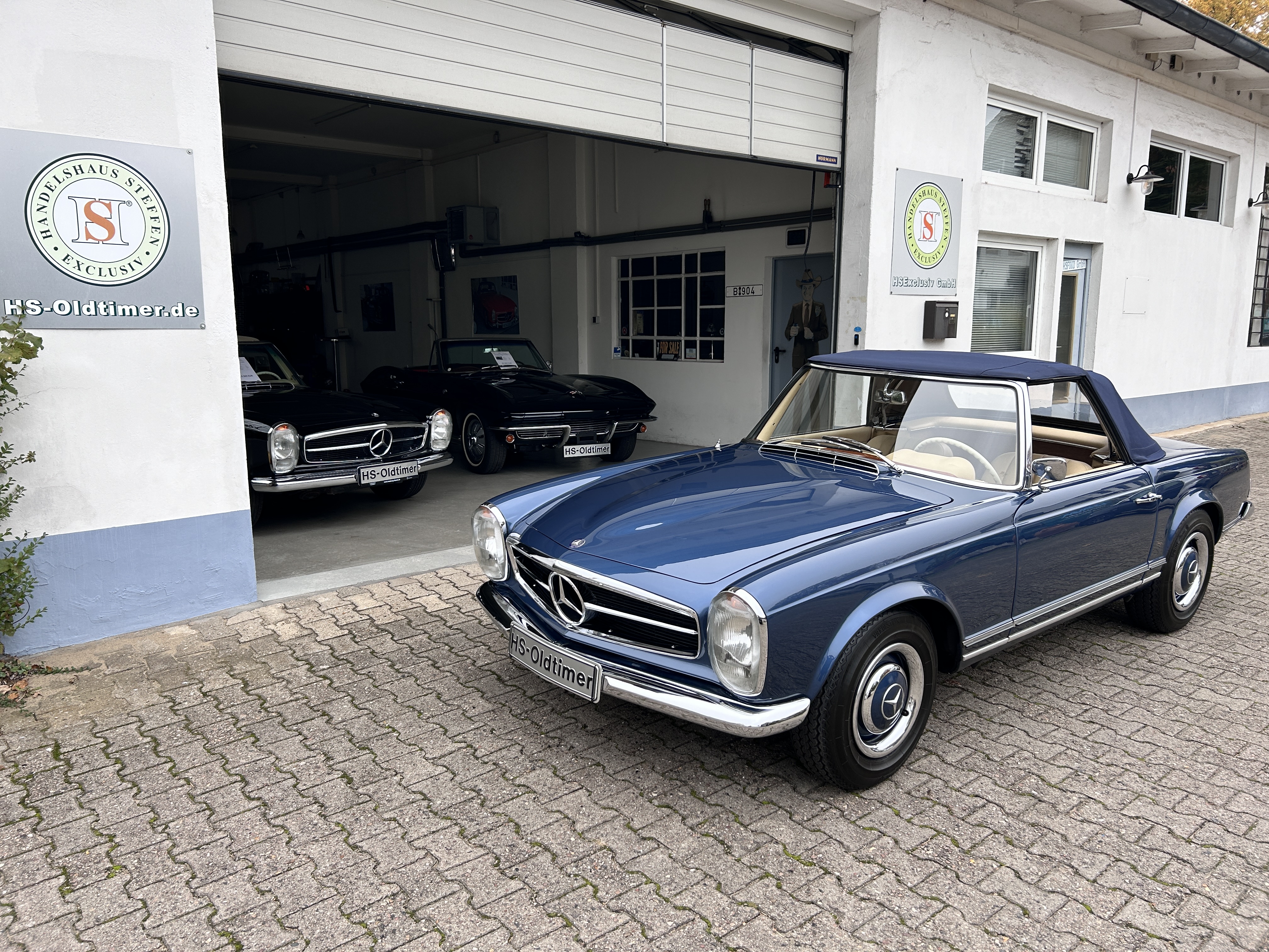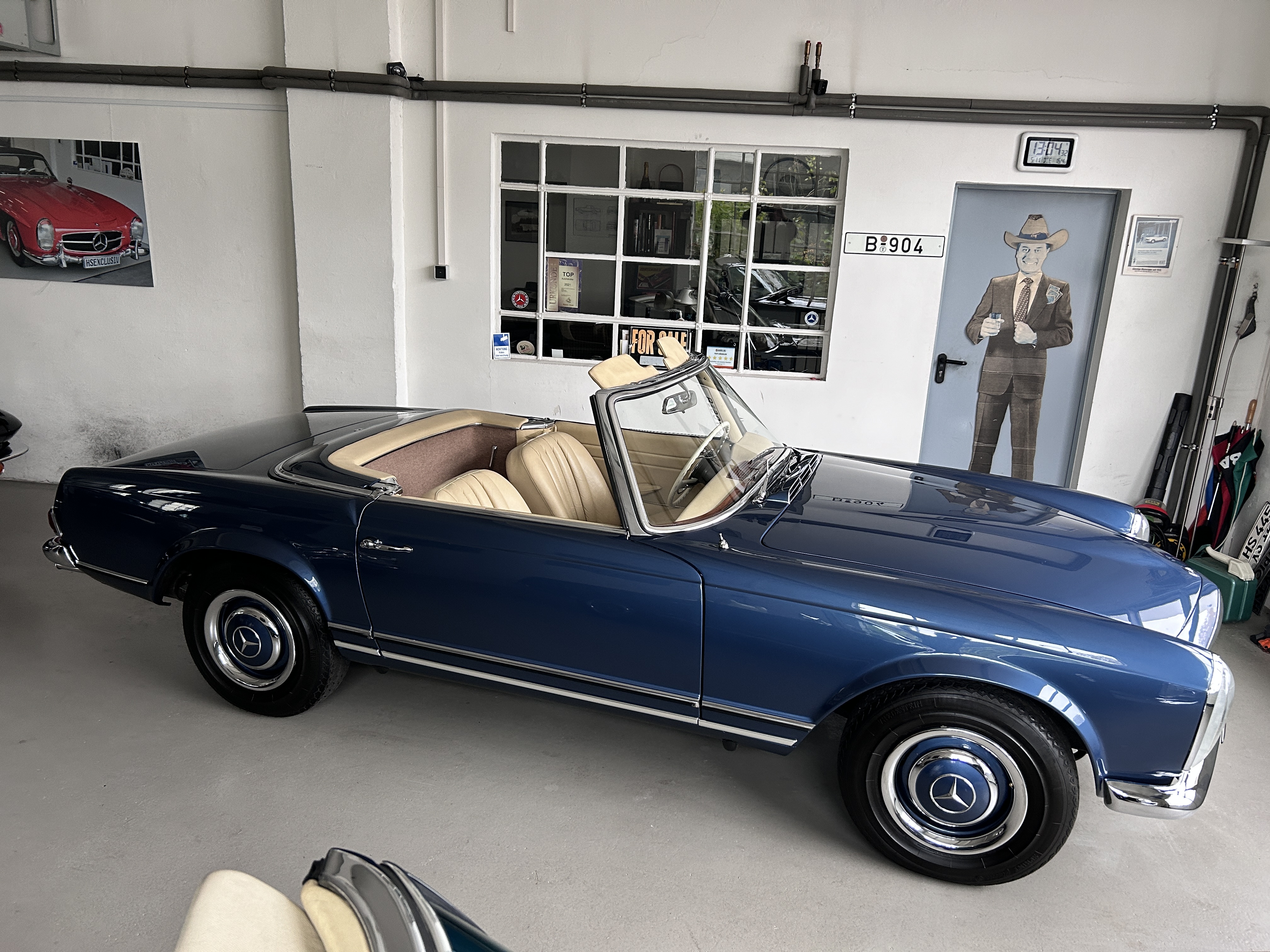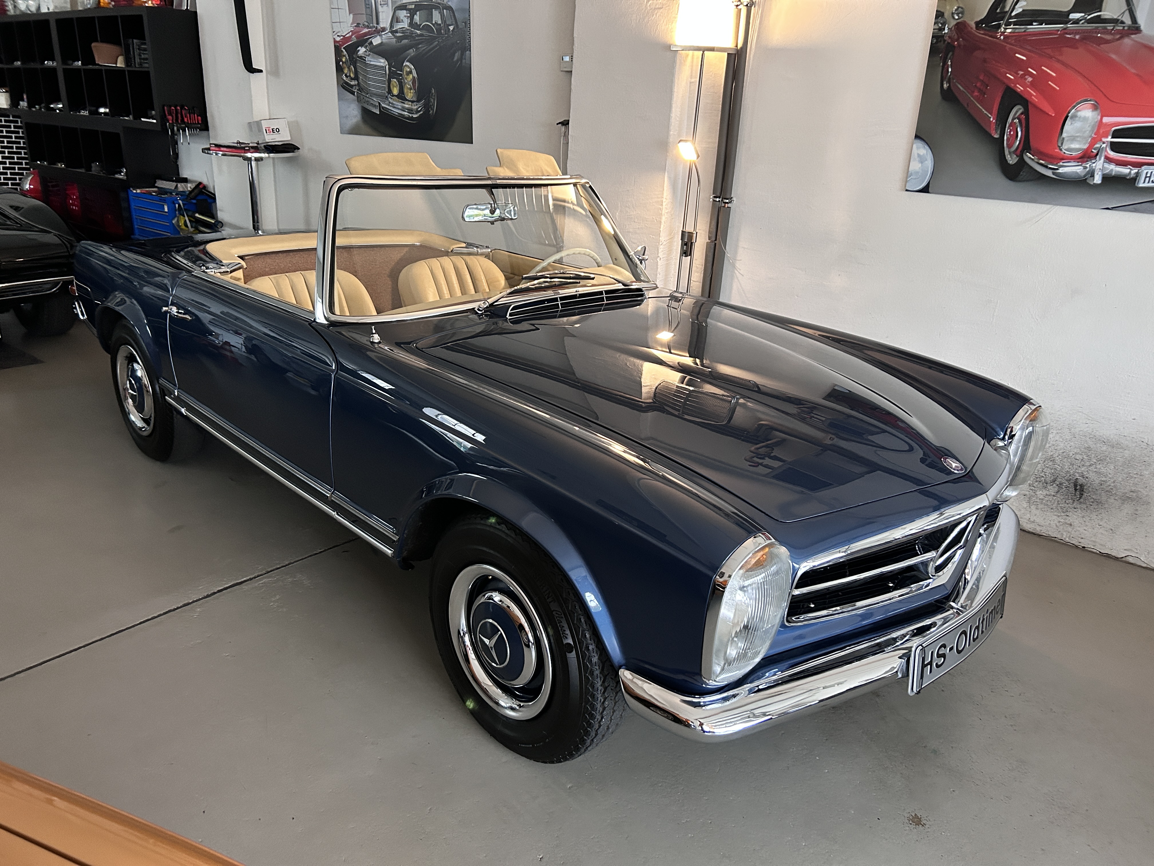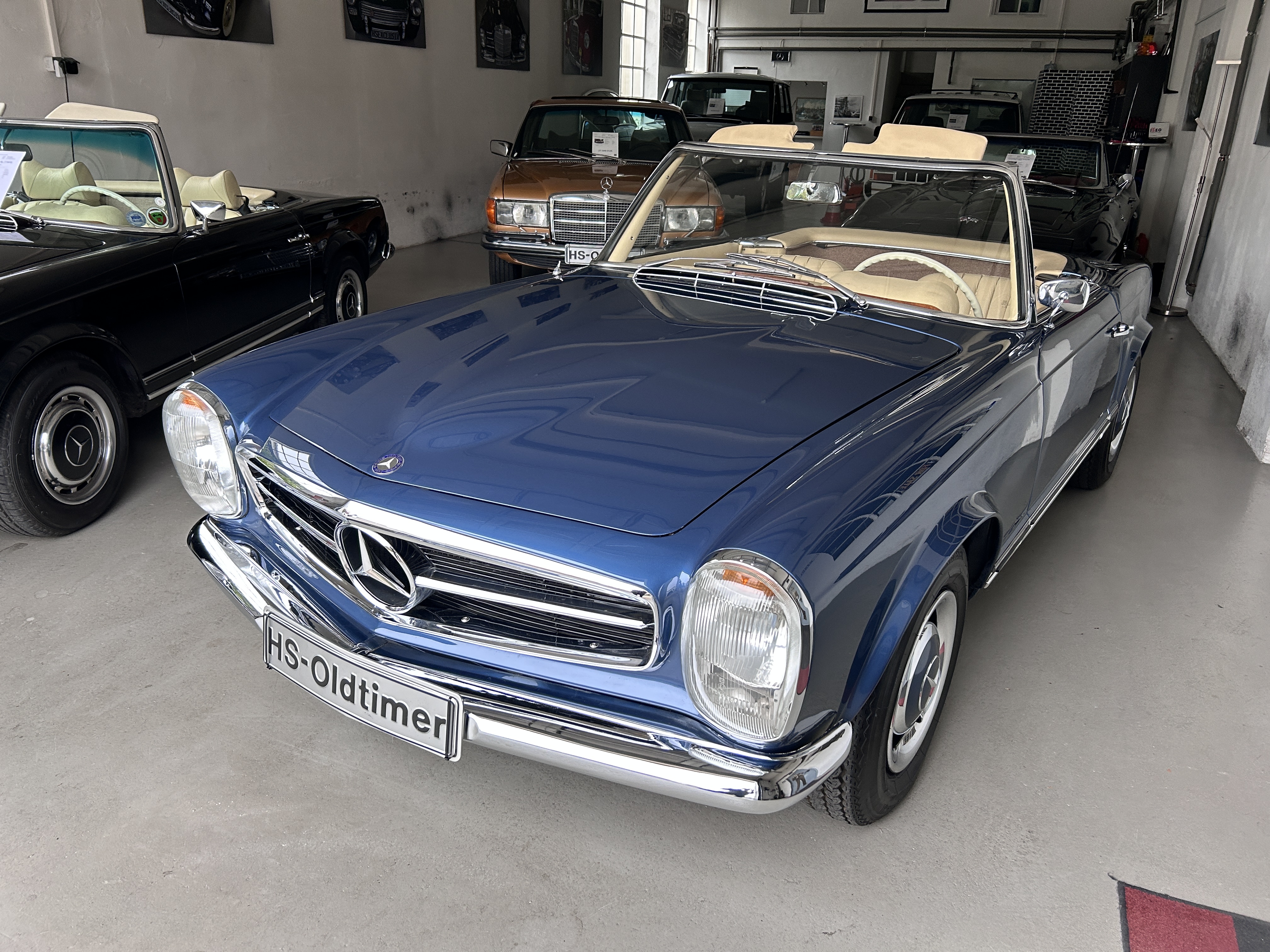 Restaurierter 230 SL im top Pflegezustand. Deutsches Auto mit beliebter 4 Gang H-Schaltung. Tolle Farbkombination! Die Pagode fährt sich phantastisch. Viele Rechnungen und ein alter Brief etc. sind vorhanden. Wertgutachten aus 04.2024 wurde vom Kunden mitgeliefert, 123.000 Euro. Wer eine richtig schöne Pagode sucht, sollte sich diesen auf jeden Fall einmal anschauen, es lohnt sich wie immer bei uns. Wir freuen uns auf Ihren Anruf und Besuch. Weitere Infos und schöne Oldtimer finden Sie auf unserer eigenen Homepage: www.hs-oldtimer.de