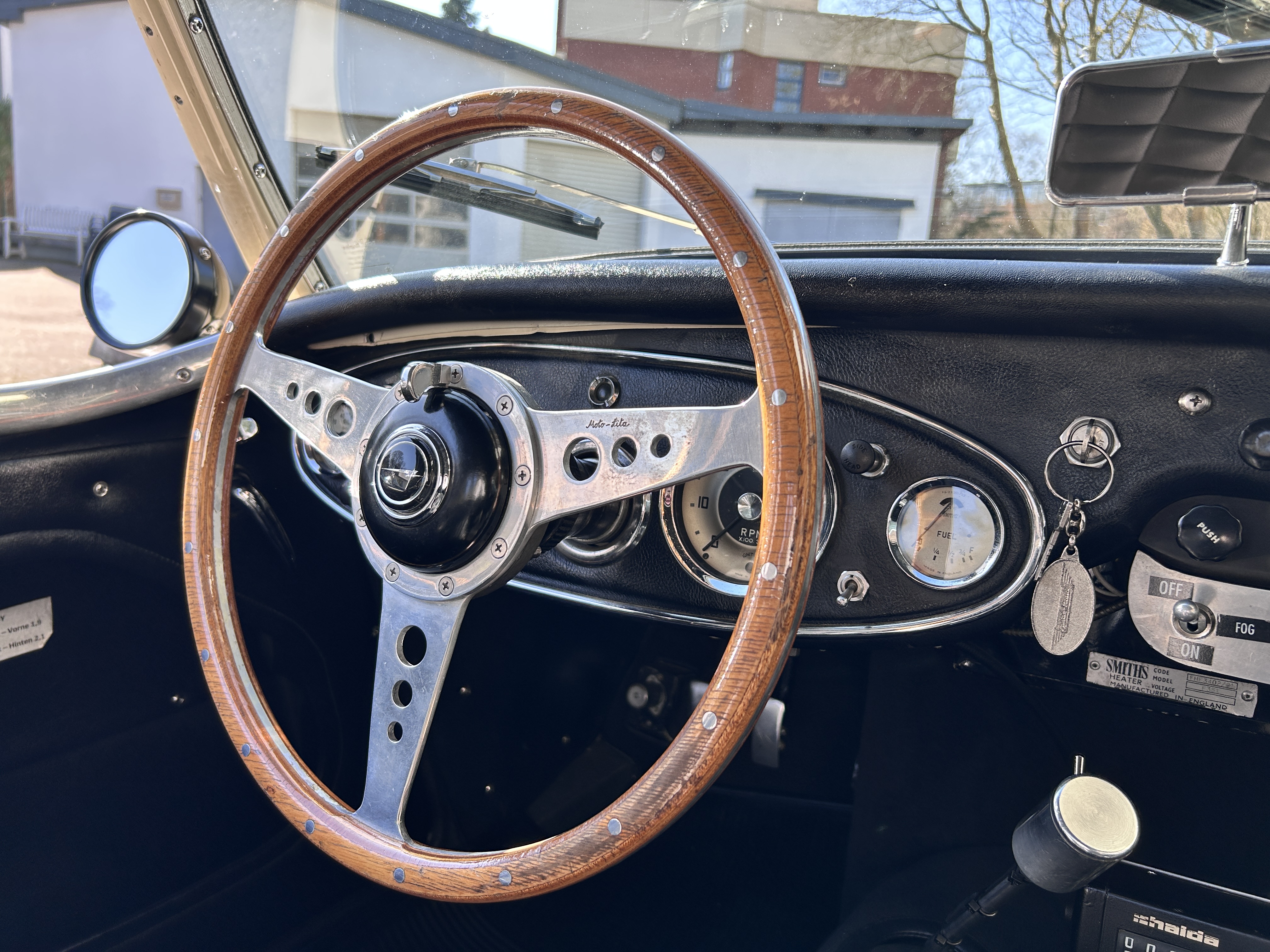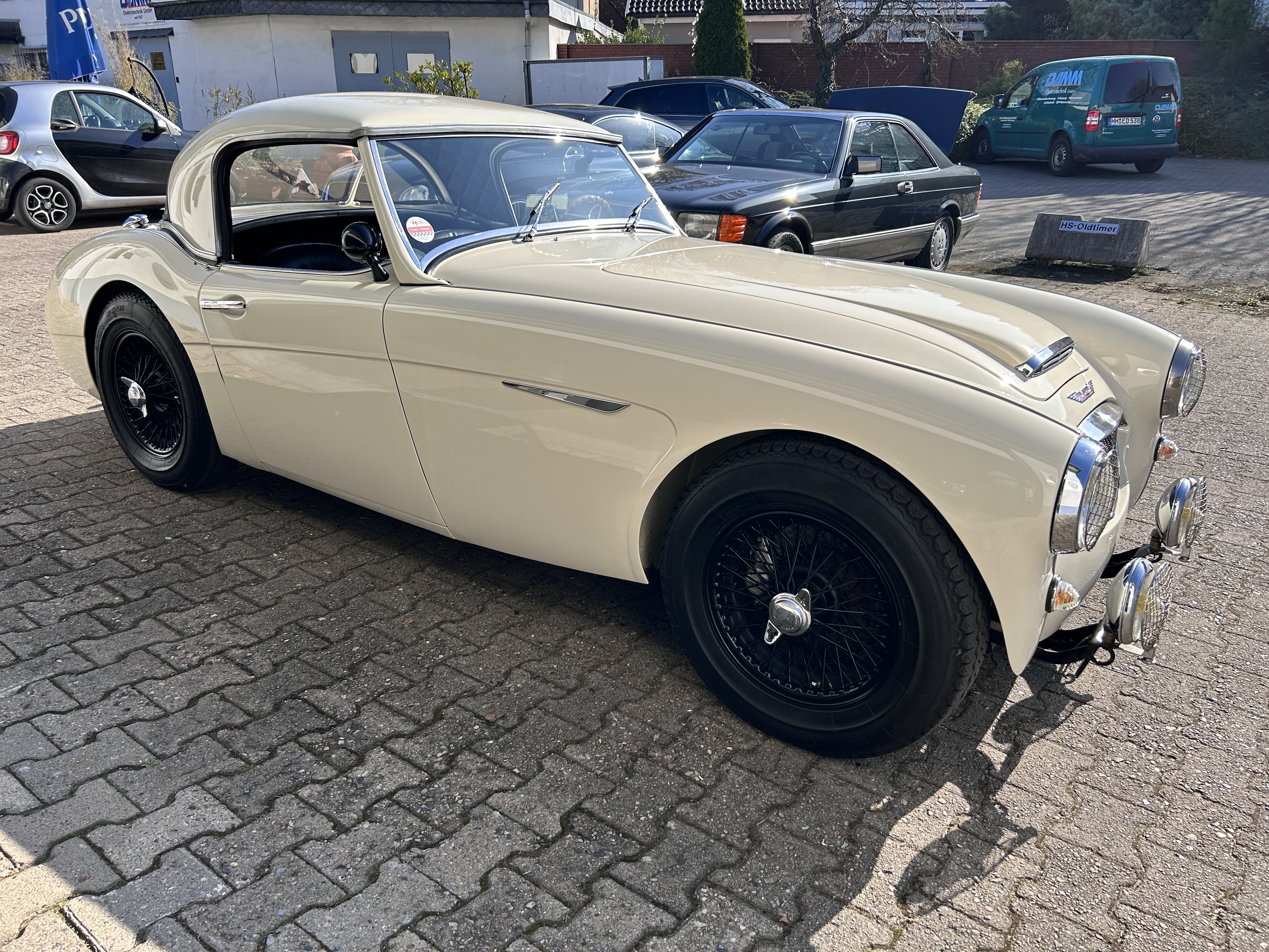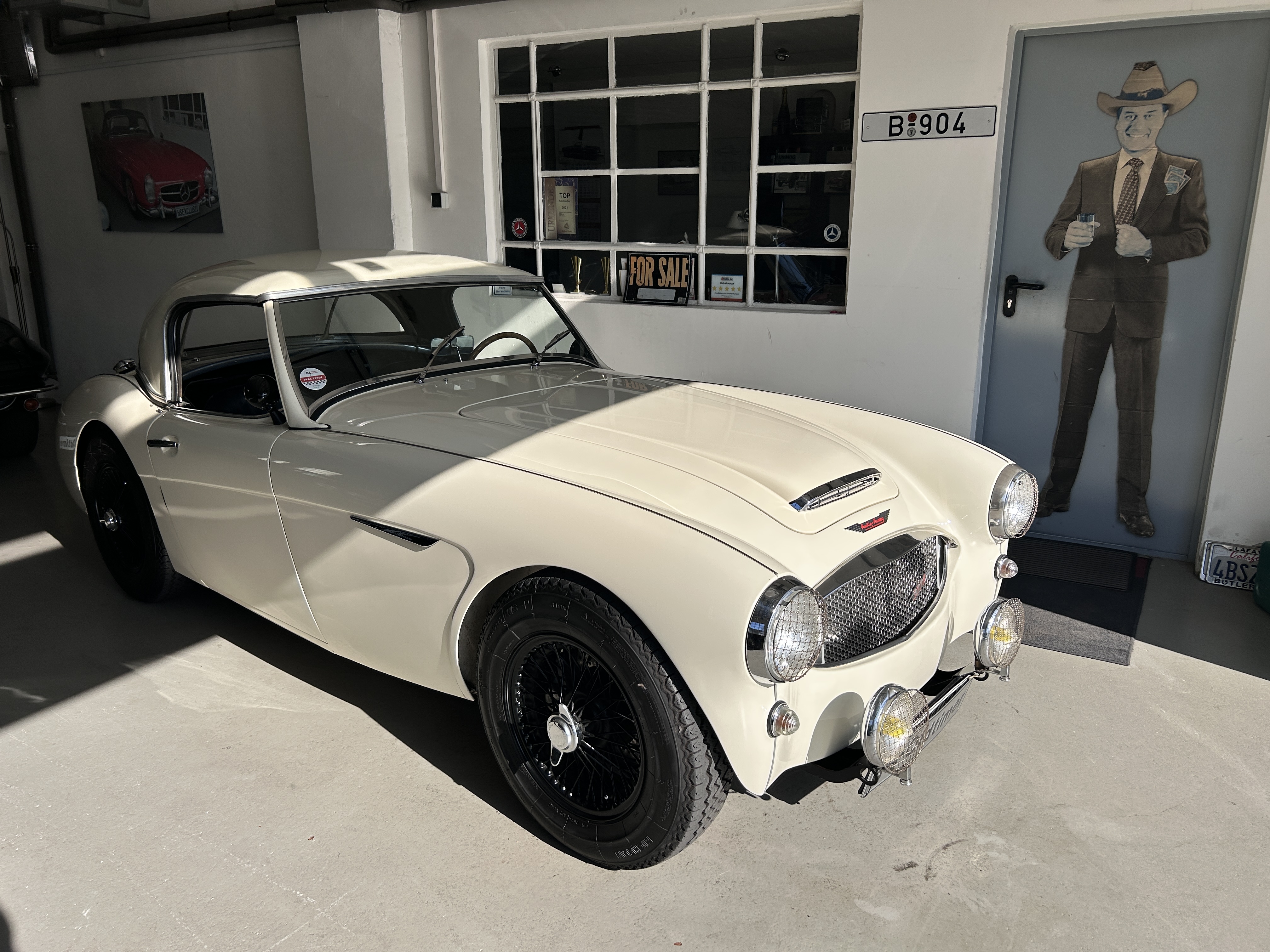 Top gepflegter Austin Healey. Von 1995 bis heute in der selben Hand. Dicker Ordner mit allen Unterlagen vorhanden inkl. Heritage Zertifikat. Ca. 150 PS, drei Weber Vergaser... Im Sommer immer gefahren, somit keine Standschäden. Aus einer kleinen Sammlung. Stoßstange vorn, original Kühlermaske, Softtop und Steckscheiben alles vorhanden. Vom Zweisitzer sind nur 2.825 Exemplare gebaut worden. Aus Altersgründen abzugeben. Wer einen besonderen und besonders guten Healey sucht, sollte sich diesen auf jeden Fall einmal anschauen, es lohnt sich wie immer bei uns. Wir freuen uns auf Ihren Anruf und Besuch. Weitere Infos und schöne Oldtimer finden Sie auf unserer eigenen Homepage: www.hs-oldtimer.de