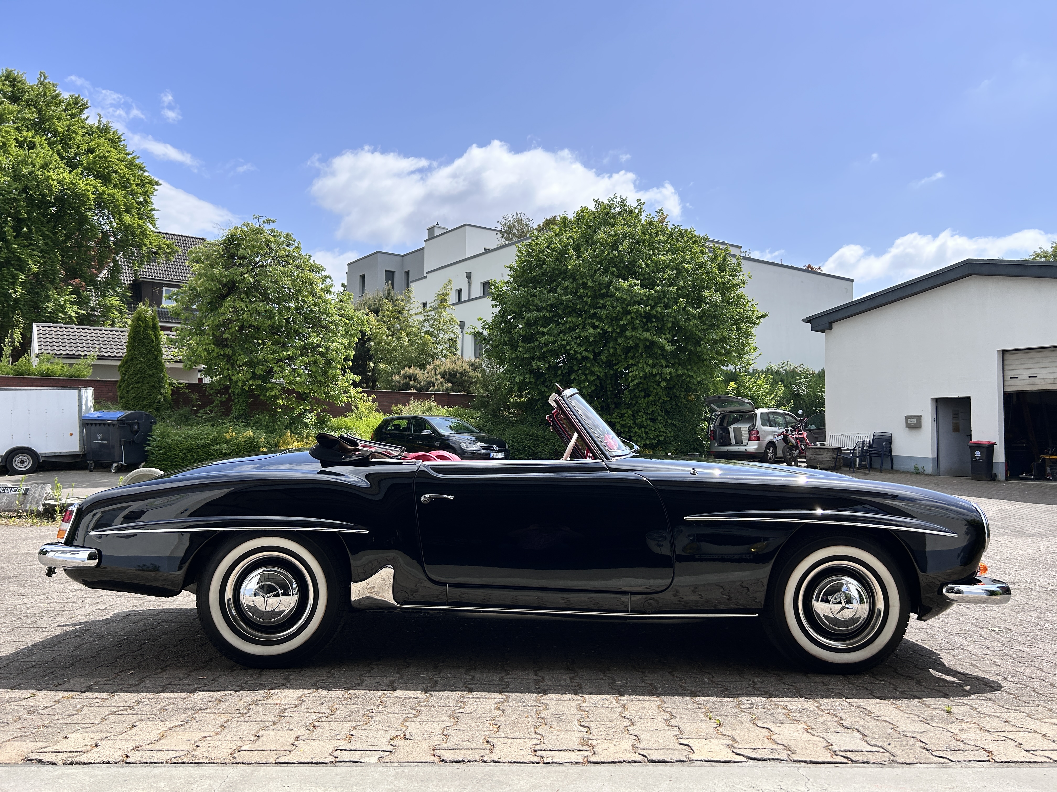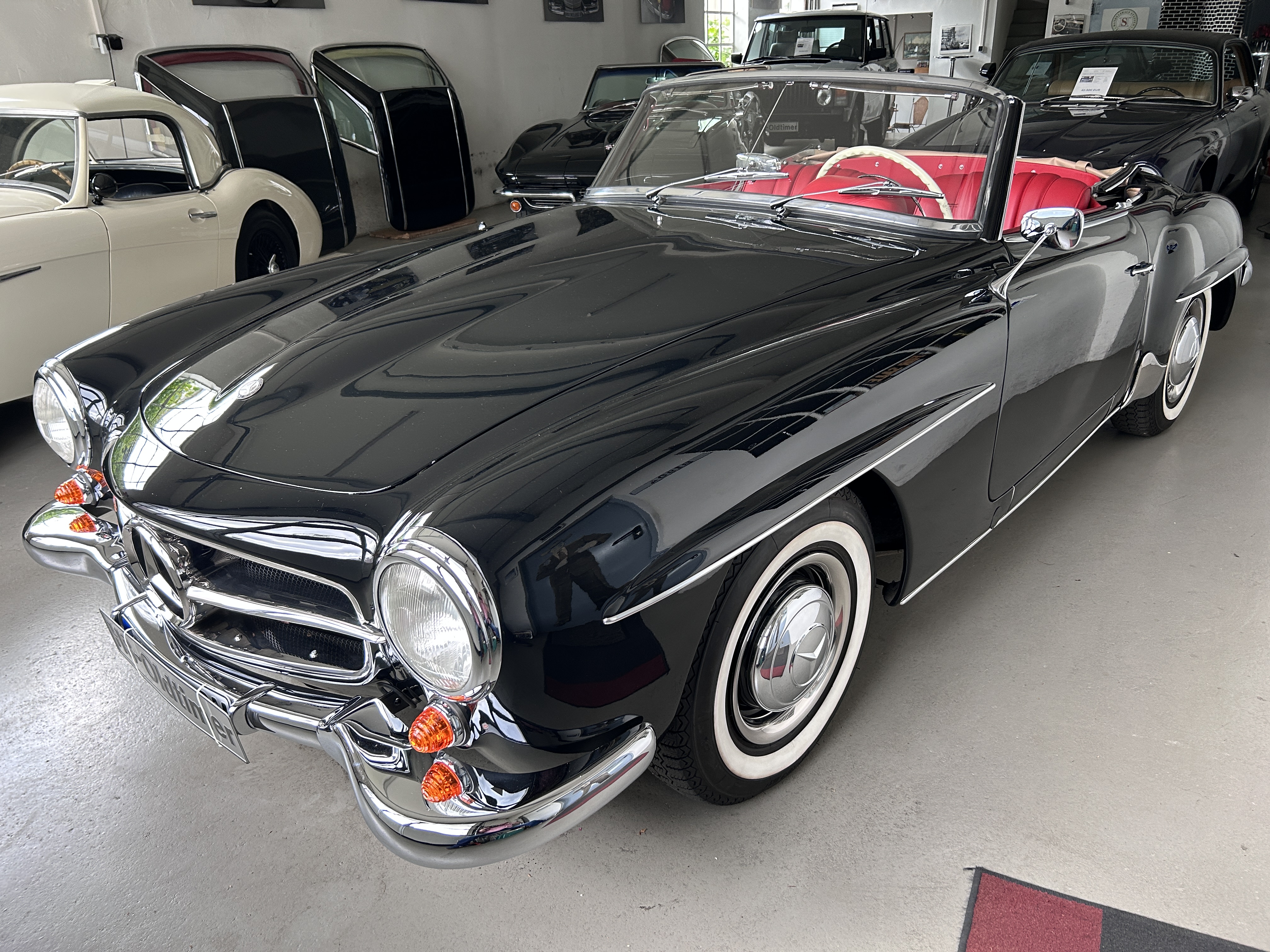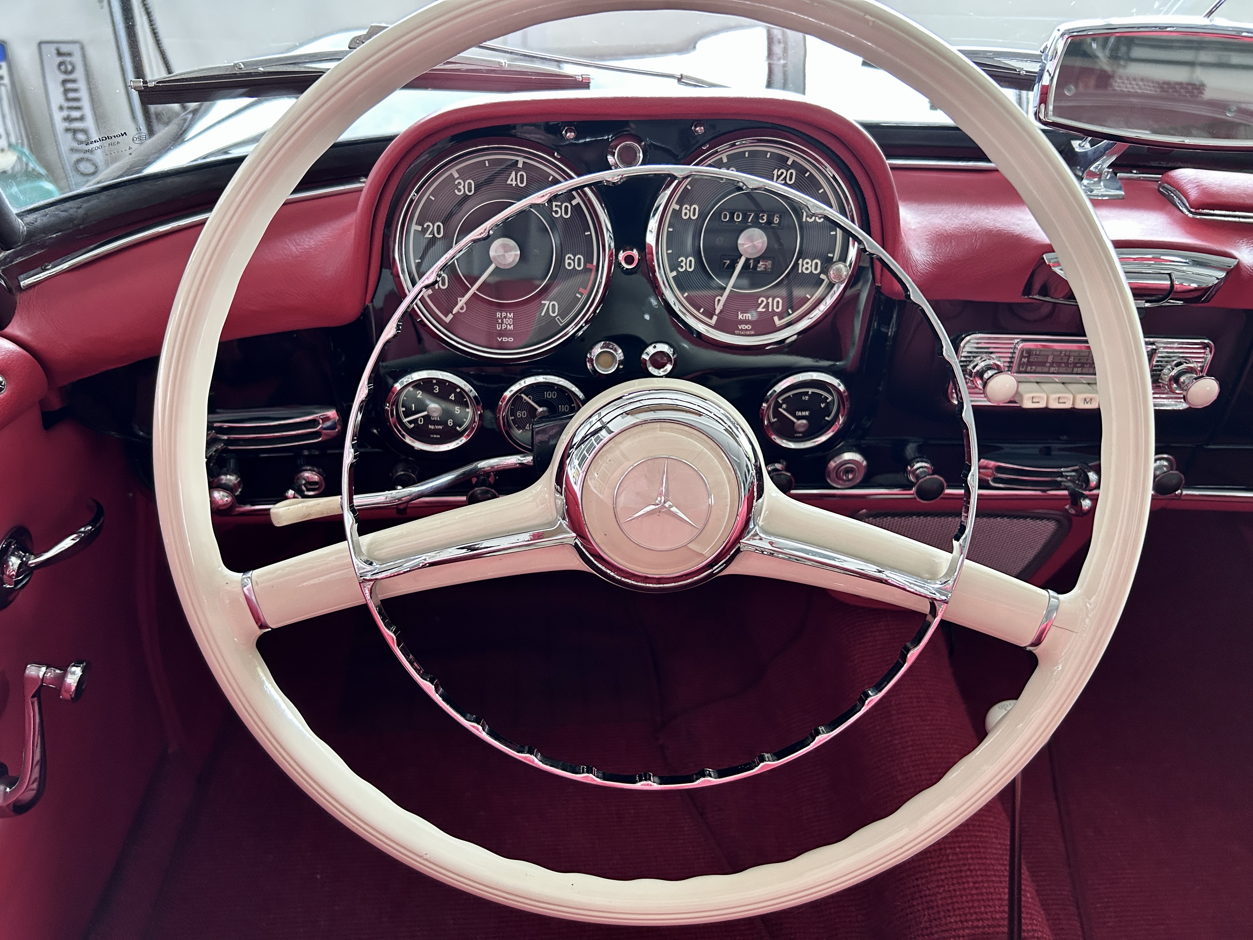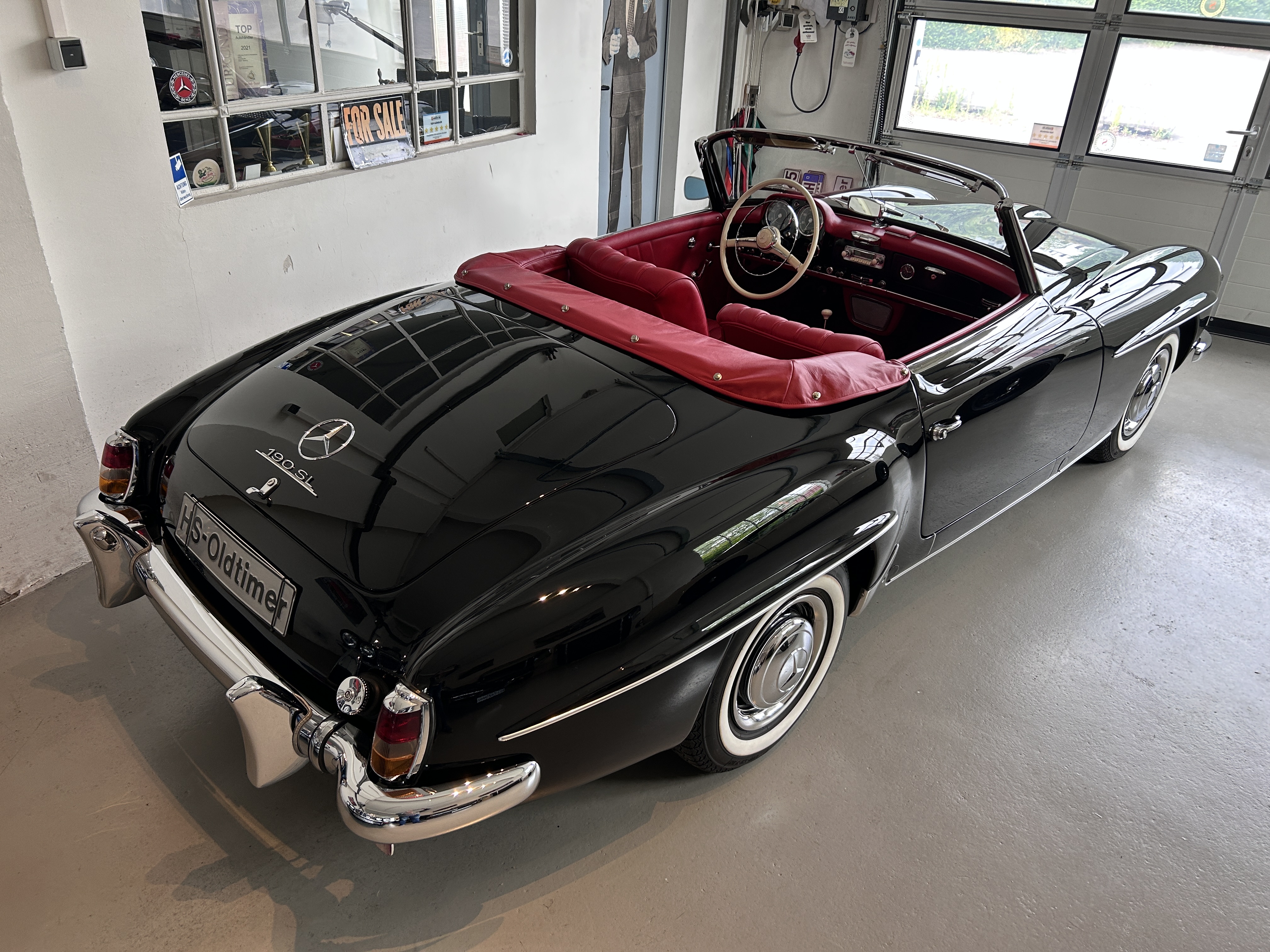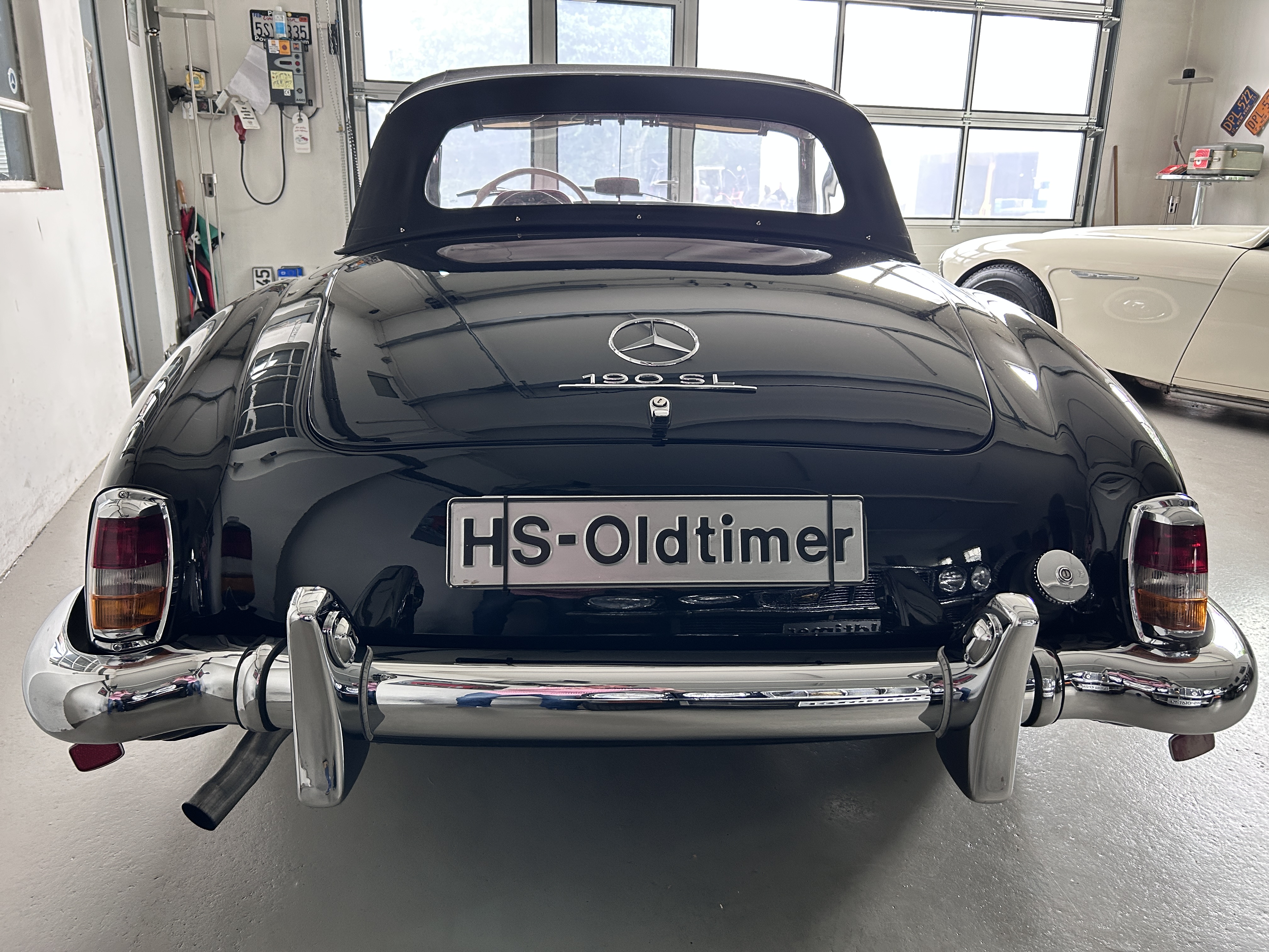 Dieser aufwendig restaurierte 190 SL ist in einem sehr guten Zustand. Meiner Meinung nach die schönste Farbkombination für dieses Auto und auch berühmt geworden durch Rosemarie Nitribitt, die den SL genau so gefahren hat (Im Film leider falsch dargestellt, in Rot / Rot). Es gibt einen dicken Ordner mit Unterlagen; Rechnungen, TÜV-Belegen, einem alten Kfz Brief und vieles mehr. Der Kunde hat auch ein Gutachten mitgeliefert über 162.000 Euro, mit der Zustandsnote 1-. Das Auto fährt sich phantastisch. Der Motor läuft sehr schön und das Getriebe lässt sich sauber schalten. Wer den Besten 190 SL sucht, sollte sich diesen auf jeden Fall einmal anschauen, es lohnt sich wie immer bei uns. Wir freuen uns auf Ihren Anruf und Besuch. Weitere Infos und schöne Oldtimer finden Sie auf unserer eigenen Homepage: www.hs-oldtimer.de