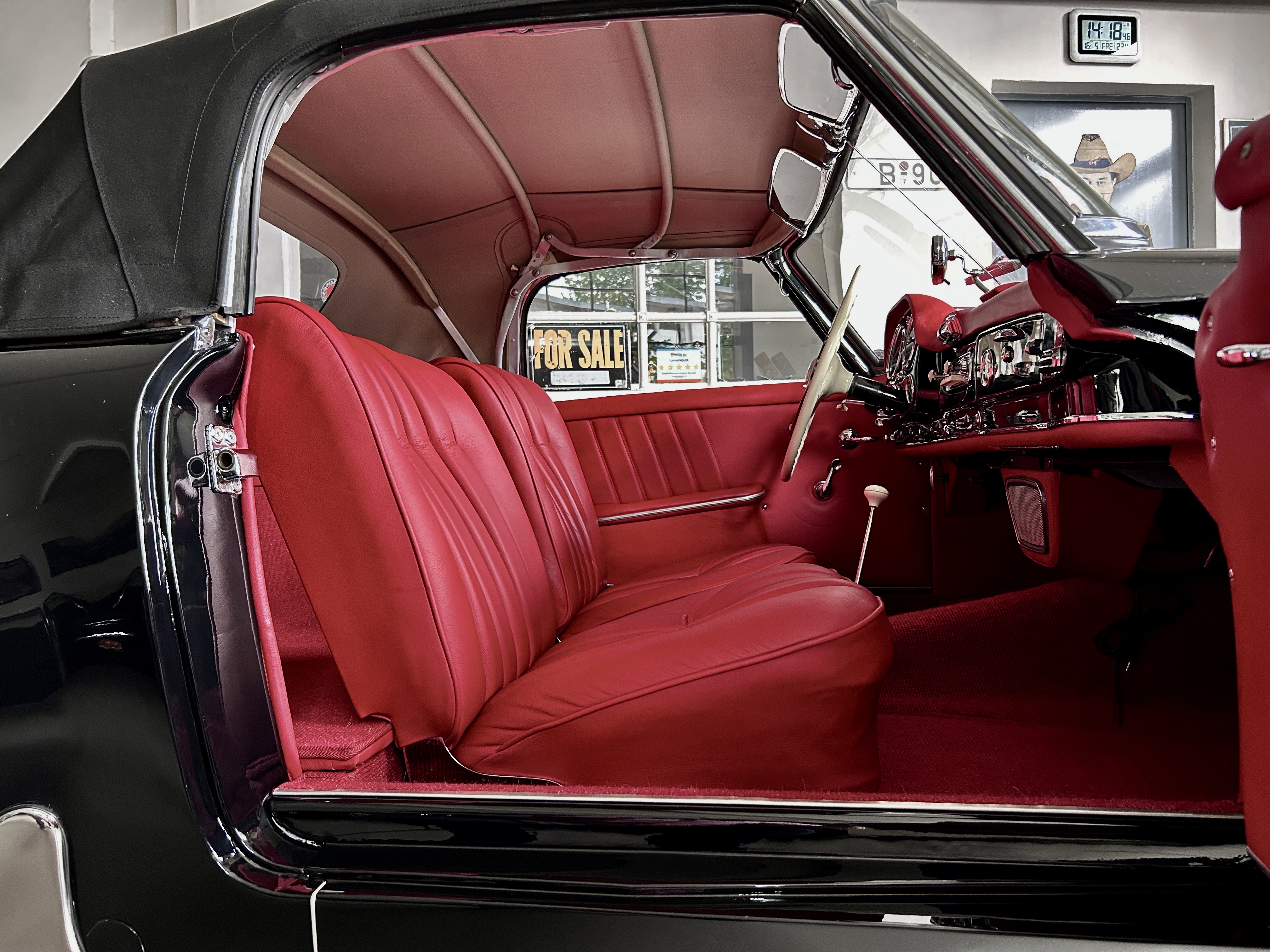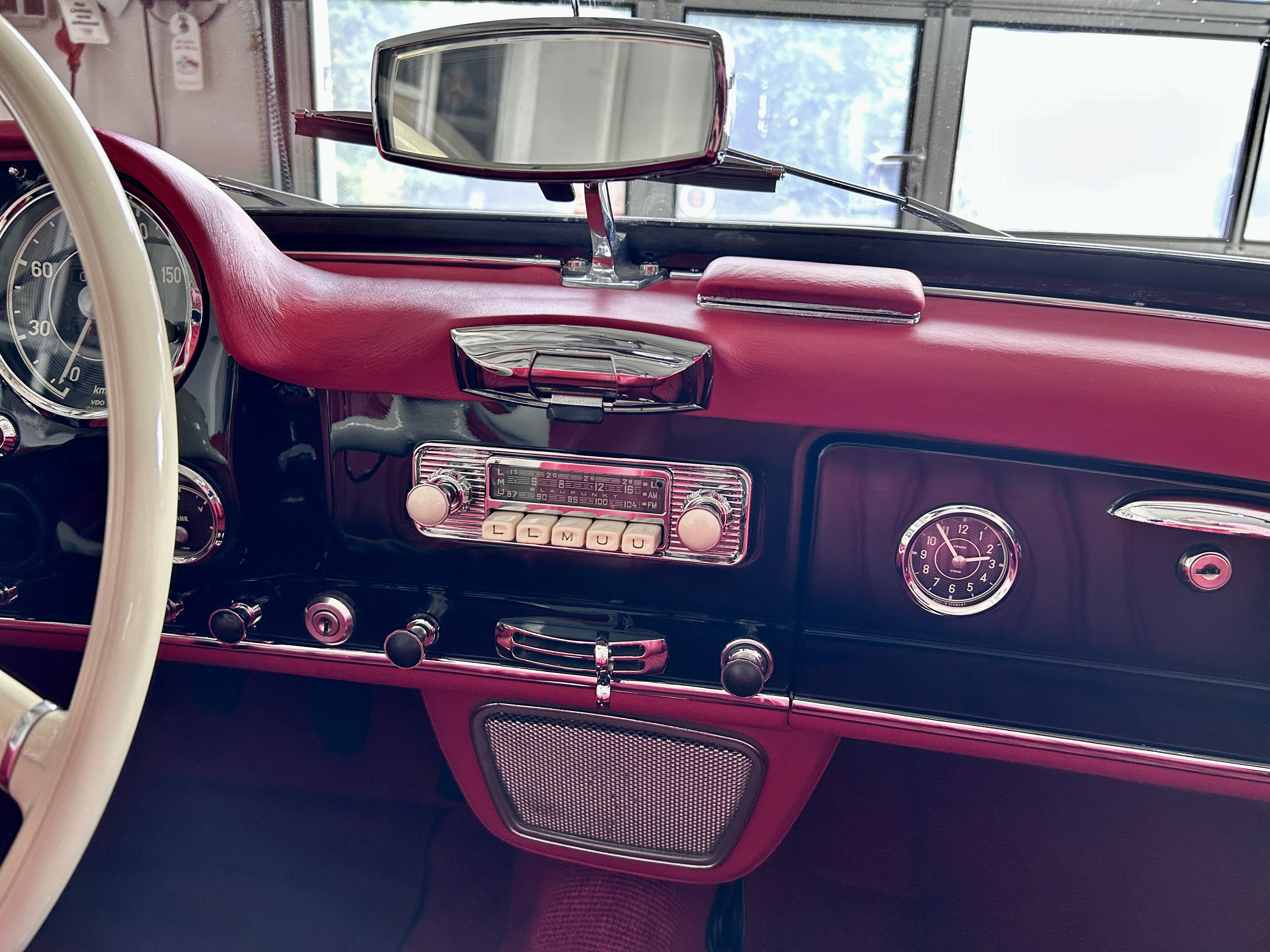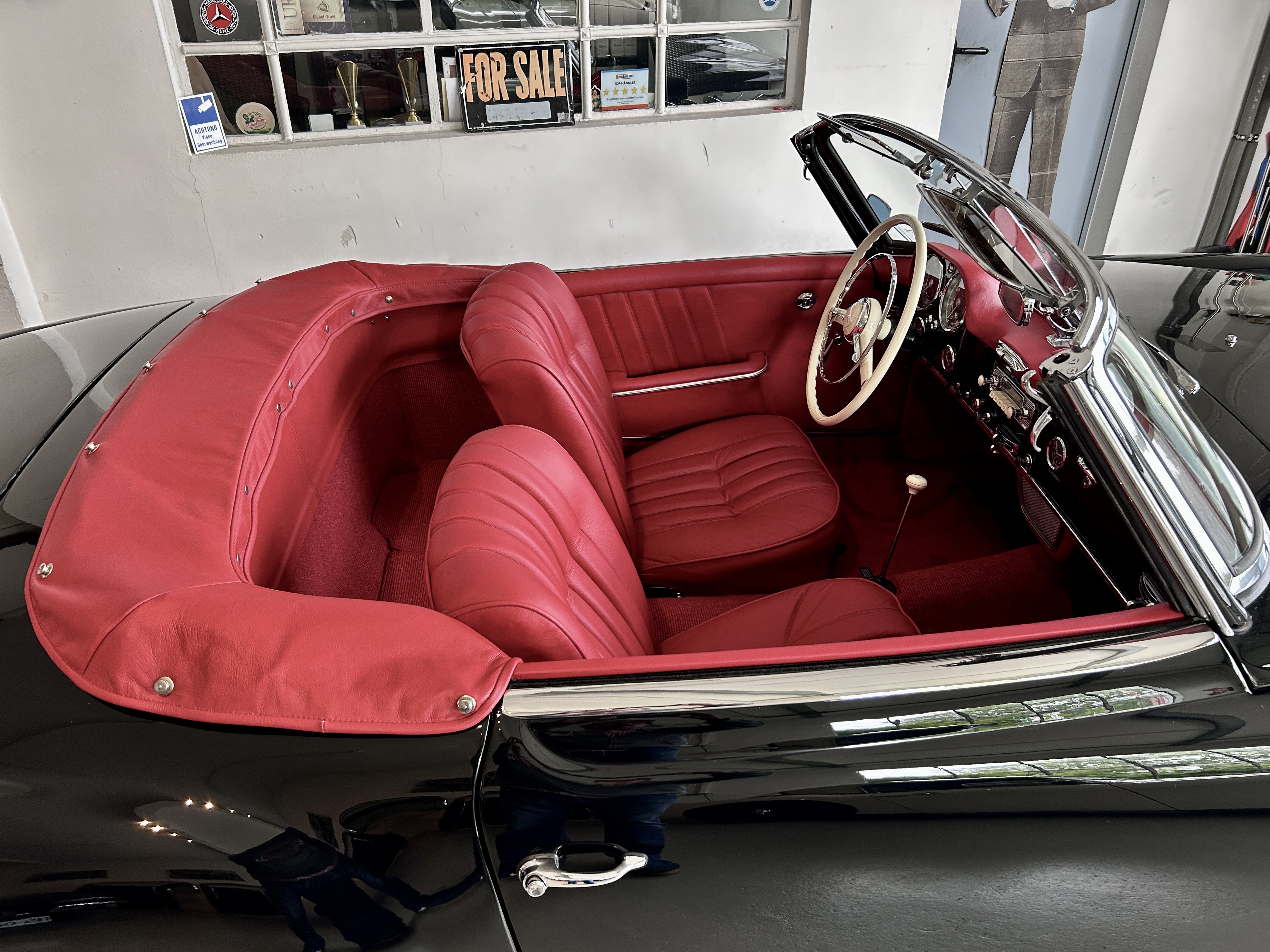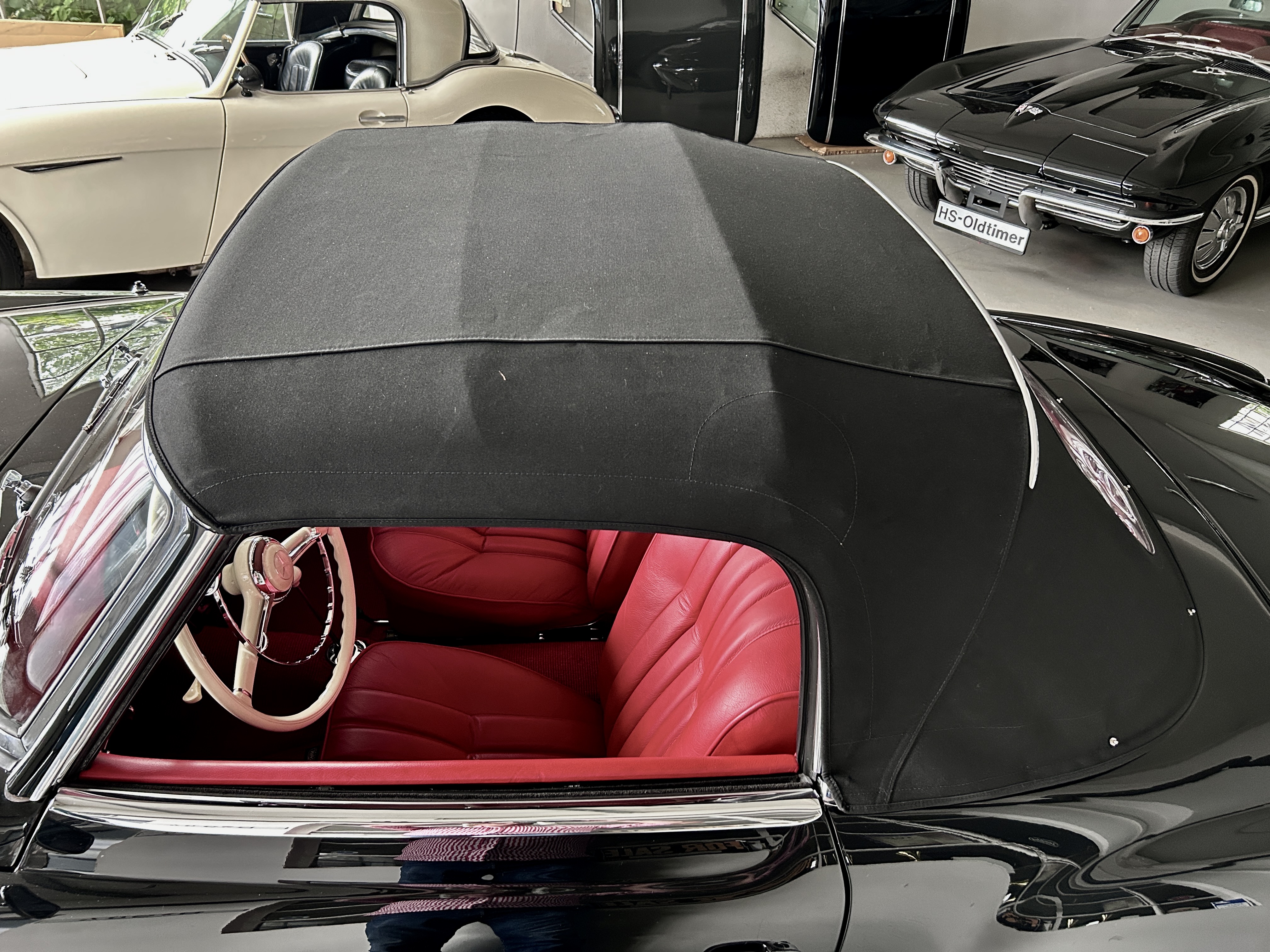 Dieser aufwendig restaurierte 190 SL ist in einem sehr guten Zustand. Meiner Meinung nach die schönste Farbkombination für dieses Auto und auch berühmt geworden durch Rosemarie Nitribitt, die den SL genau so gefahren hat (Im Film leider falsch dargestellt, in Rot / Rot). Es gibt einen dicken Ordner mit Unterlagen; Rechnungen, TÜV-Belegen, einem alten Kfz Brief und vieles mehr. Der Kunde hat auch ein Gutachten mitgeliefert über 162.000 Euro, mit der Zustandsnote 1-. Das Auto fährt sich phantastisch. Der Motor läuft sehr schön und das Getriebe lässt sich sauber schalten. Wer den Besten 190 SL sucht, sollte sich diesen auf jeden Fall einmal anschauen, es lohnt sich wie immer bei uns. Wir freuen uns auf Ihren Anruf und Besuch. Weitere Infos und schöne Oldtimer finden Sie auf unserer eigenen Homepage: www.hs-oldtimer.de