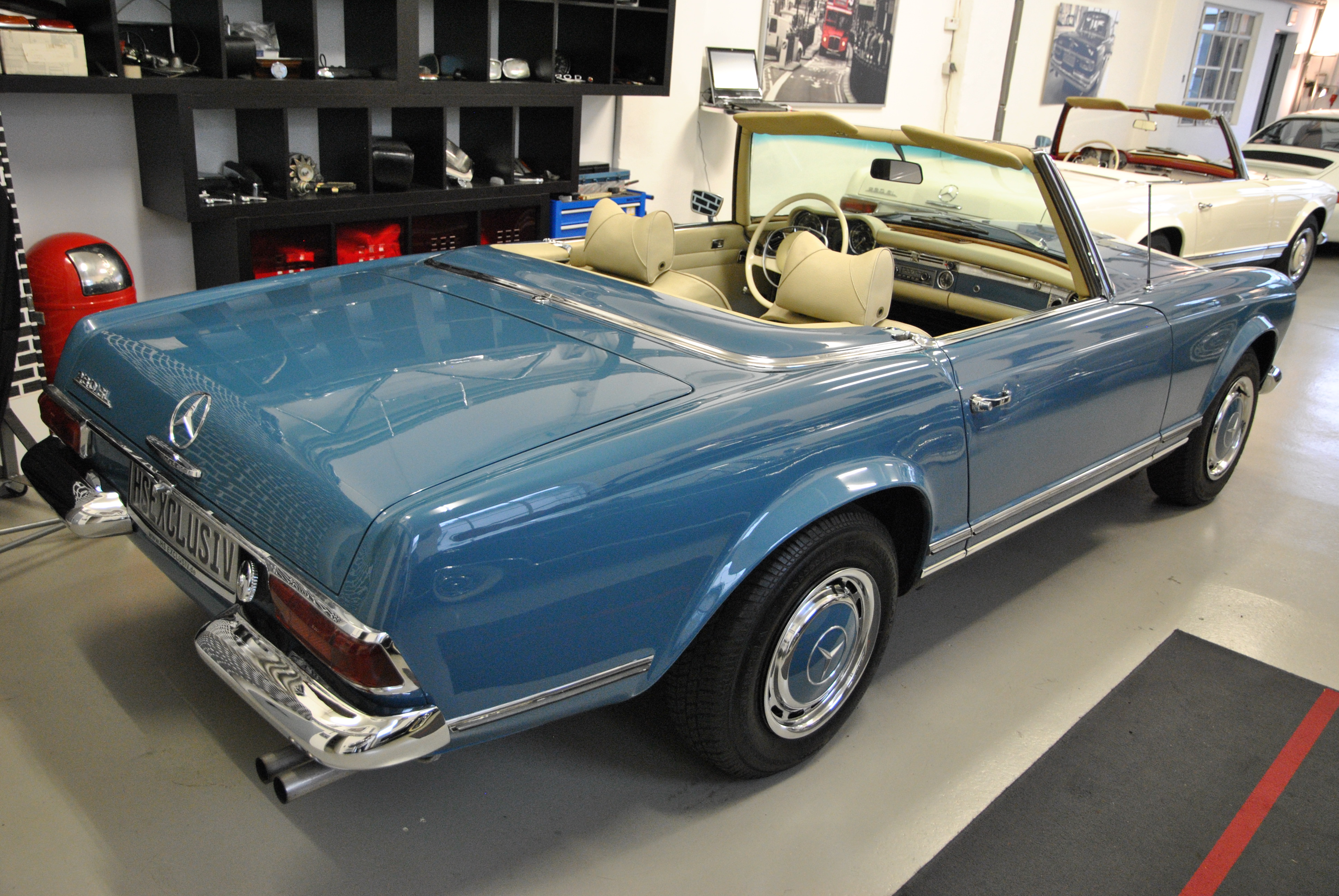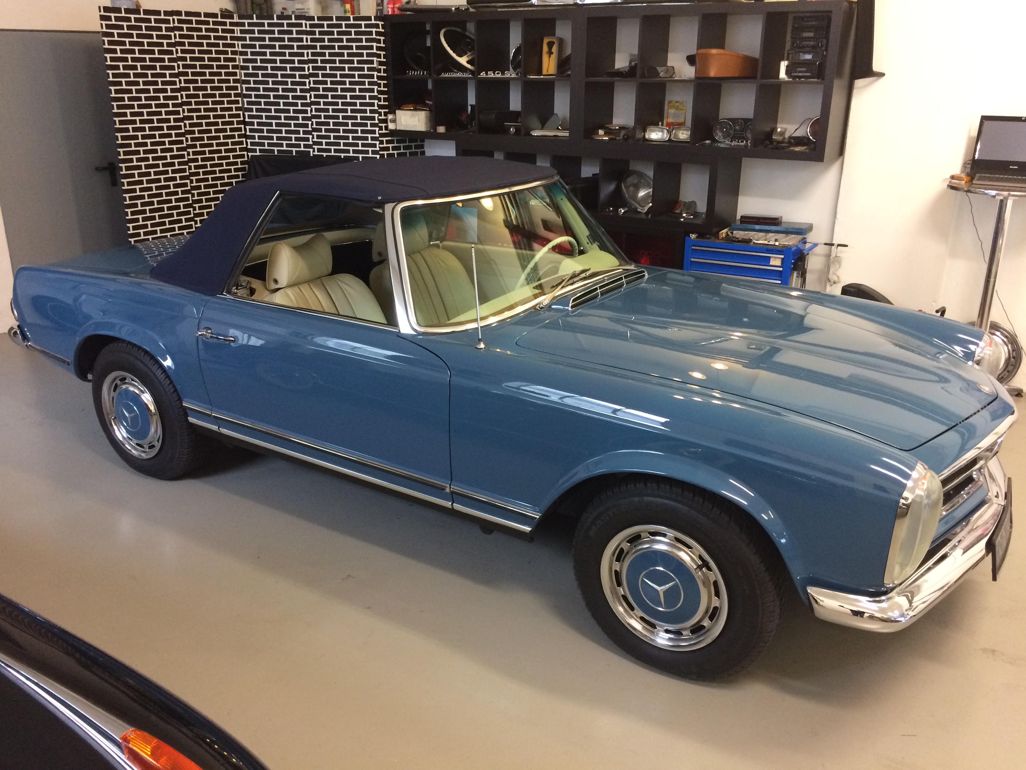 Top gepflegter 280 SL. Der Lack ist super. Die Chomteile sind gut bis sehr gut. Die Karosserie ist im super Zustand, Rost haben wir nicht gefunden. Die Spaltmaße sind top. Alle Nummern stimmen überein (Haube, Verdeckdeckel, Hardtop). Das Softtop ist neu. Der Innenraum ist noch original und und kann auf Wunsch erneuert werden (Verhandlungsbasis). Die Pagode fährt sich phantastisch. Der Motor läuft sehr gut und das Getriebe schalte sauber durch. Scheckheft vorhanden. Die Bordmappen, alte-und neue Rechnungen sind vorhanden. Laut der mitgelieferten Aufzeichnungen ist das Fahrzeug in drei Händen gewesen und ha 86.000 Meilen gelaufen. Besonders schöne und seltene Farbgebung. Tüv und H-Abnehme sind vorbereitet. Technik ist bei Gunnar Hahn gemacht worden. Anschauen lohnt sich hier auf jeden Fall! Angebot freibleibend. Mfg. Wilhelm Steffen