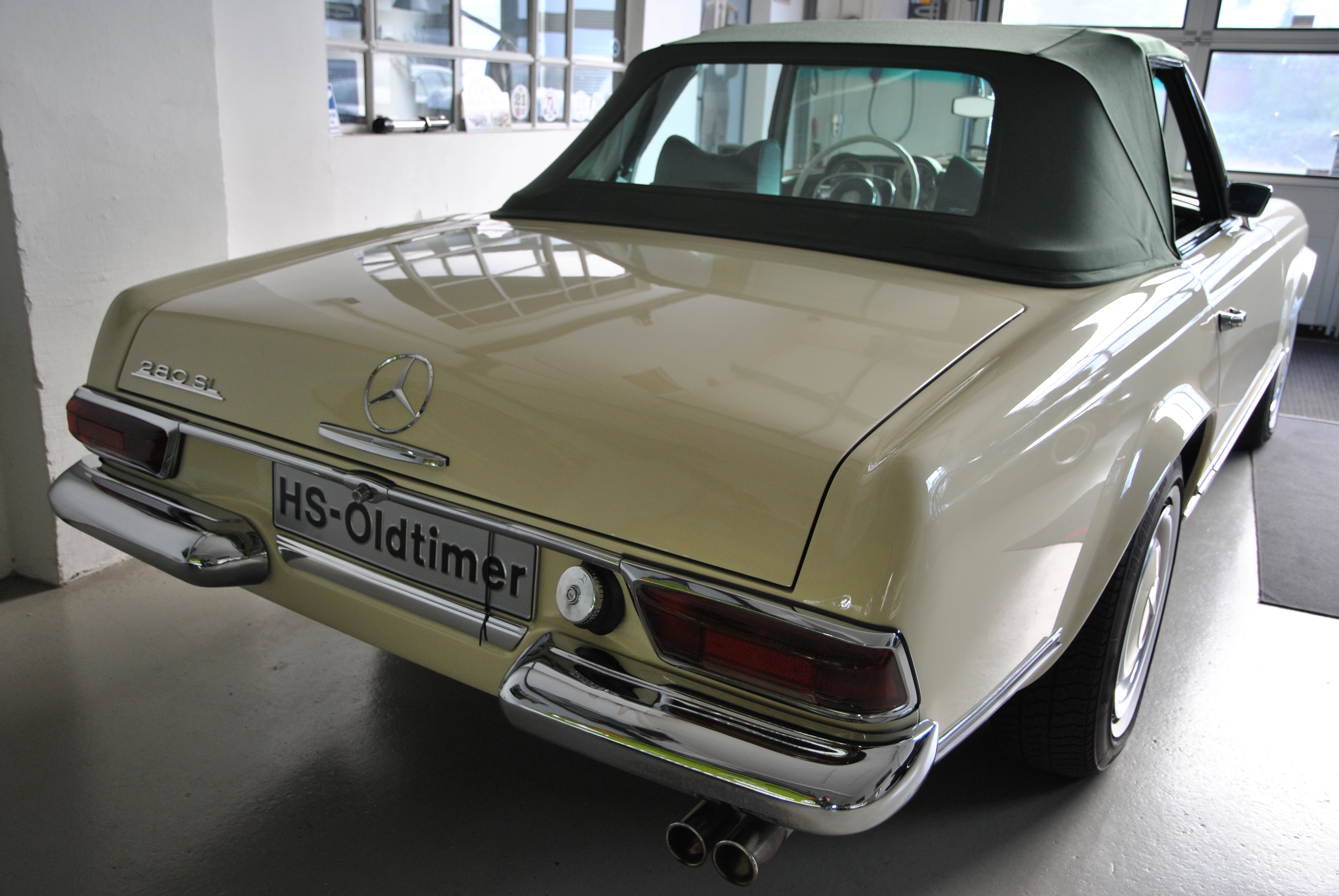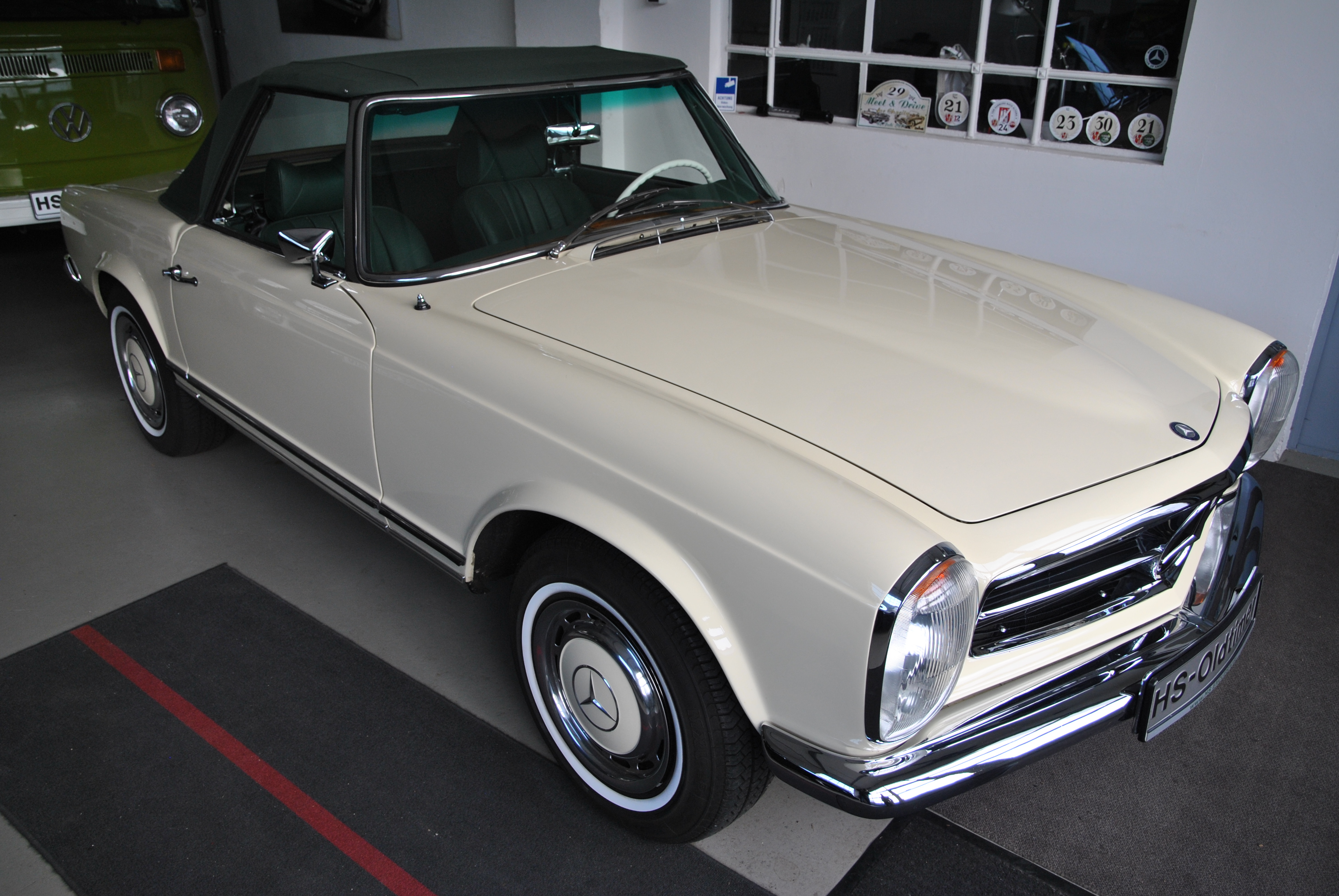 Diese Pagode ist mit viel Liebe und Aufwand restauriert worden. Der Tacho ist bei der Restaurierung umgerüstet und auf null gestellt worden. Die Farbkombination ist sehr selten und besonders edel. Leder, Teppiche und Dach in Dunkelgrün (Von Fa. Weinhold) passen hervorragend zu der Farbe Hellelfenbein. Selten so eine schöne Kombination gesehen. Leider ist es auf den Fotos nicht so gut einzufangen wie im Original. Der 280 SL ist rundum top und spricht für sich. Ein Hardtop kann auf Wunsch mitgeliefert werden. Reinsetzen, losfahren und den nächsten Sommer genießen. Wer ein besonders schönes Auto sucht sollte sich diesen SL auf jeden Fall anschauen, es lohnt sich! Wir freuen uns auf Ihren Anruf und Besuch. Weitere Infos und schöne Oldtimer finden Sie auf unserer Homepage. Angebot freibleibend. Für Rückfragen stehe ich Ihnen gerne zur Verfügung. Mit freundlichenGrüßen Wilhelm Steffen HSExclusiv GmbHGrandweg 6622529 Hamburg +49 40 56060525 +49 178 368 1111 w.steffen@hsexclusiv.dewww. hs-oldtimer.de