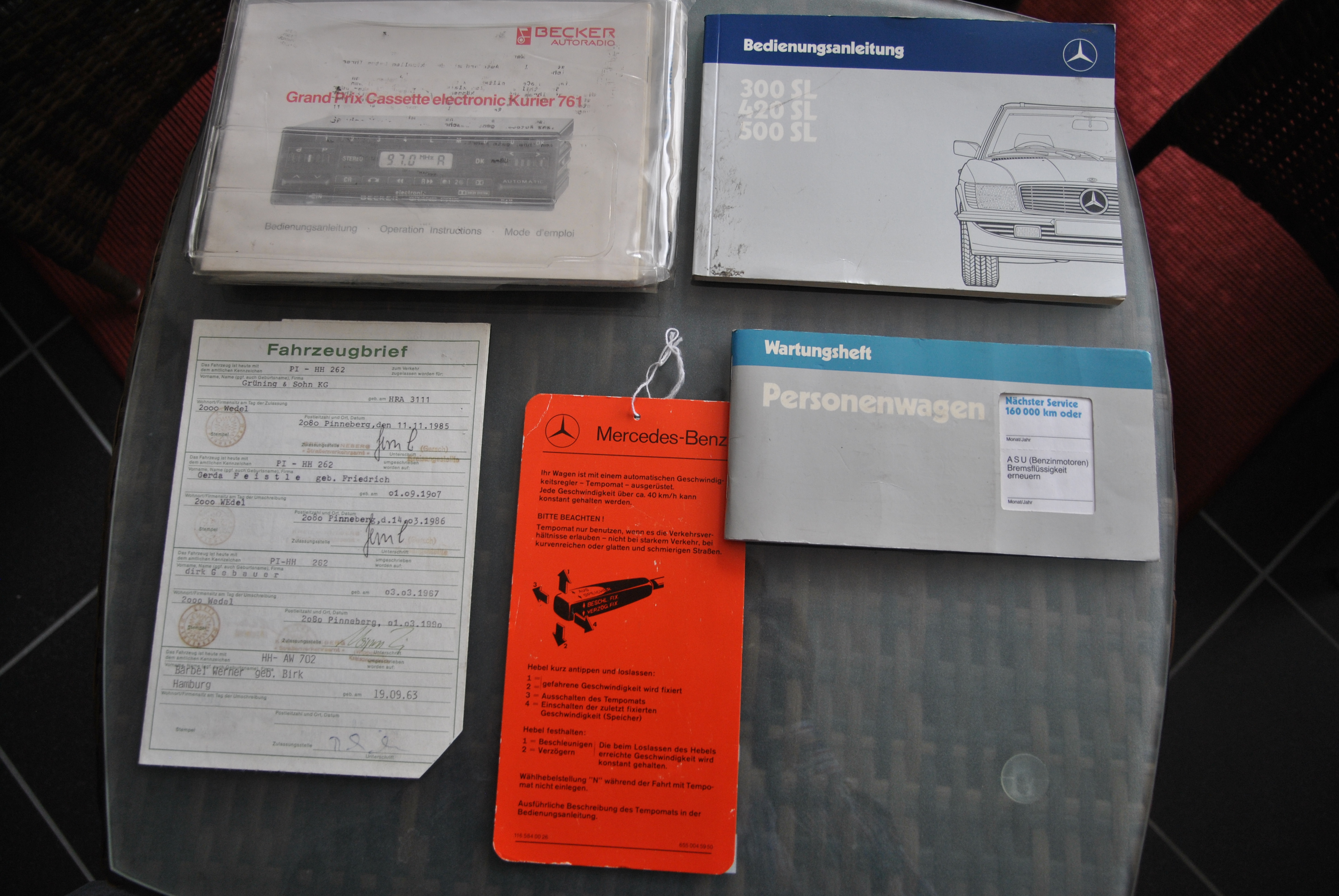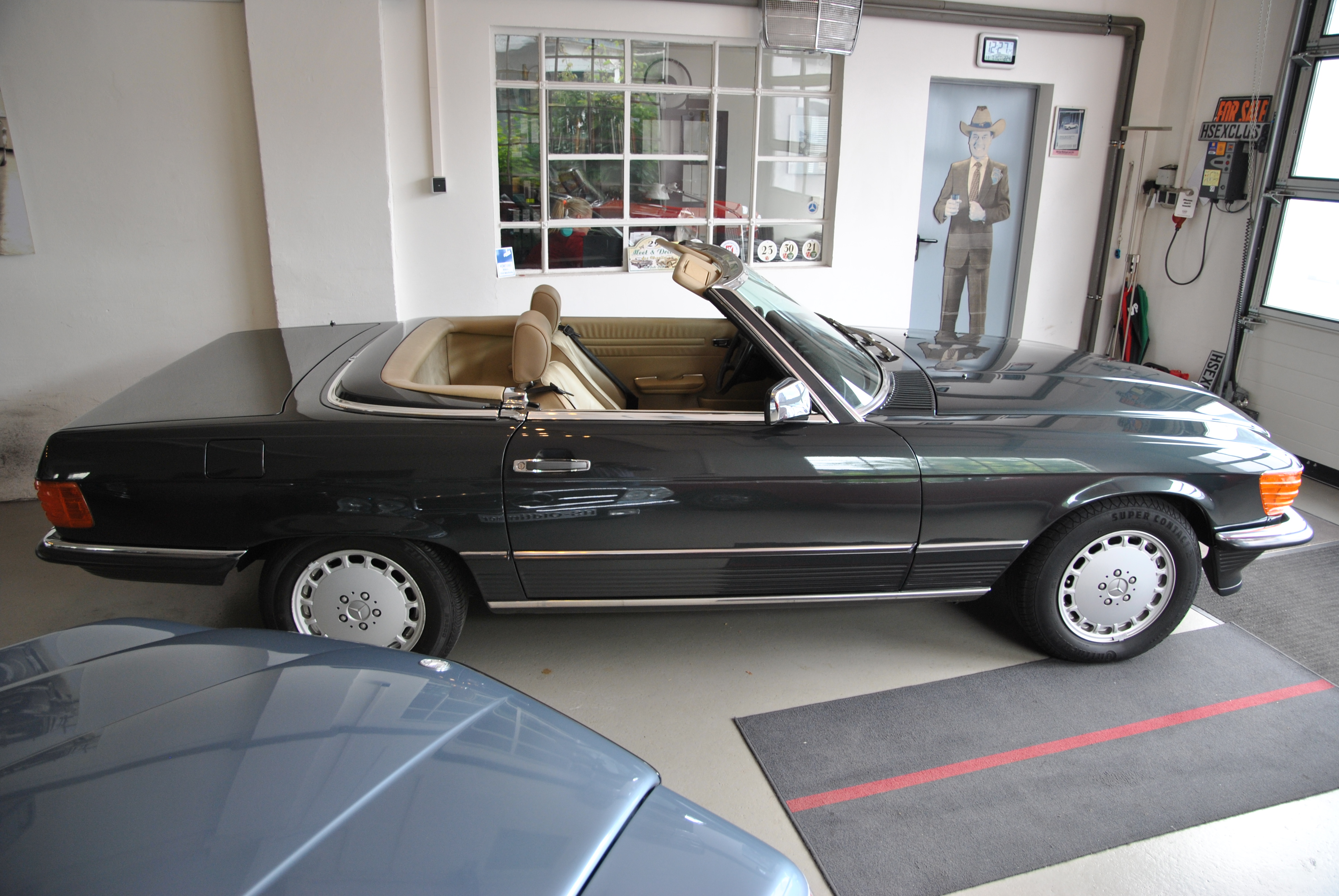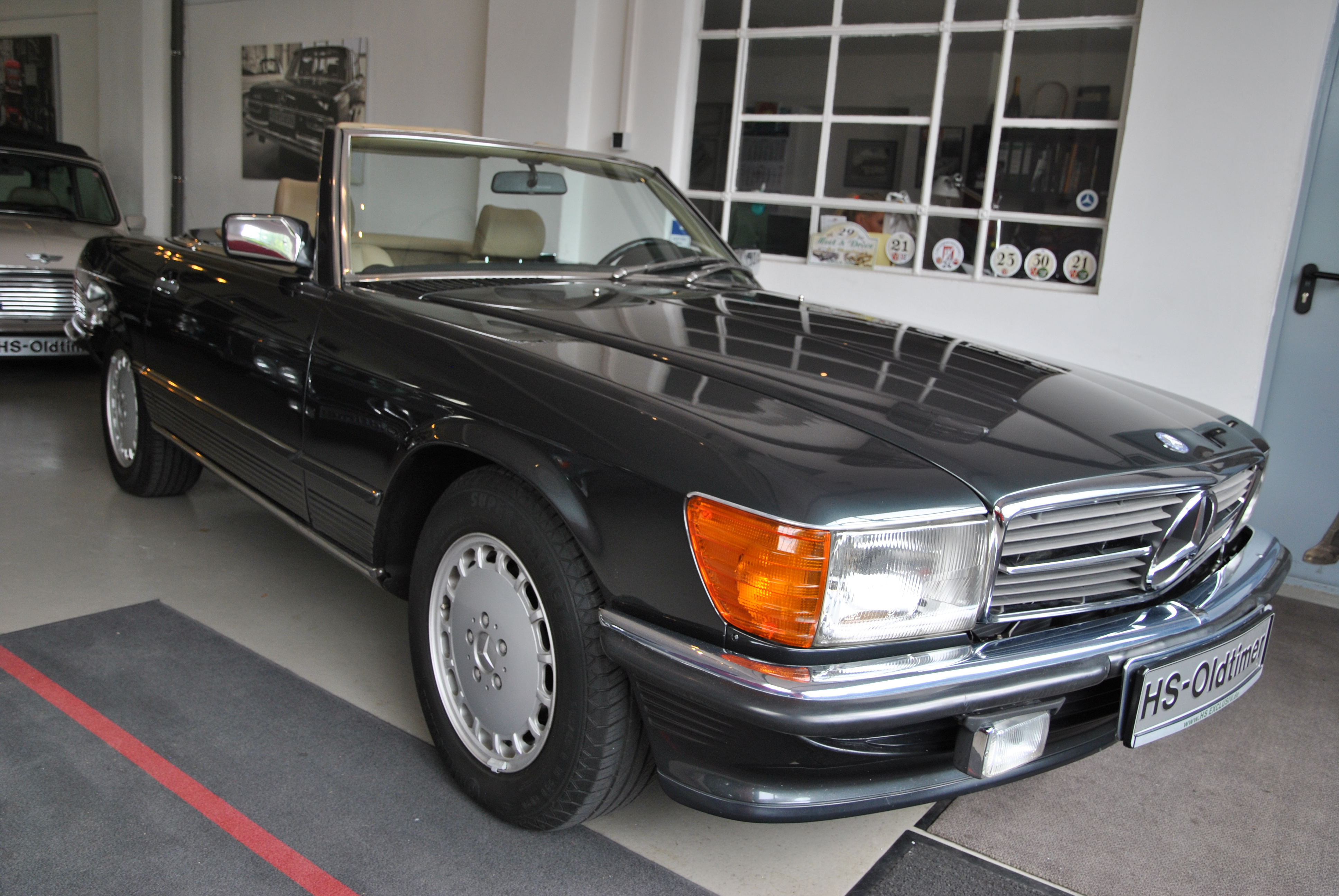 Sehr gut gepflegter 300 SL aus Deutschland. Der erste Kfz-Brief ist noch vorhanden. Die Bordmappe mit Bedienungsanleitung, Scheckheft etc. ist auch dabei. Der SL wurde von Mercedes in Wedel bei Hamburg ausgeliefert und gewartet. Das Scheckheft deckt sich mit den Einträgen im ersten Brief. Somit haben wir eine schöne, nachvollziehbare Historie. Der 107er fährt sich phantastisch, der Motor läuft seidenweich und das Getriebe schaltes sanft hoch. Die Lenkung hat kein Spiel. Die Spaltmaße machen einen sehr guten Eindruck. Wer einen richtig schönen 300 SL sucht sollte sich diesen auf jeden Fall anschauen, es lohnt sich wie immer bei uns! Wir freuen uns auf Ihren Anruf und Besuch. Angebot freibleibend. Weitere Infos und schöne Oldtimer finden Sie auf unserer Homepage.