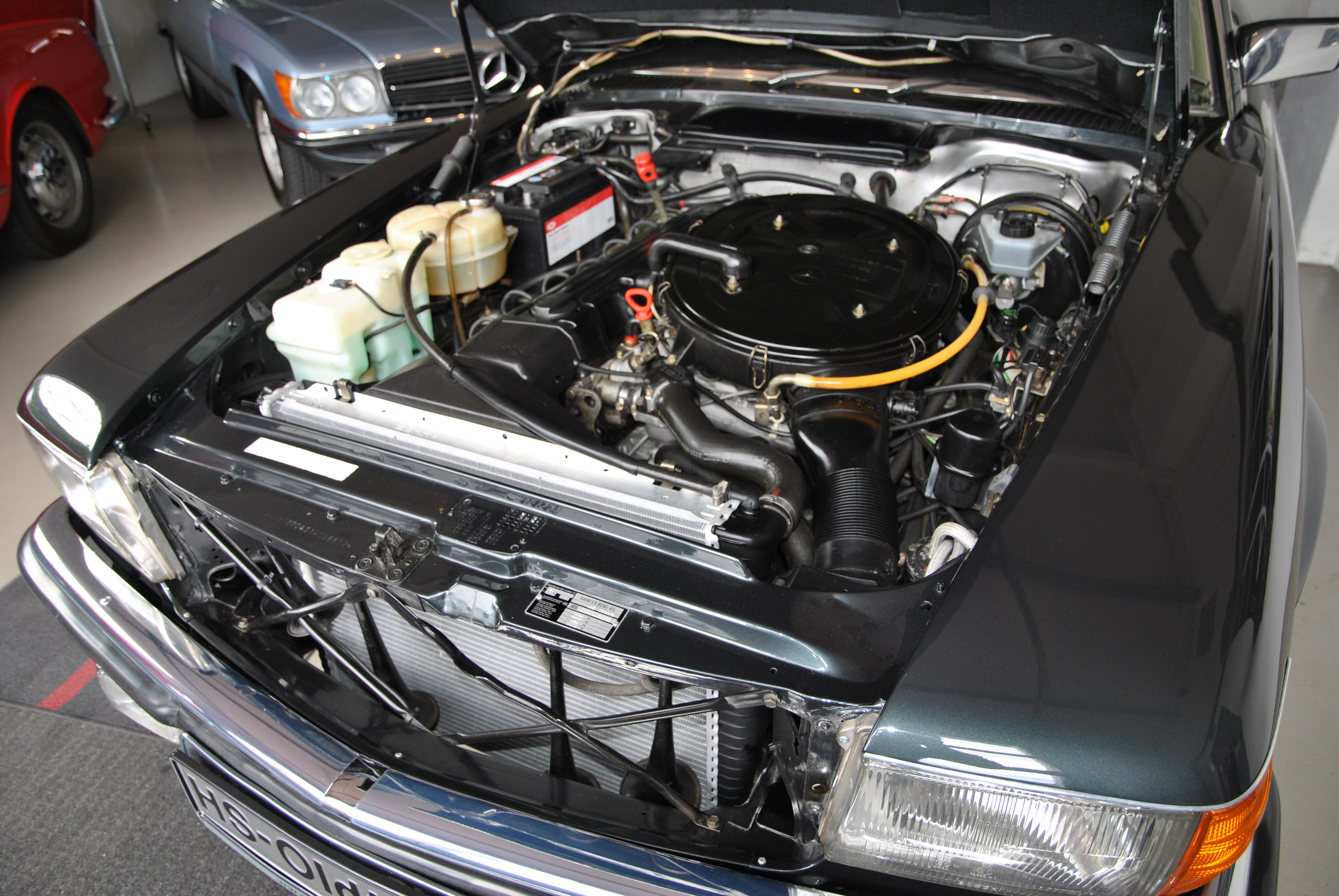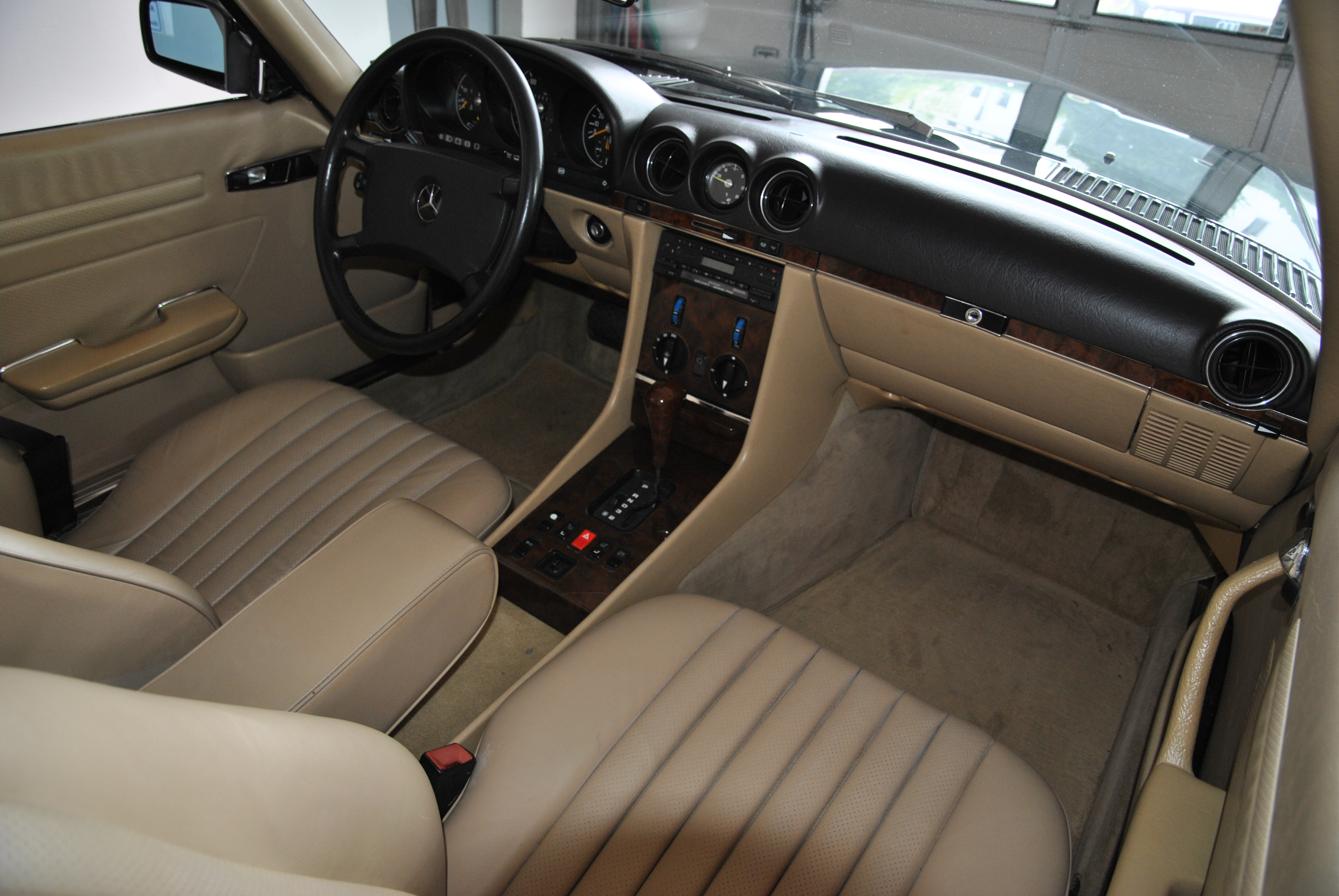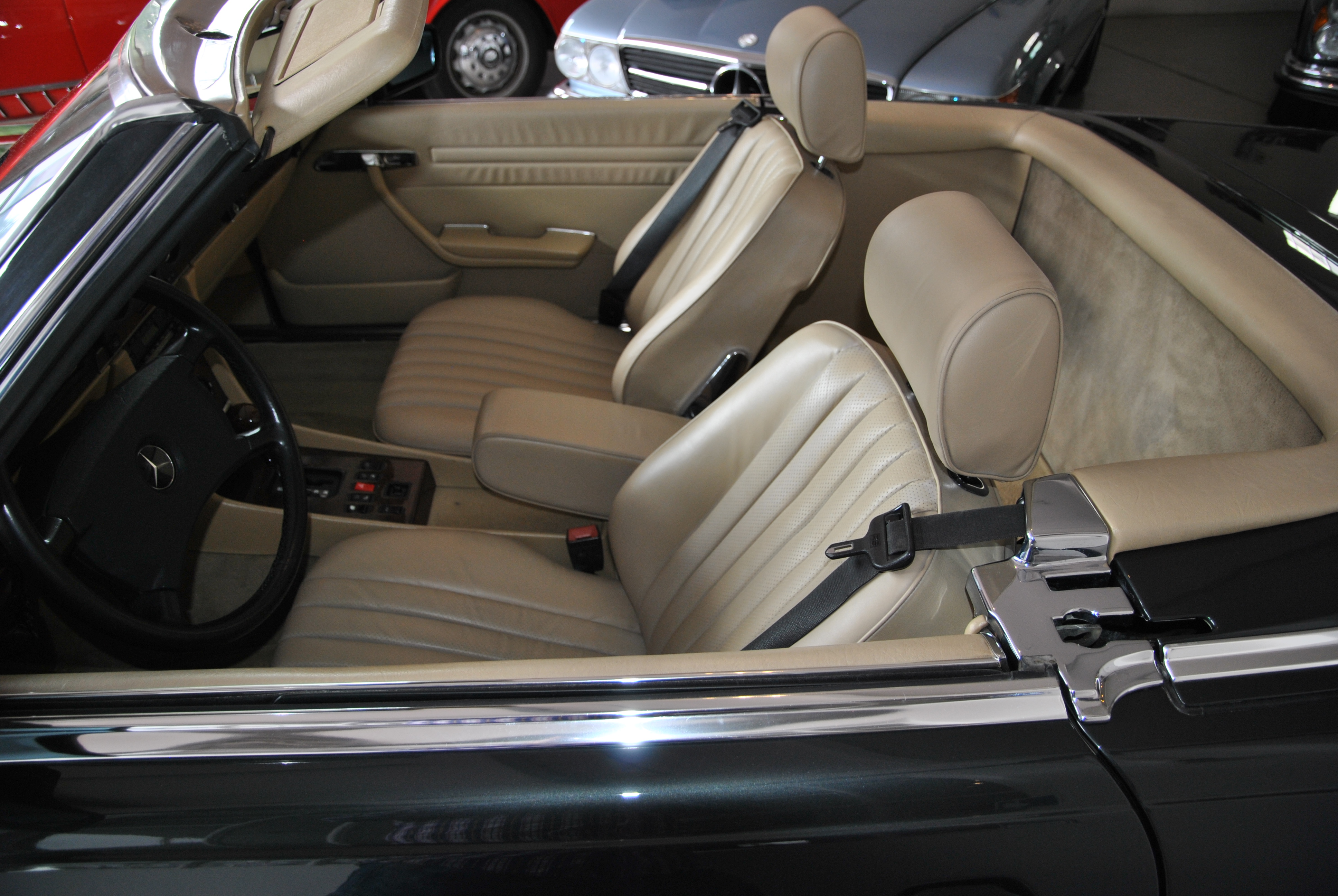 Sehr gut gepflegter 300 SL aus Deutschland. Der erste Kfz-Brief ist noch vorhanden. Die Bordmappe mit Bedienungsanleitung, Scheckheft etc. ist auch dabei. Der SL wurde von Mercedes in Wedel bei Hamburg ausgeliefert und gewartet. Das Scheckheft deckt sich mit den Einträgen im ersten Brief. Somit haben wir eine schöne, nachvollziehbare Historie. Der 107er fährt sich phantastisch, der Motor läuft seidenweich und das Getriebe schaltes sanft hoch. Die Lenkung hat kein Spiel. Die Spaltmaße machen einen sehr guten Eindruck. Wer einen richtig schönen 300 SL sucht sollte sich diesen auf jeden Fall anschauen, es lohnt sich wie immer bei uns! Wir freuen uns auf Ihren Anruf und Besuch. Angebot freibleibend. Weitere Infos und schöne Oldtimer finden Sie auf unserer Homepage.