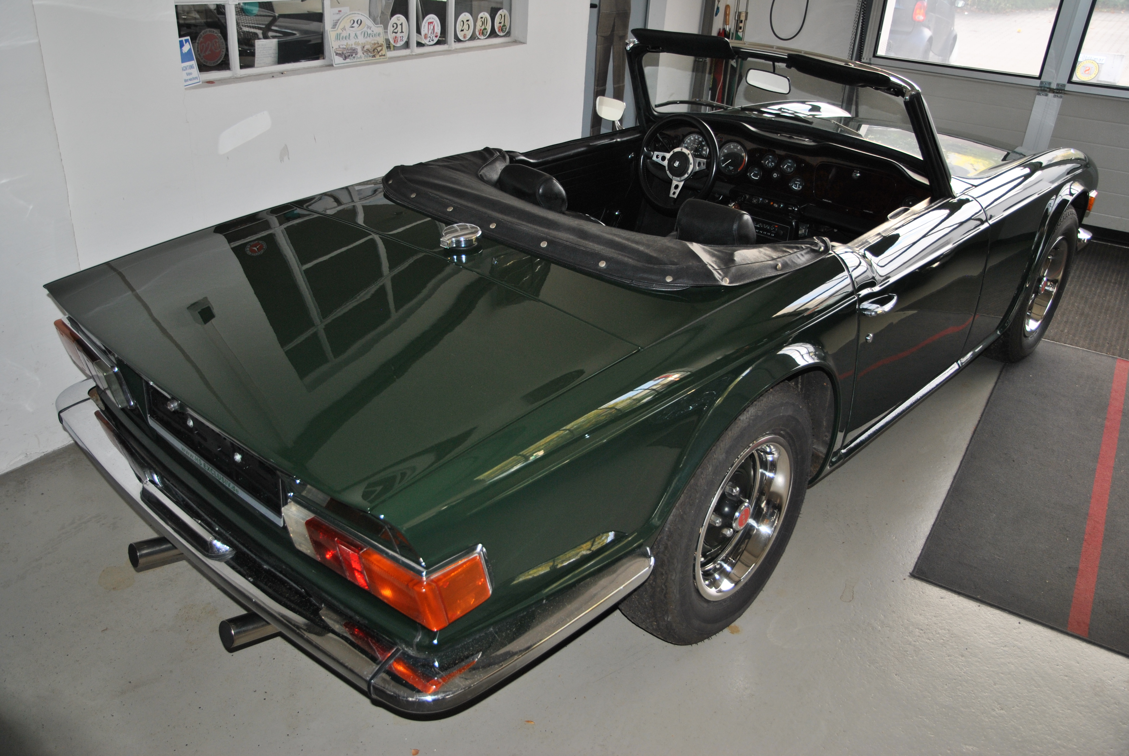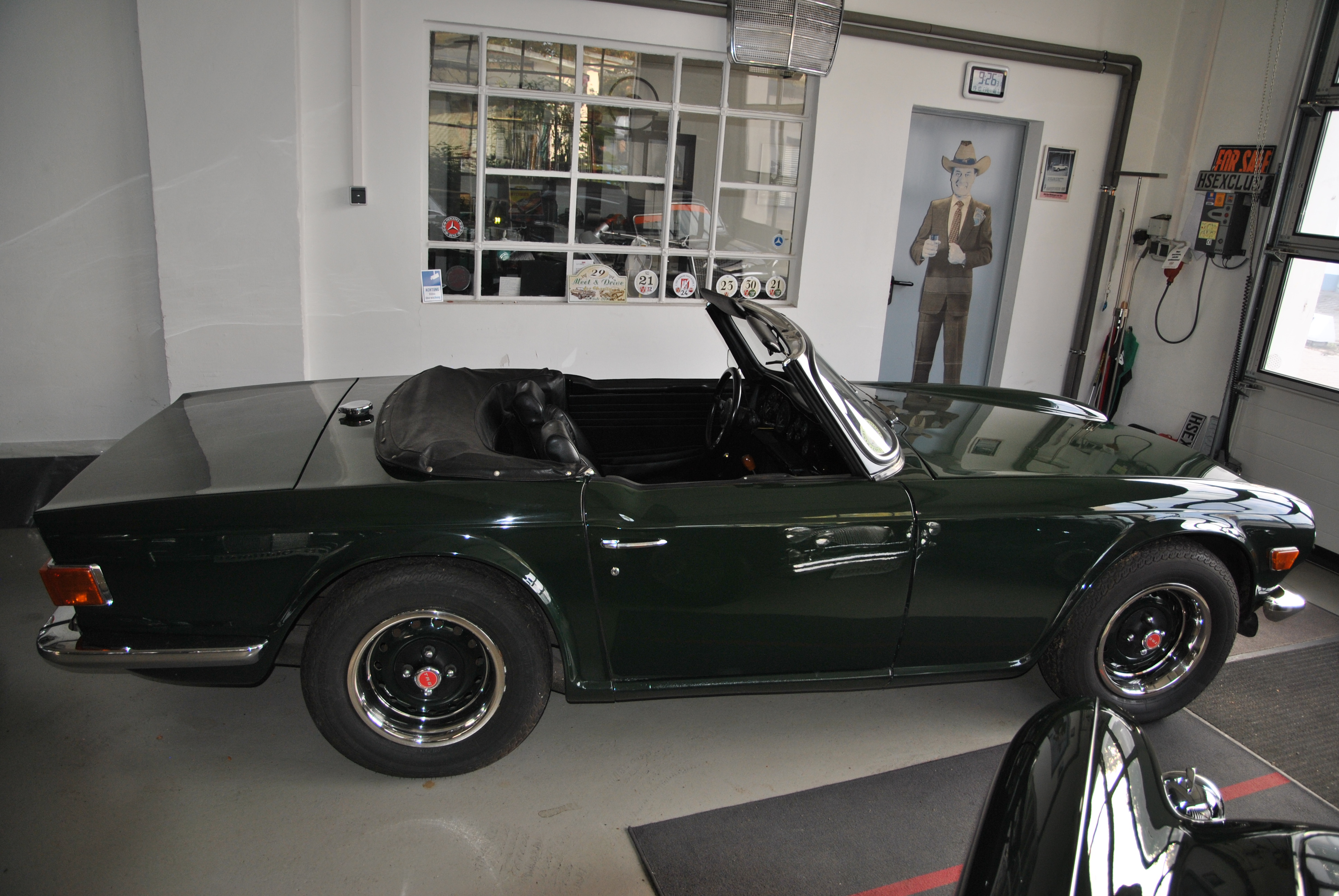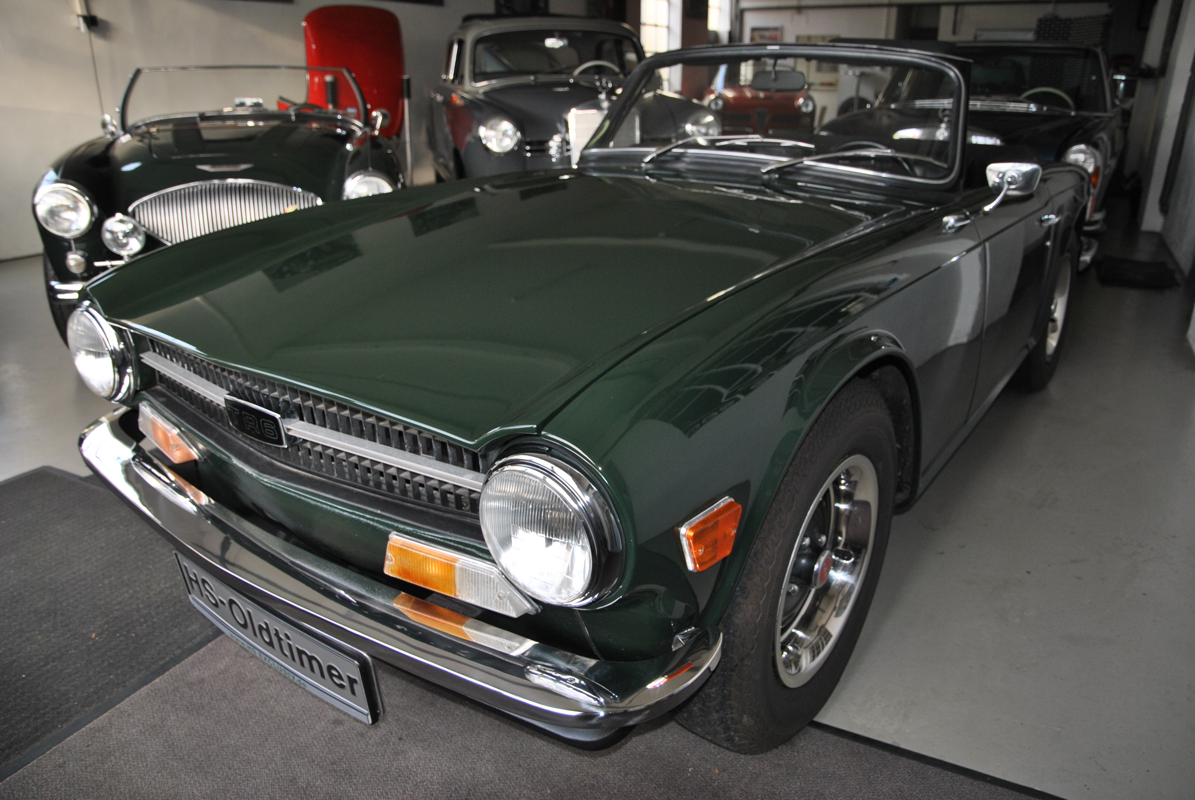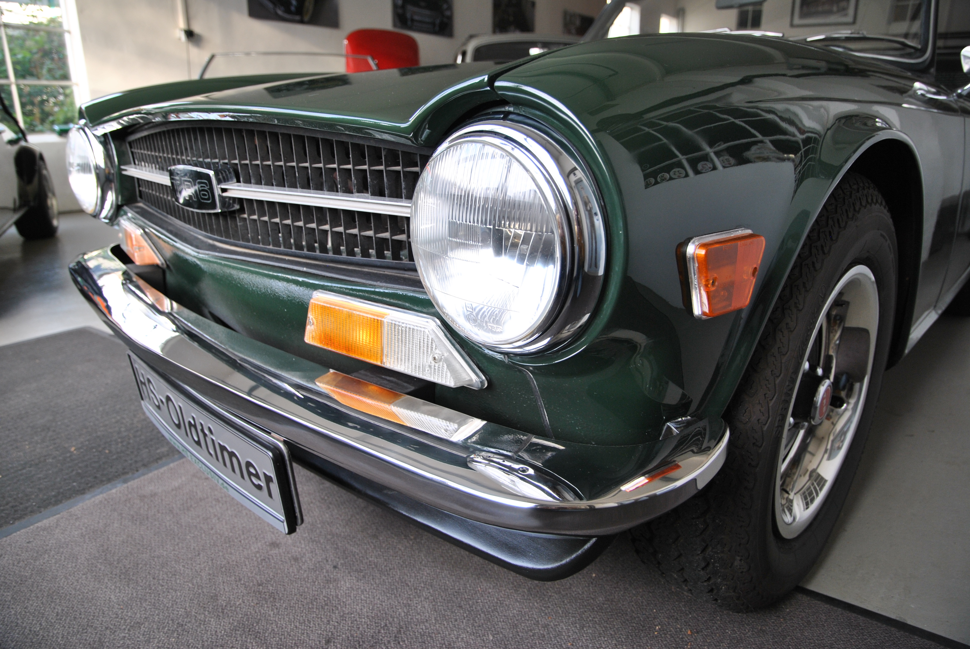 Sehr gut gepflegter TR6 mit Erstausliefrung in Deutschland. Die H-Abnahme ist vorhanden seit 2012. Der Triumph fährt sich phantastisch. Der Motor läuft kraftvoll und die Schaltung ist exakt. Sehr schönes Fahrzeug mit wenig Gebrauchsspuren. Die Blechsubstanz macht einen tollen Eindruck, Rost haben wir nicht gefunden. Das Fahrzeug kann sofort in Betrieb genommen werden, Standschäden sollte es keine geben. Die hintere Stoßstange kommt noch neu. Angebot ist freibleibend. Anschauen lohnt sich auf jeden Fall. Wir freuen uns auf Ihren Anruf und Besuch. Weitere schöne Oldtimer finden Sie auf unserer Homepage.