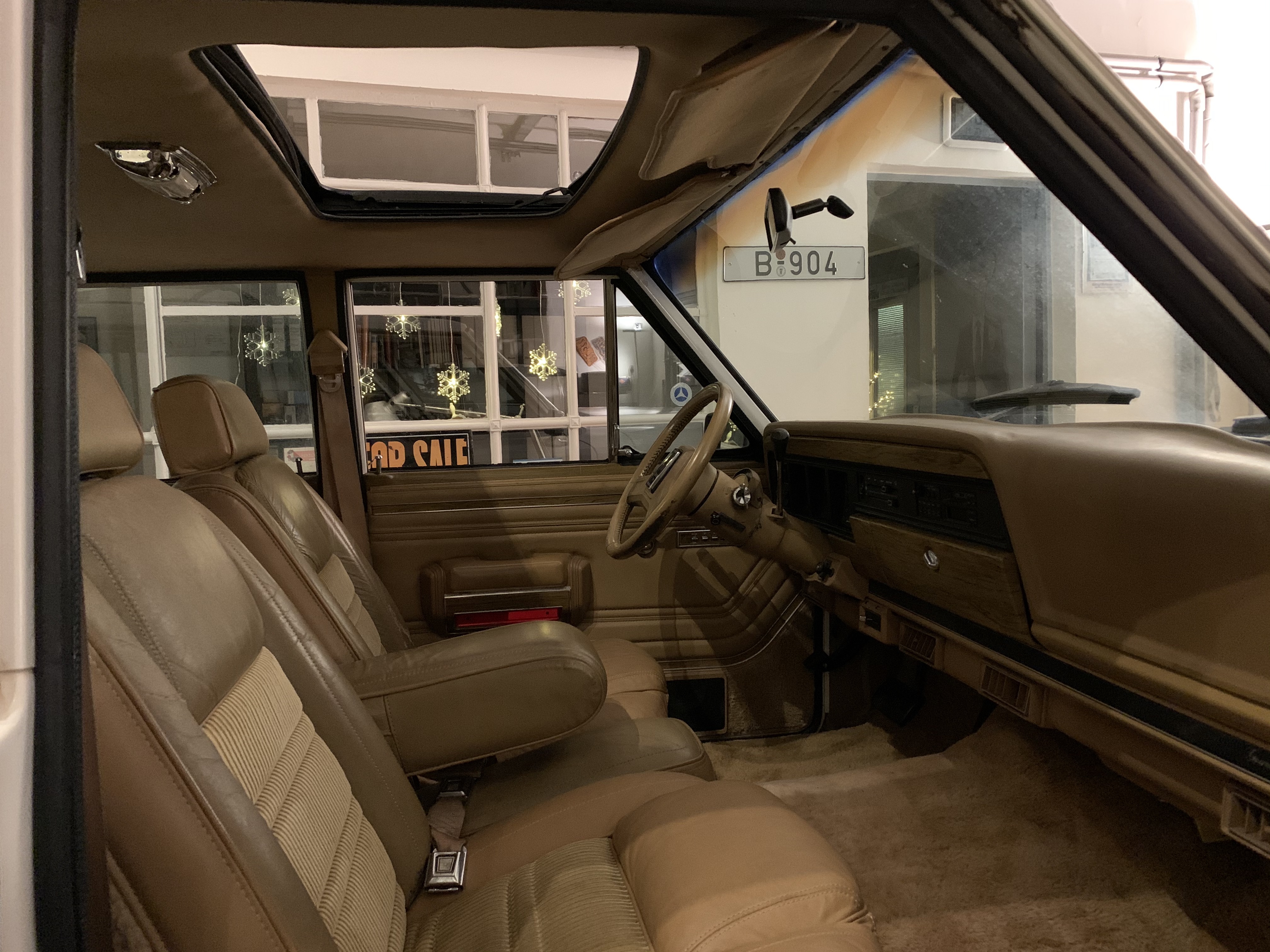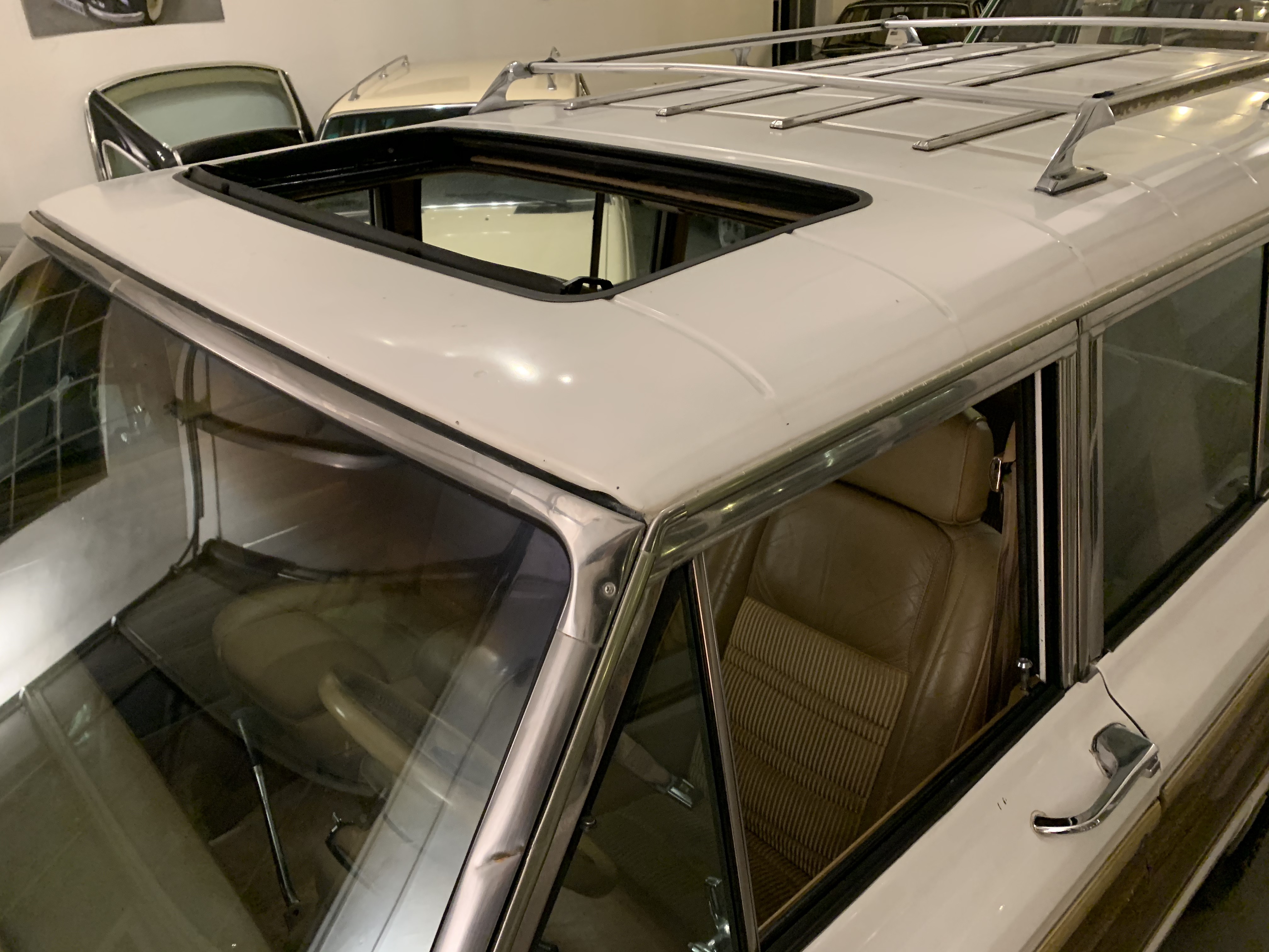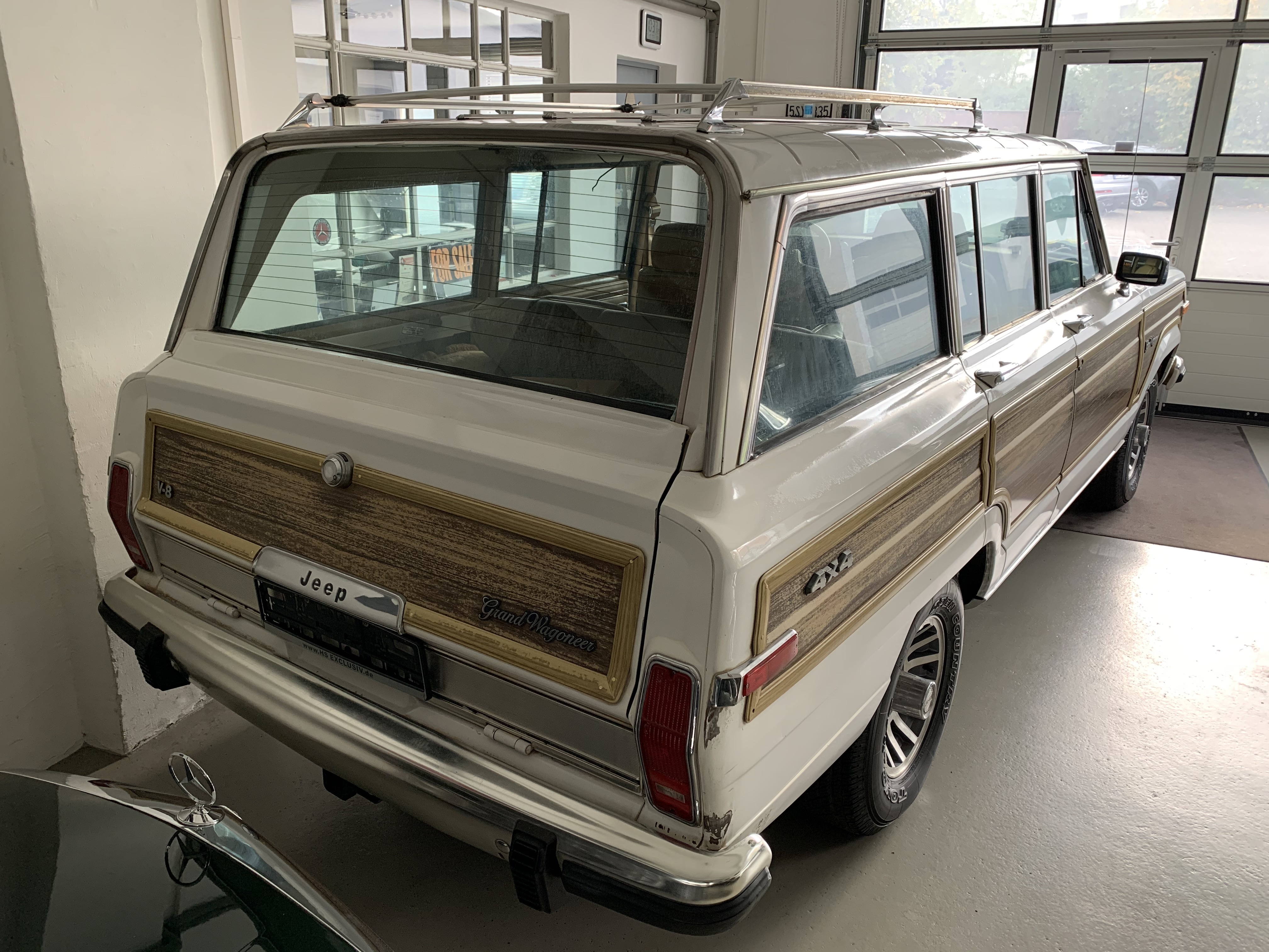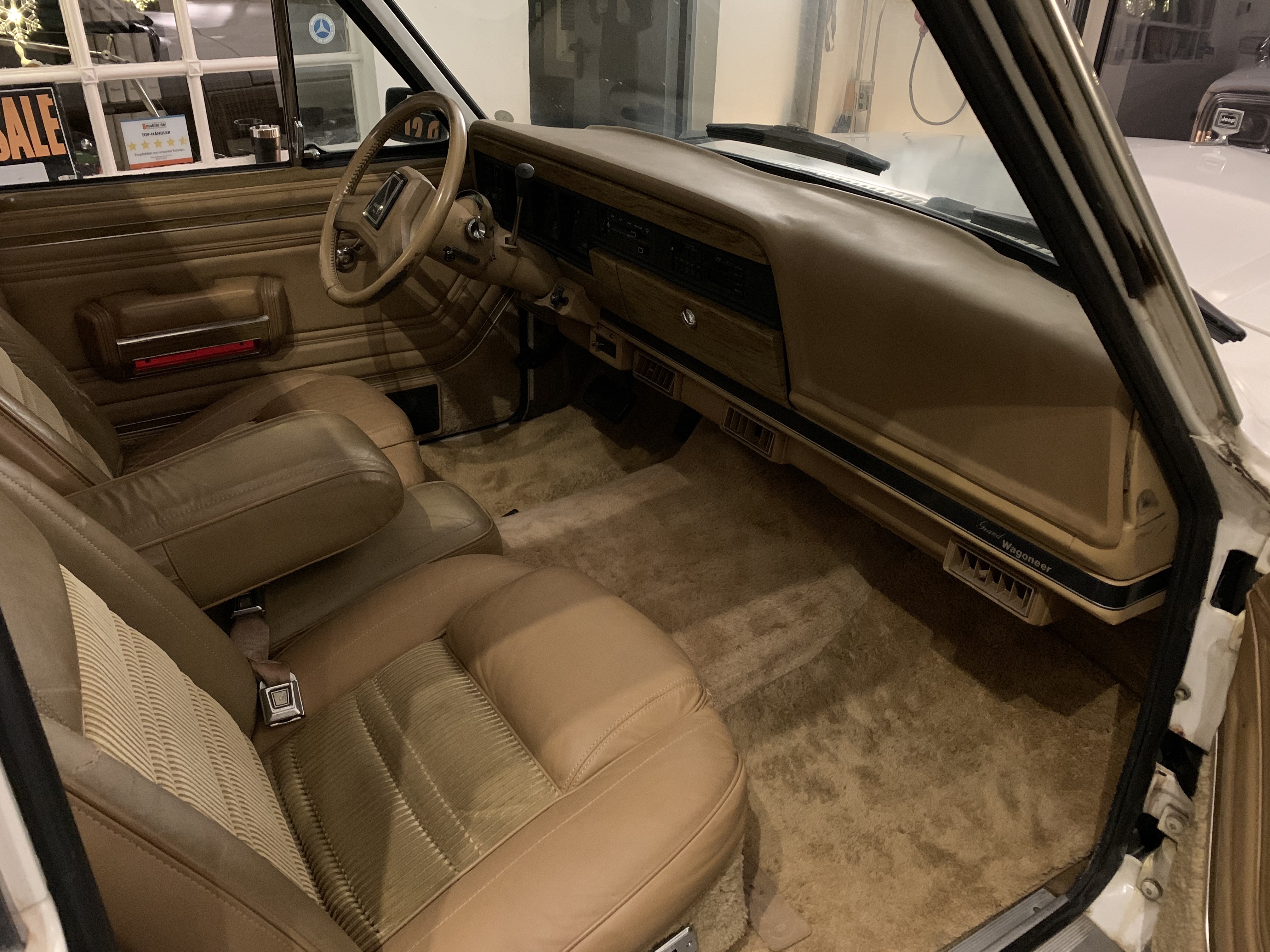 Jeep Grand Wagoneer mit sehr seltenem Schiebedach. Car Fax vorhanden. Der Unterboden ist unglaublich gut, wir haben keinen Rost gefunden. Alles scheint noch original zu sein. Auto kommt aus Californien und wurde von uns sofort Konserviert. Der Jeep ist im Erstlack, allerdings mit viel Patina. Hier stellt sich die Frage neu Lackieren oder so lassen!? Erstlack ist Erstlack!!! Würden wir gerne mit dem neuen Eigentümer besprechen und dann entscheiden. Der Innenraum ist sehr ordentlich. TÜV und H-Abnahme sind schon gemacht. Große Inspektion, neue Reifen, Auspufftopf, Schläuche etc. alles schon erledigt. Fahrzeug fährt sich sehr schön. Wer die beste Blechsubstanz und dazu noch ein seltenes Schiebedach sucht, sollte sich diesen einmaligen Wagoneer auf jeden Fall einmal anschauen, es lohnt sich wie immer bei uns. Wir freuen uns auf Ihren Anruf und Besuch. Weitere schöne Oldtimer finden Sie auf unserer eigenen Homepage: www.hs-oldtimer.de