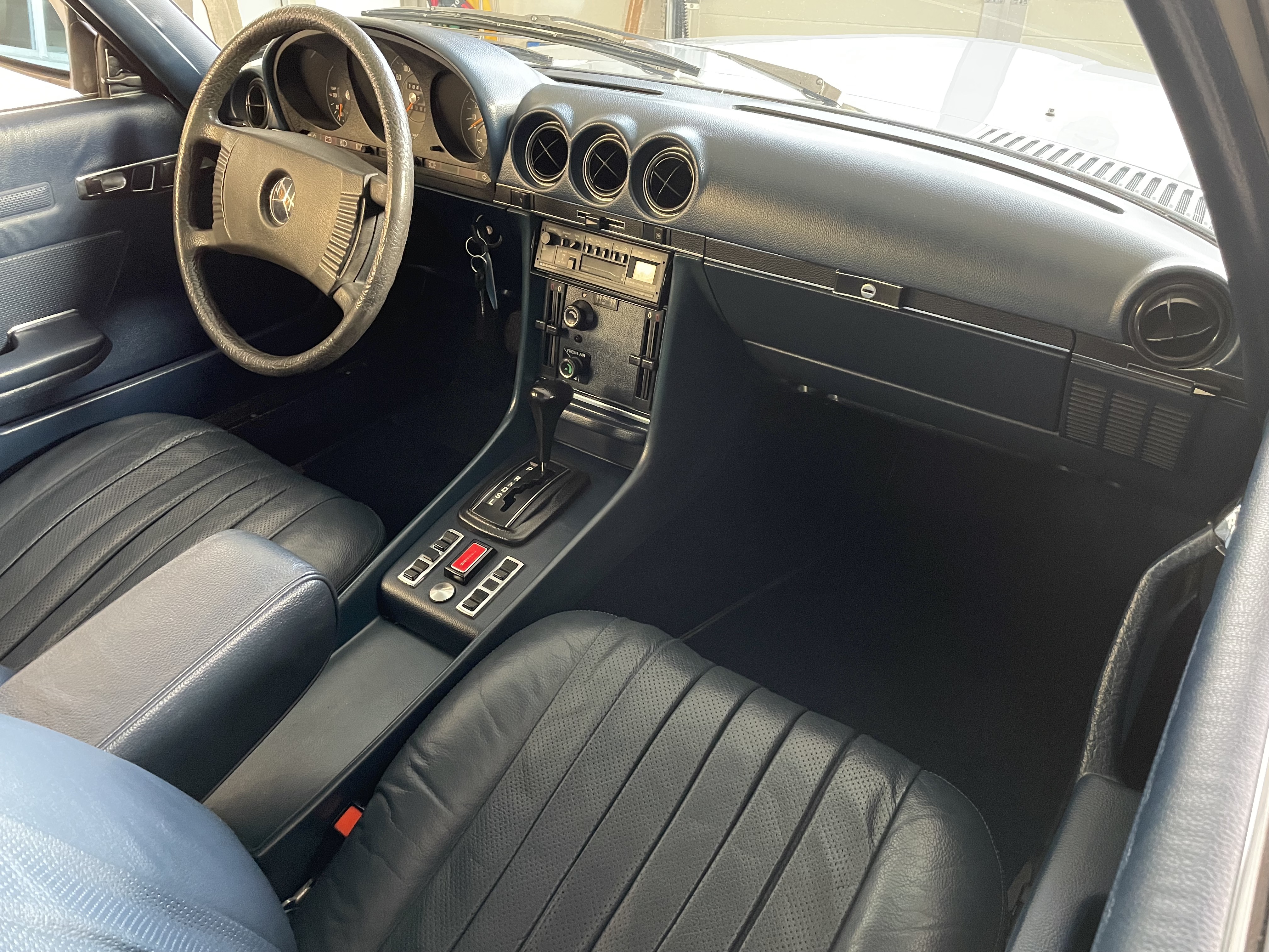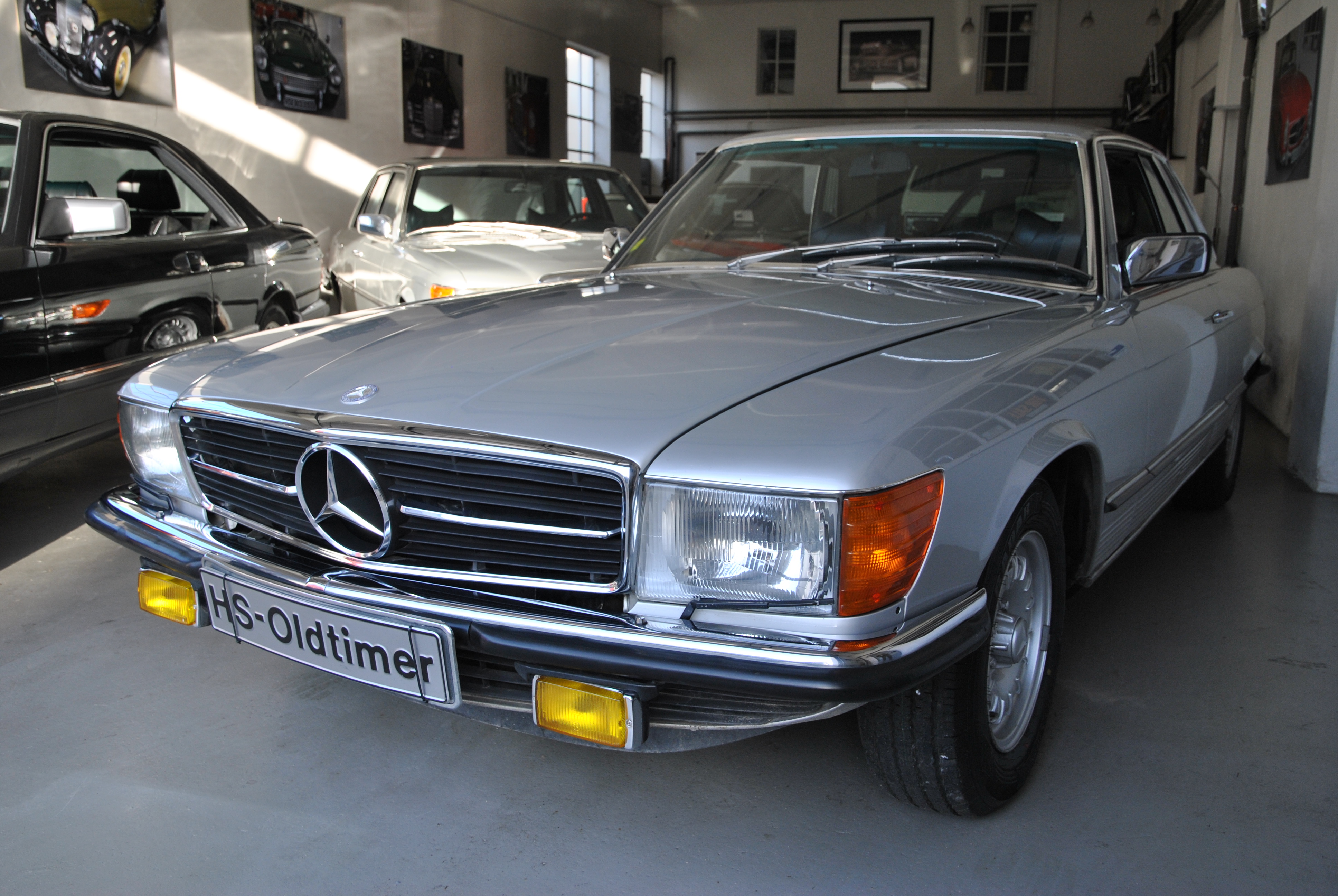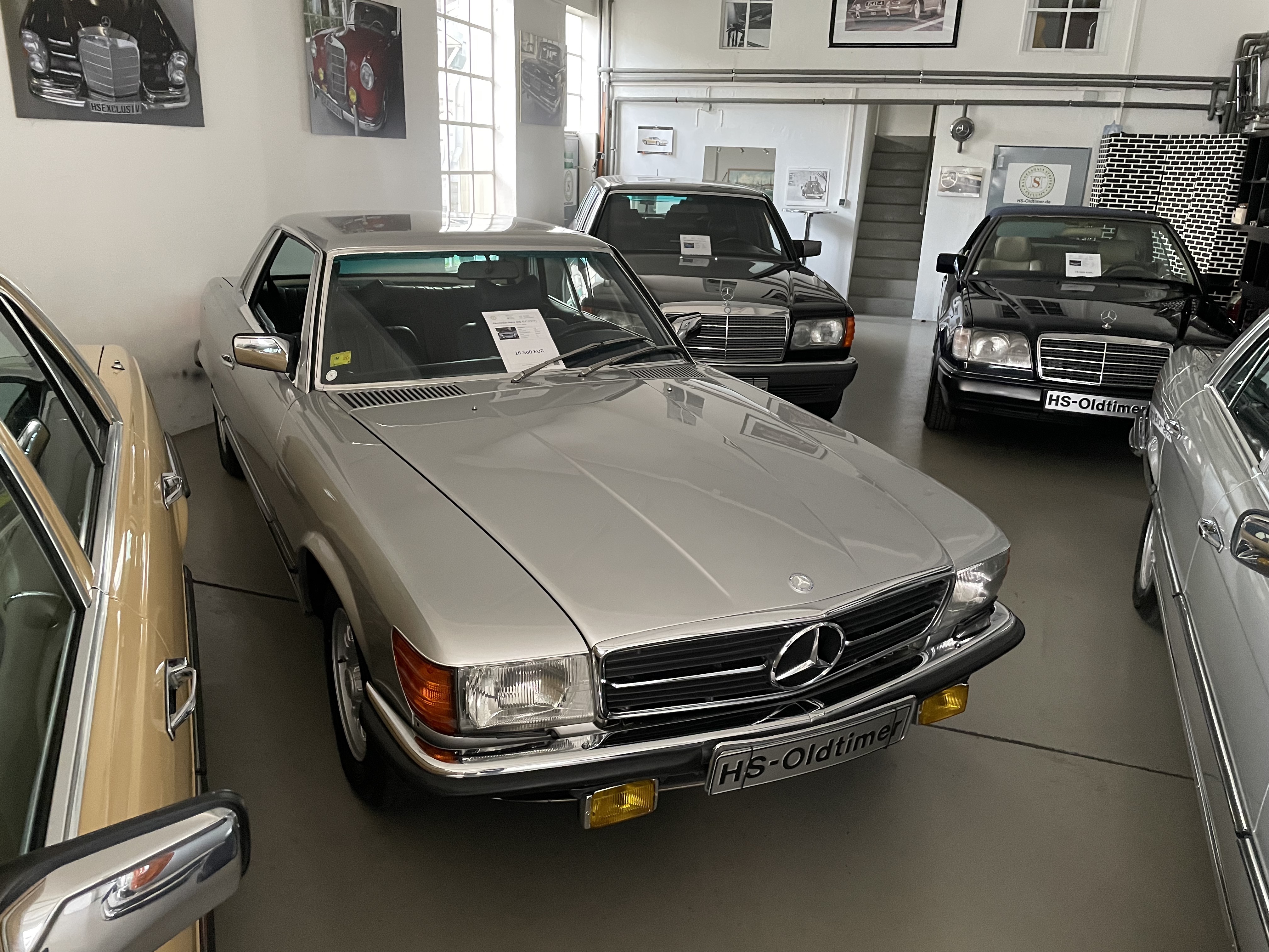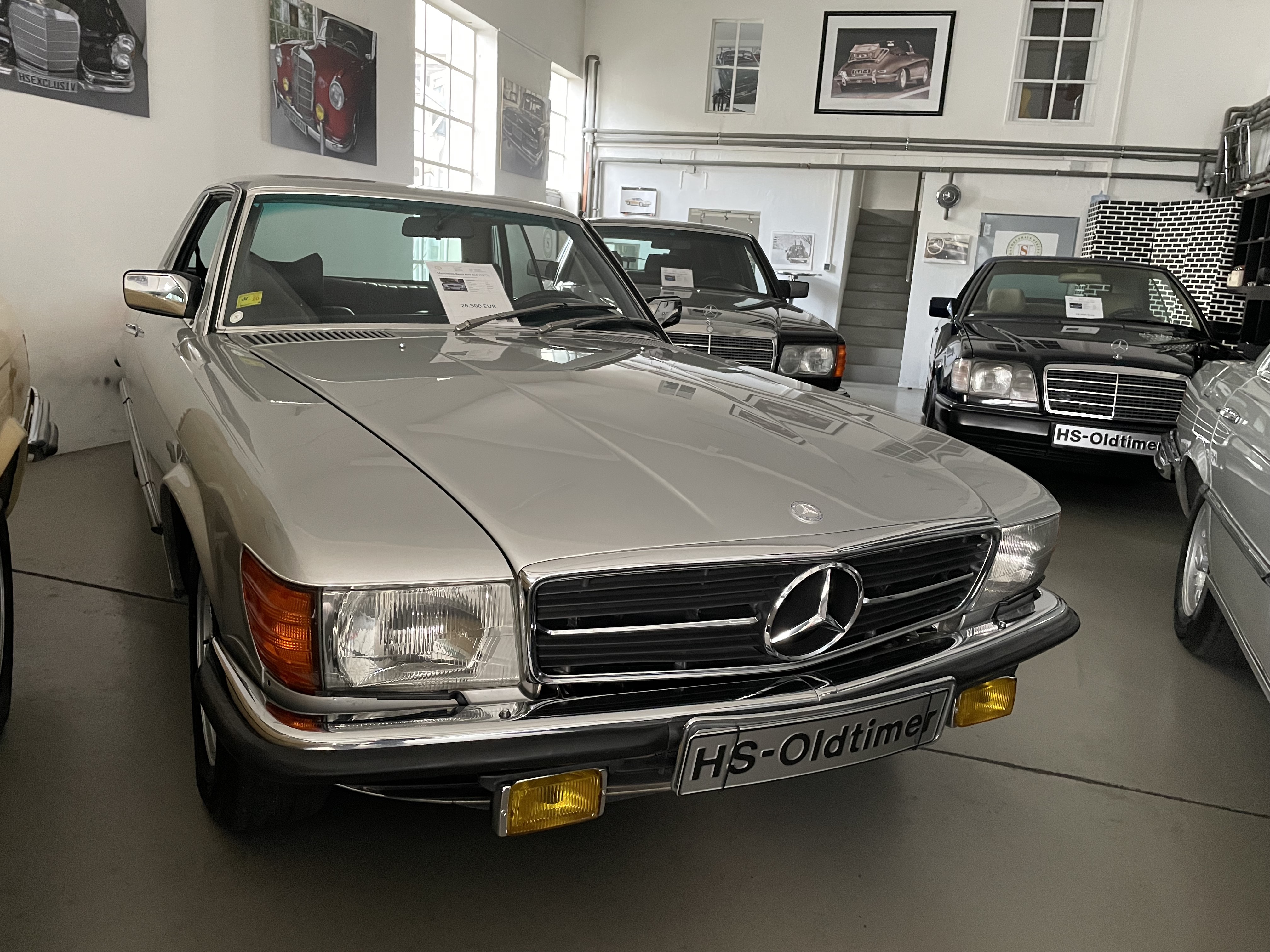 Gepflegter 450 SLC W107 aus Barcelona. Innenausstattung ist noch die Erste und bis auf kleinigkeiten top. Lack und Chrometeile sind gut. Unterboden ist noch original und nicht geschönt, trotzdem haben wir keinen Rost gefunden. Kein Salz, wenig Regen. Vollabnahme inkl. TÜV, HU, H und Technik, alles schon gemacht (Rg. 5.900 Euro). Der SLC fährt sich sehr schön, Motor läuft sauber und das Getriebe schalte klasse. Wer einen schöne SLC in beliebter Farbkombination sucht, sollte sich dieses auf jeden Fall einmal anschauen, es lohnt sich wie immer bei uns. Wir freuen uns auf Ihren Anruf und Besuch. Weitere Infos und schöne Oldtimer finden Sie auf unserer eigenen Homepage: www.hs-oldtimer.de