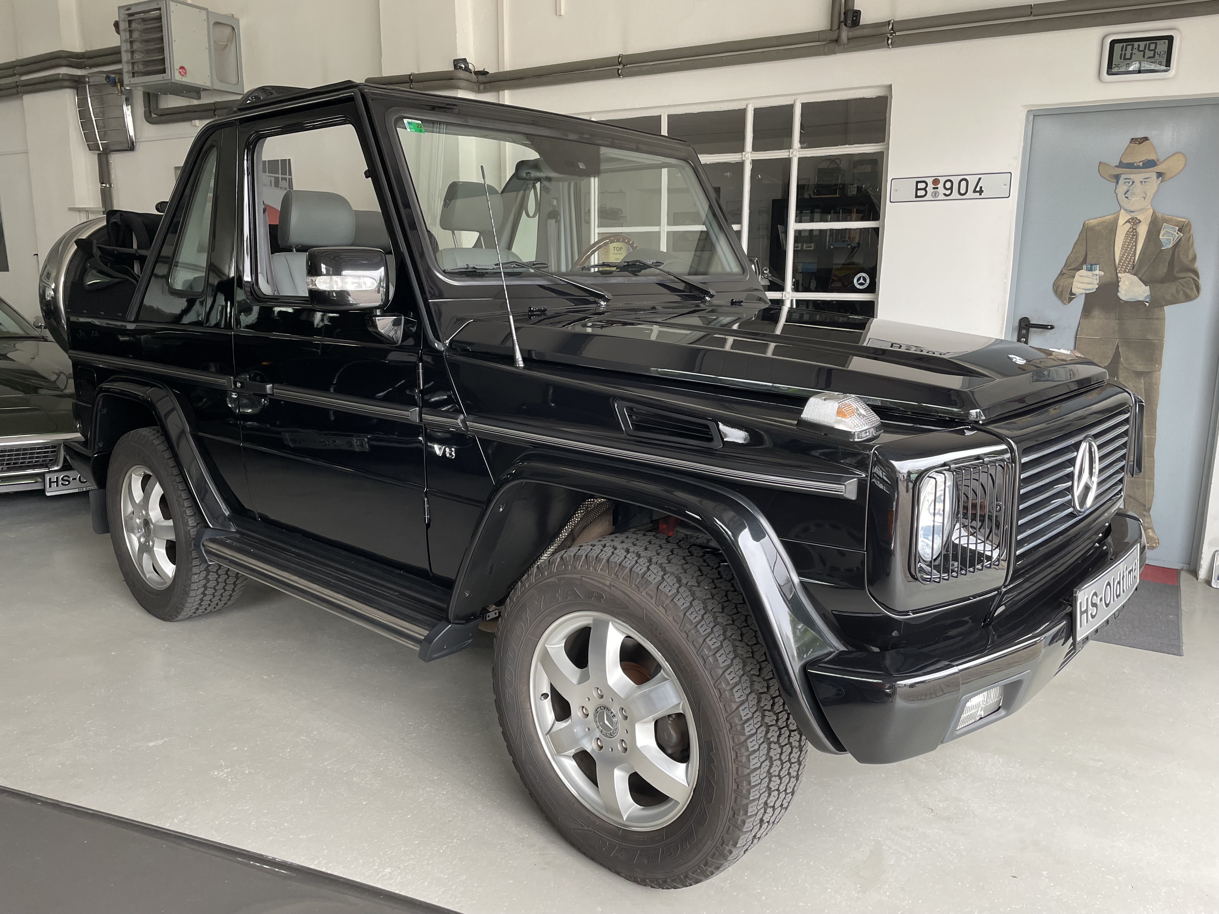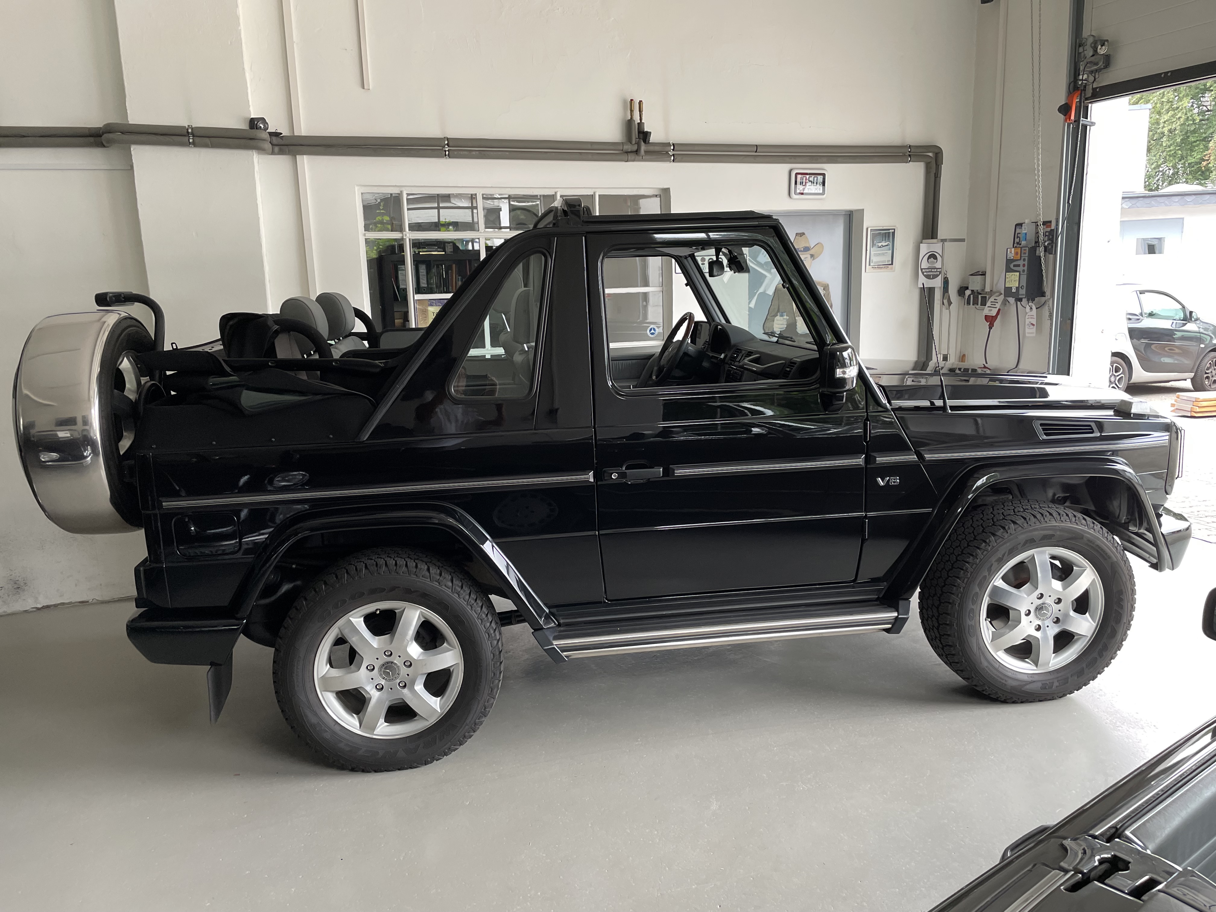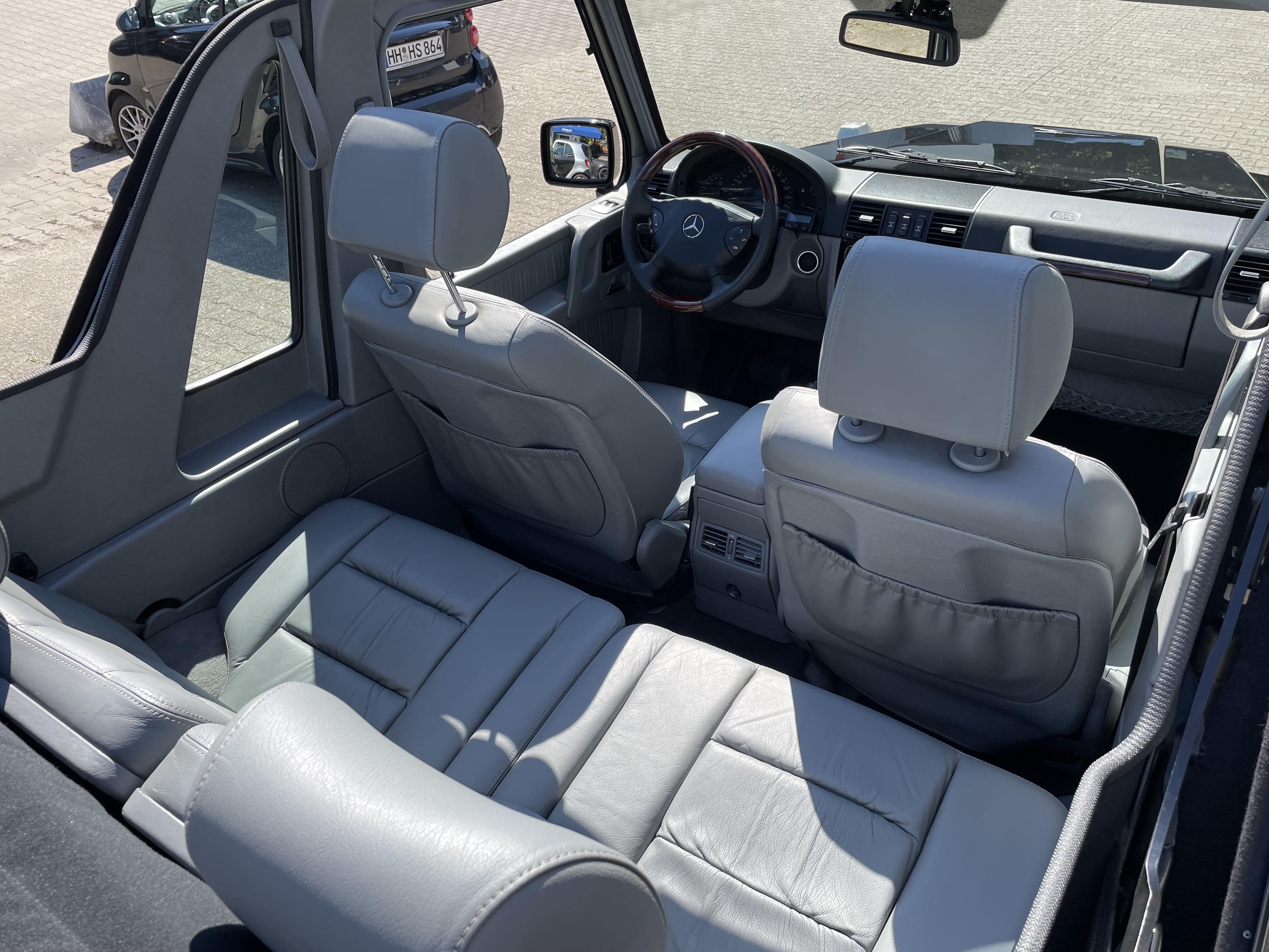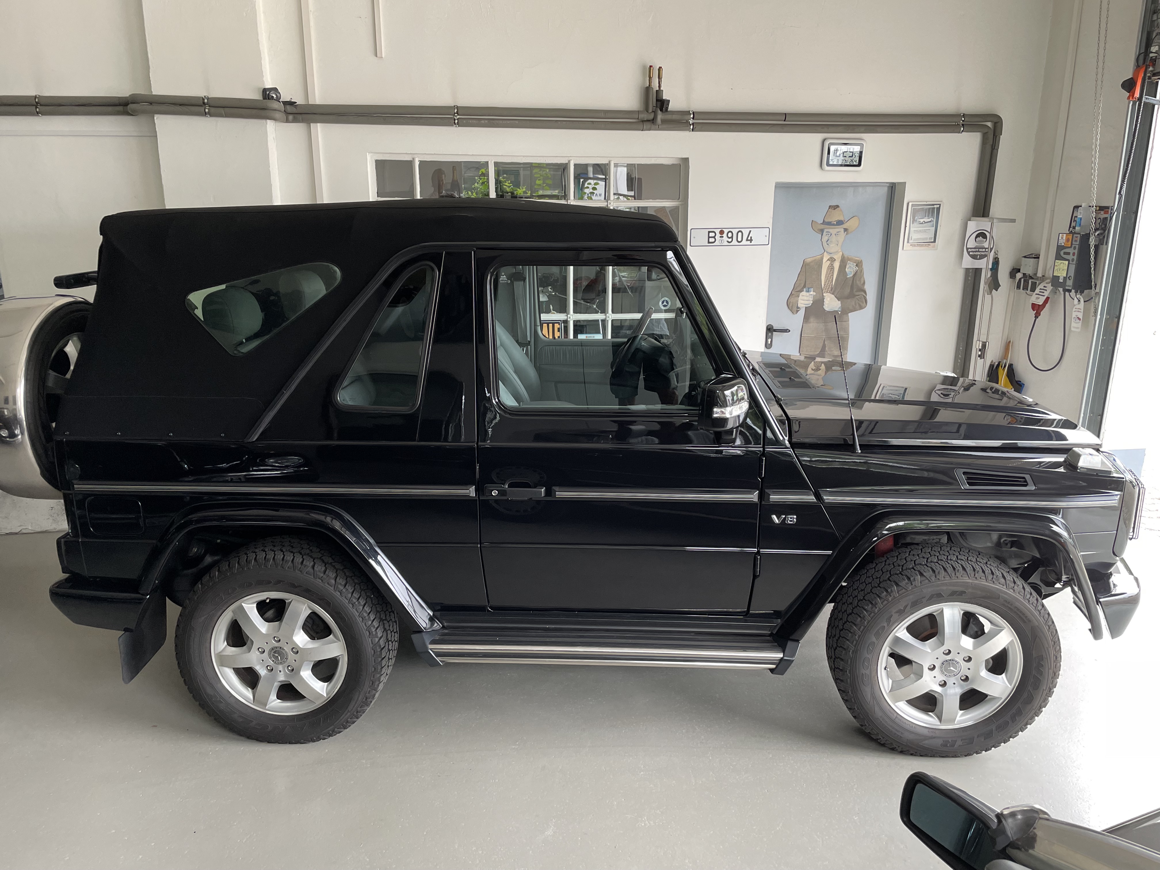 Dieses G 400 Cabriolet kommt aus Spanien ohne Rostprobleme im sehr gepflegten Zustand. Der TÜV ist bereits gemacht, somit kann er problemlos in Deutschland zugelassen werden. Die Kilometer sind anhand des Scheckheftes und zahlreicher Rechnungen (Mercedes Madrid) im Zeitraum von 2007 bis 2019 sehr gut nachvollziehbar. Es sind rund 27.000 Euro in den letzten Jahren investiert worden. Der G fährt sich phantastisch!