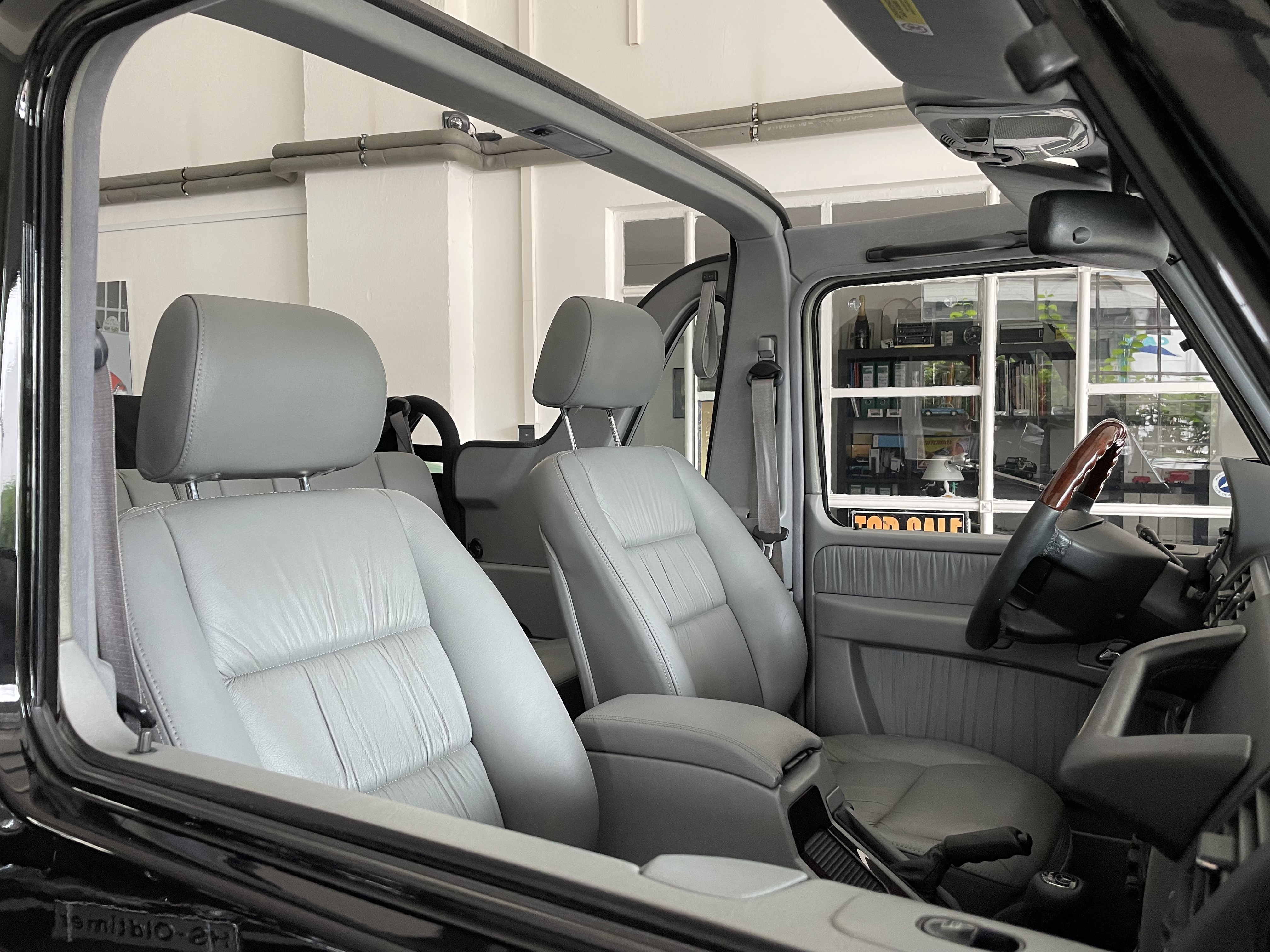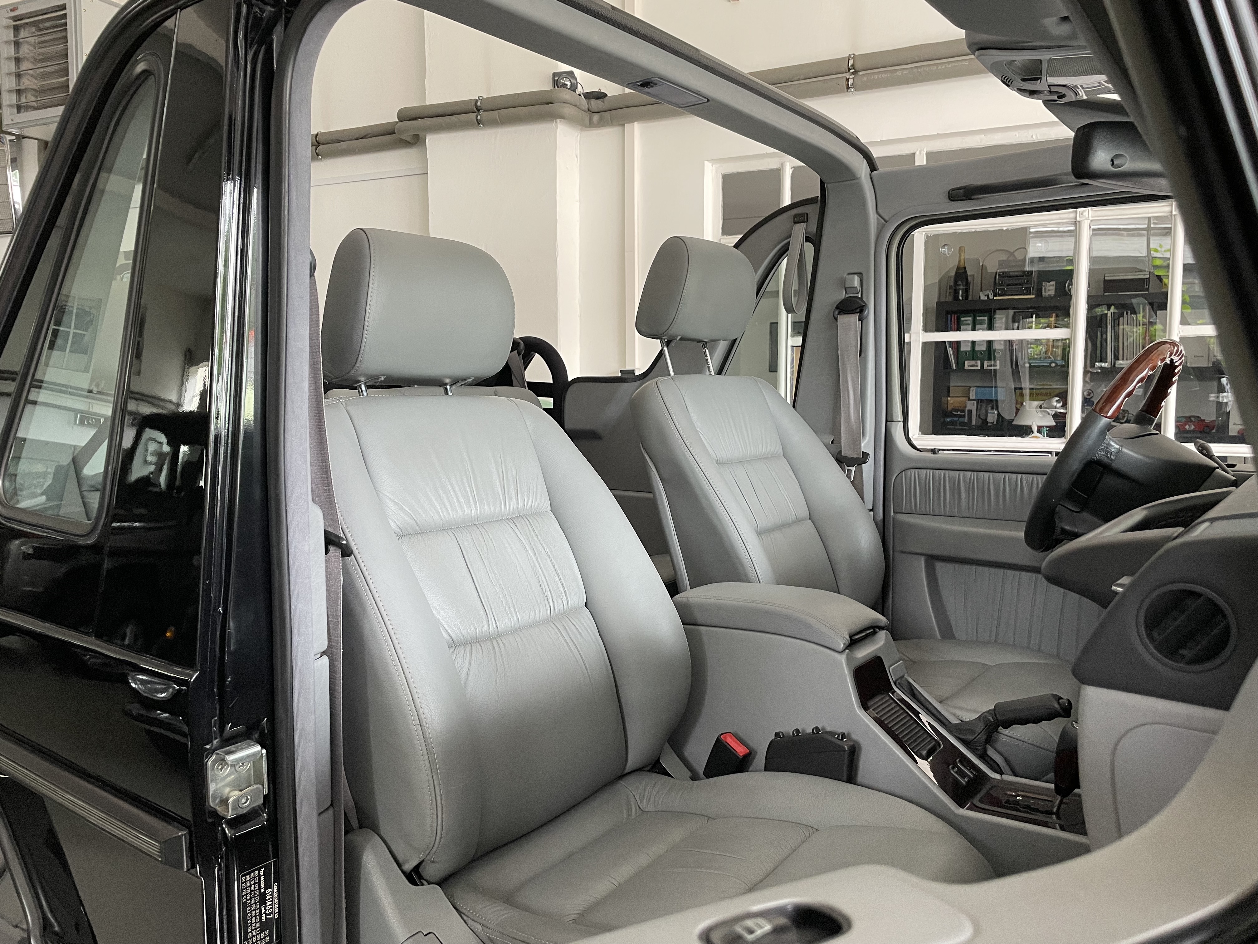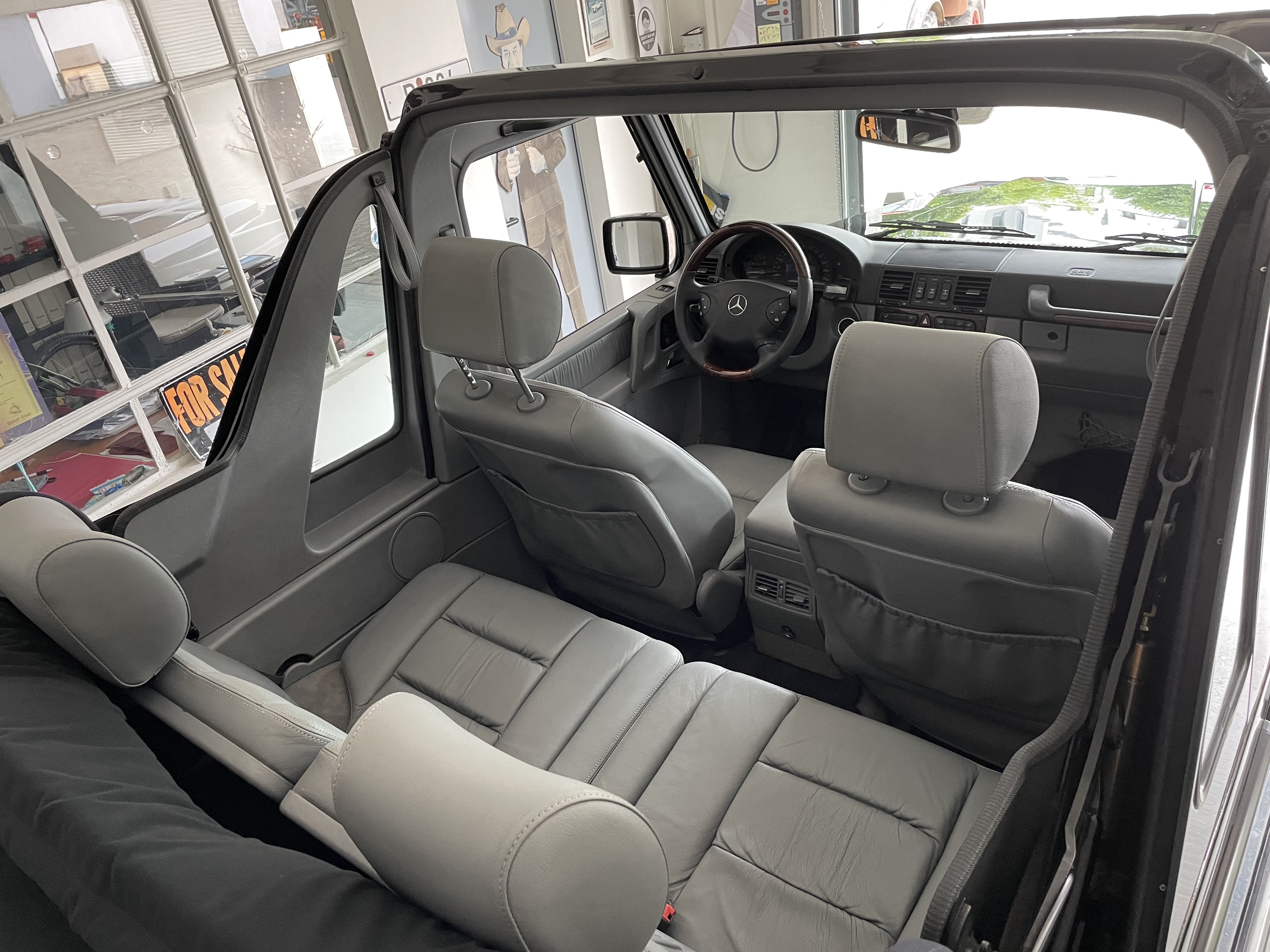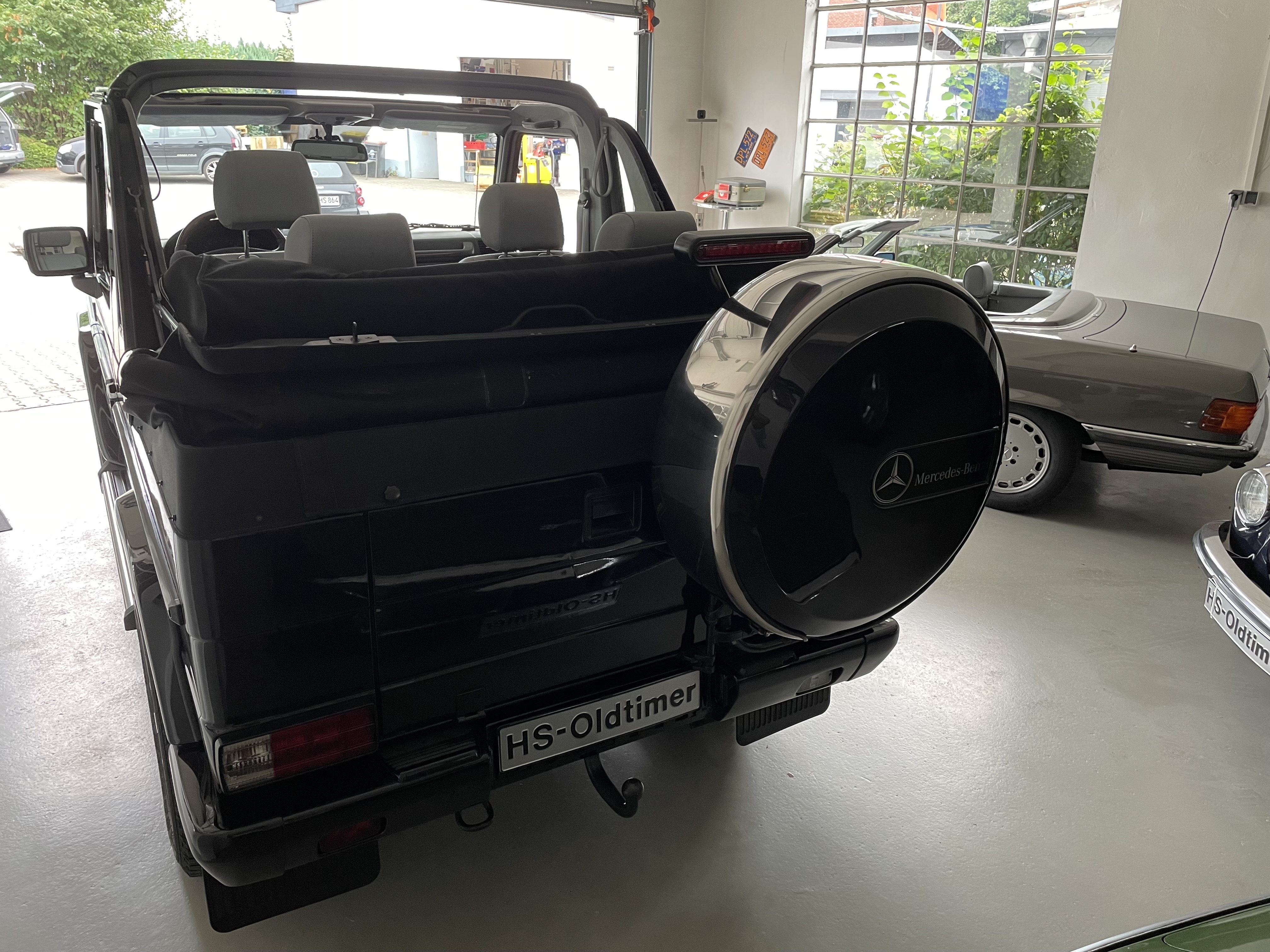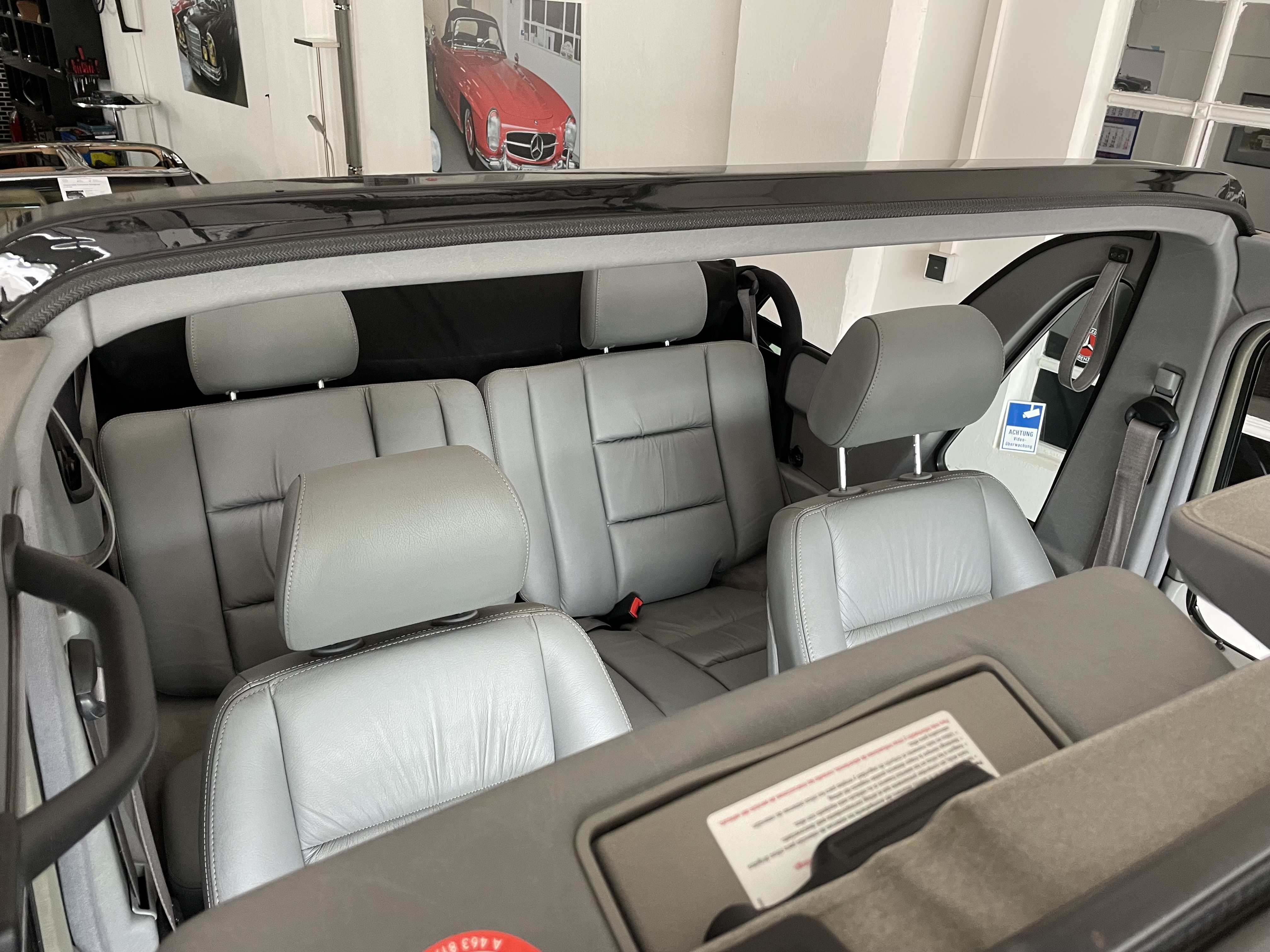 Dieses G 400 Cabriolet kommt aus Spanien ohne Rostprobleme im sehr gepflegten Zustand. Der TÜV ist bereits gemacht, somit kann er problemlos in Deutschland zugelassen werden. Die Kilometer sind anhand des Scheckheftes und zahlreicher Rechnungen (Mercedes Madrid) im Zeitraum von 2007 bis 2019 sehr gut nachvollziehbar. Es sind rund 27.000 Euro in den letzten Jahren investiert worden. Der G fährt sich phantastisch!