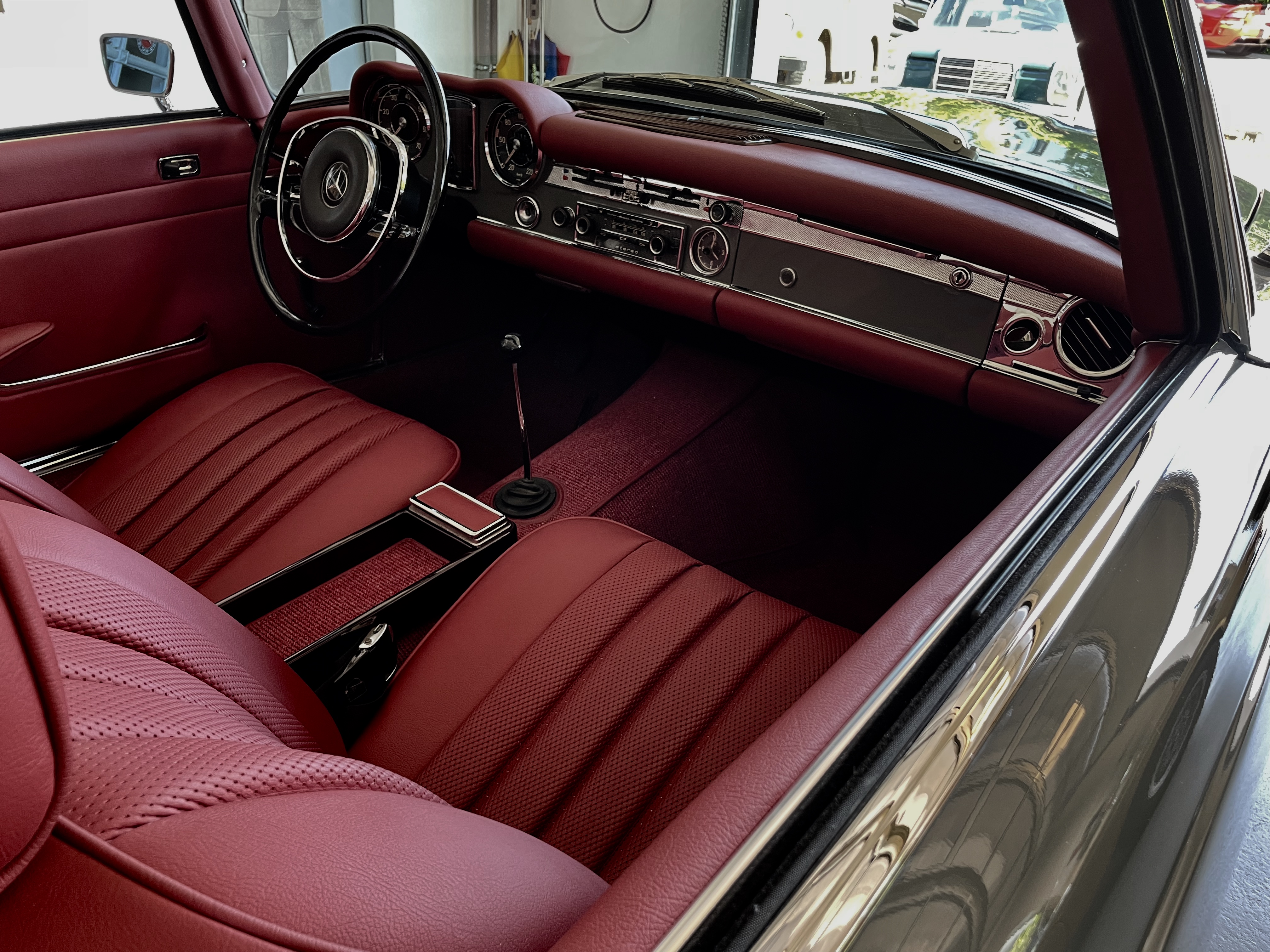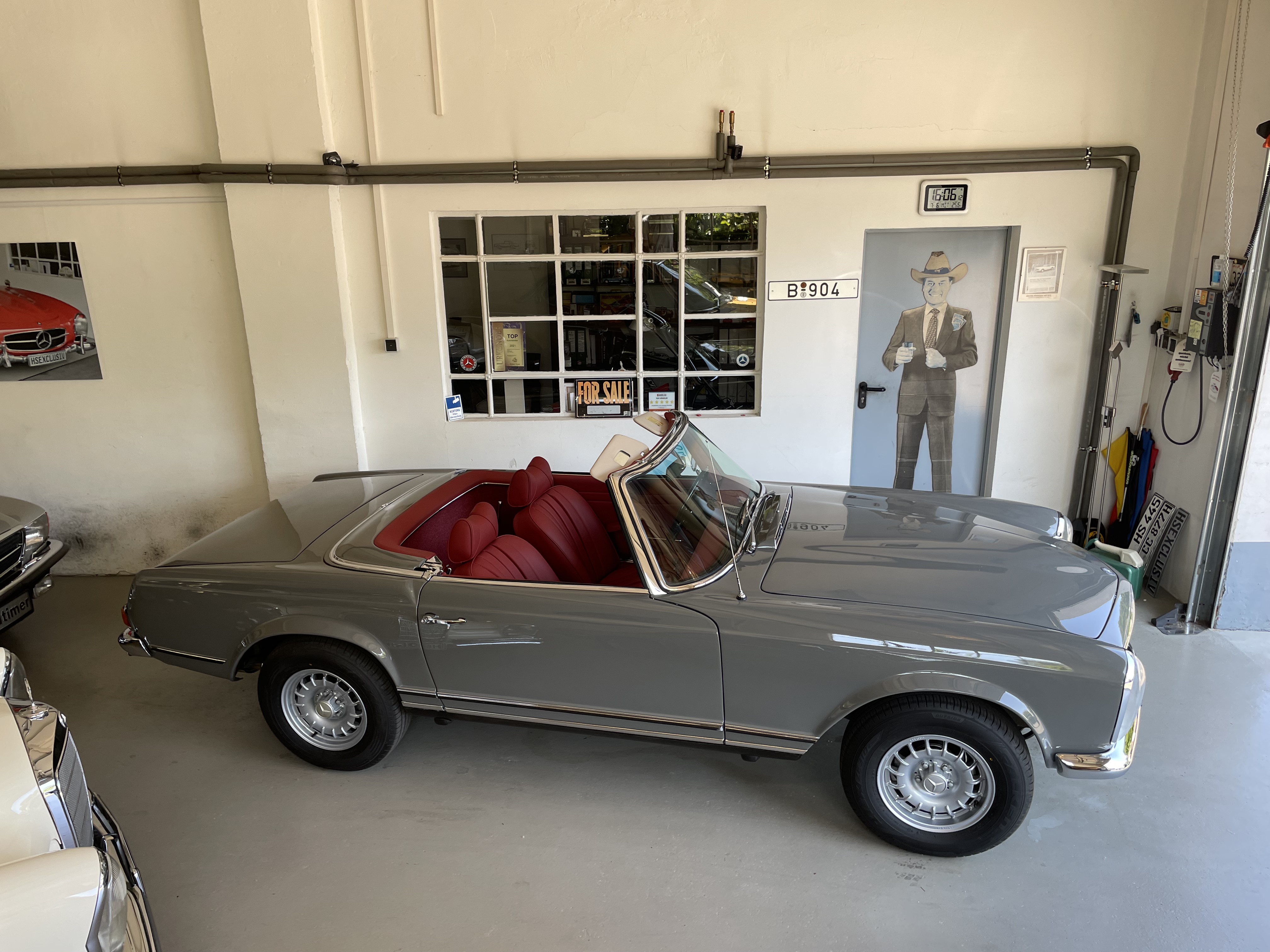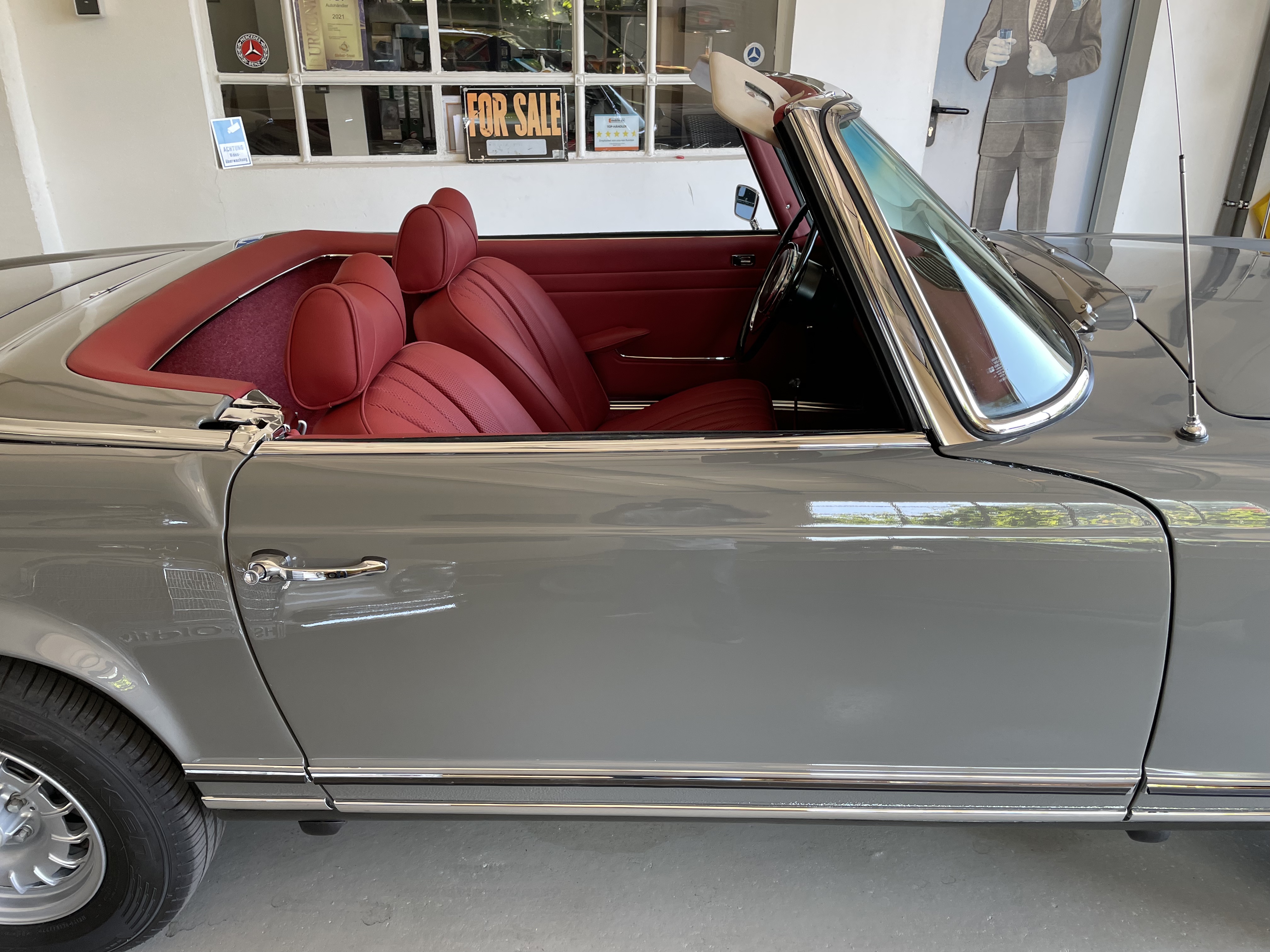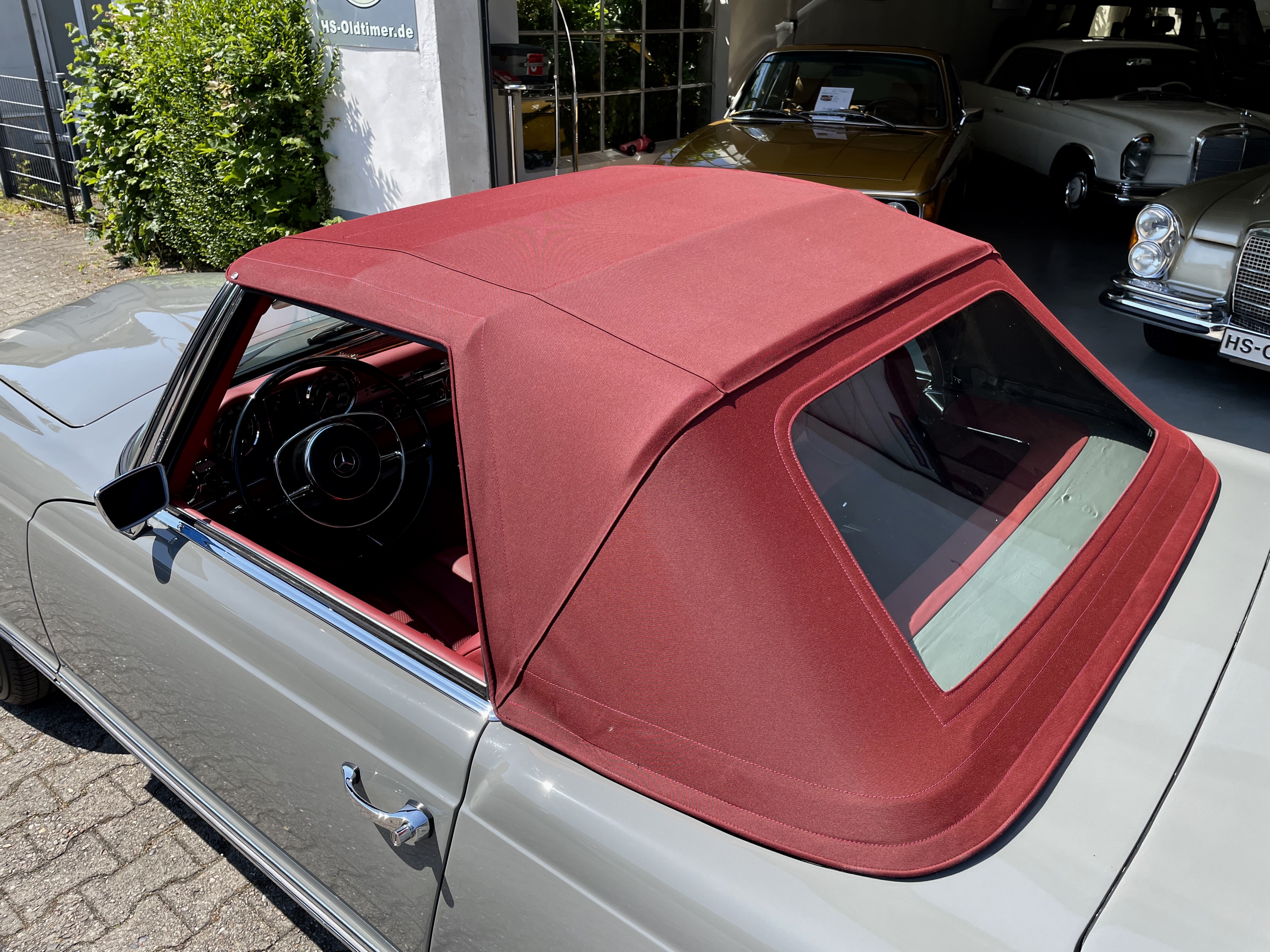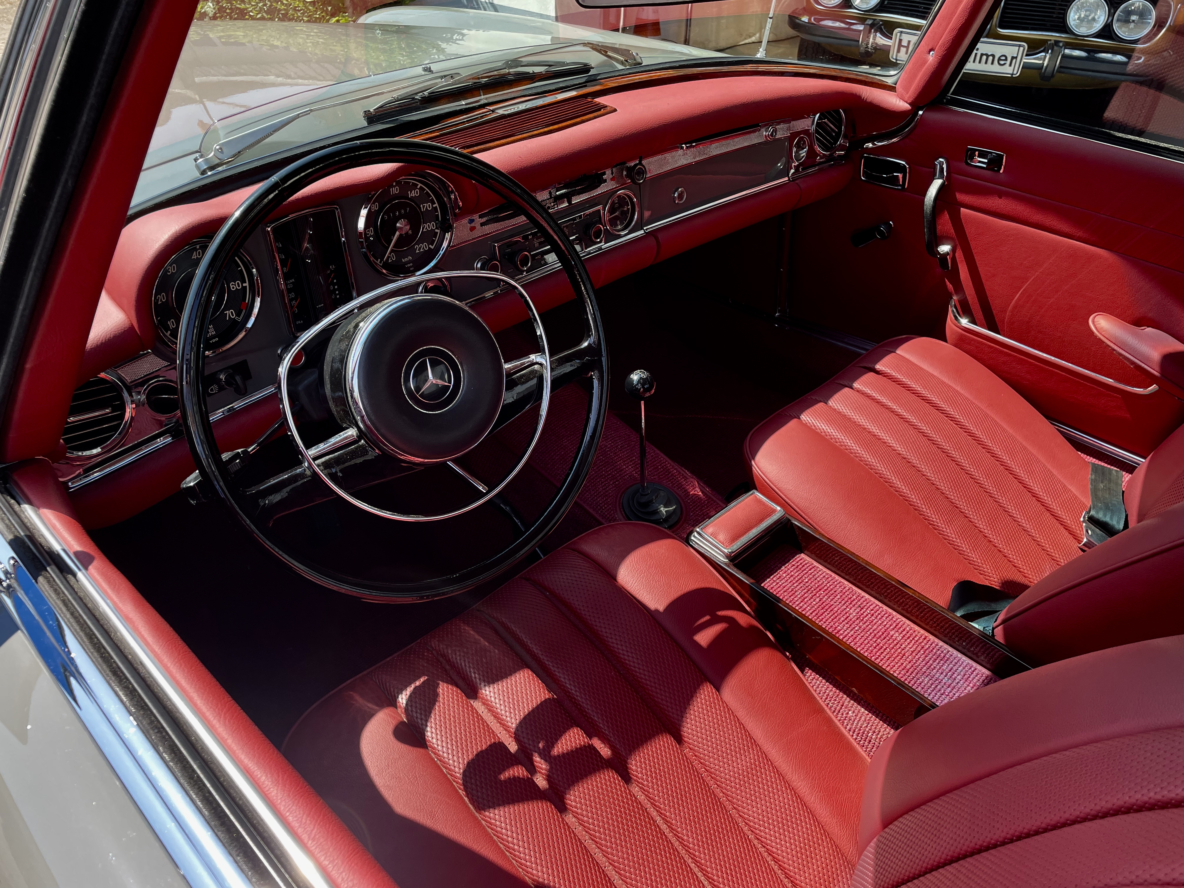 Diese Pagode ist aufwendig restauriert worden. TÜV und H-Abnahme sind natürlich gemacht. Deutscher Brief ist vorhanden. Original Farbgebung: Die Außenfarbe ist 124 G arabergrau und das Hardtop ist 173 G anthrazitgrau. Fährt sich phantastisch. Schon 800 Kilometer nach Fertigstellung gefahren, jetzt passt alles. Wer eine besonders schöne 280 SL Pagode sucht, sollte sich diese auf jeden Fall einmal anschauen, es lohnt sich wie immer bei uns. Wir freuen uns auf Ihren Anruf und Besuch. Weitere Infos und schöne Oldtimer finden Sie auf unserer eigenen Homepage: www.hs-oldtimer.de
