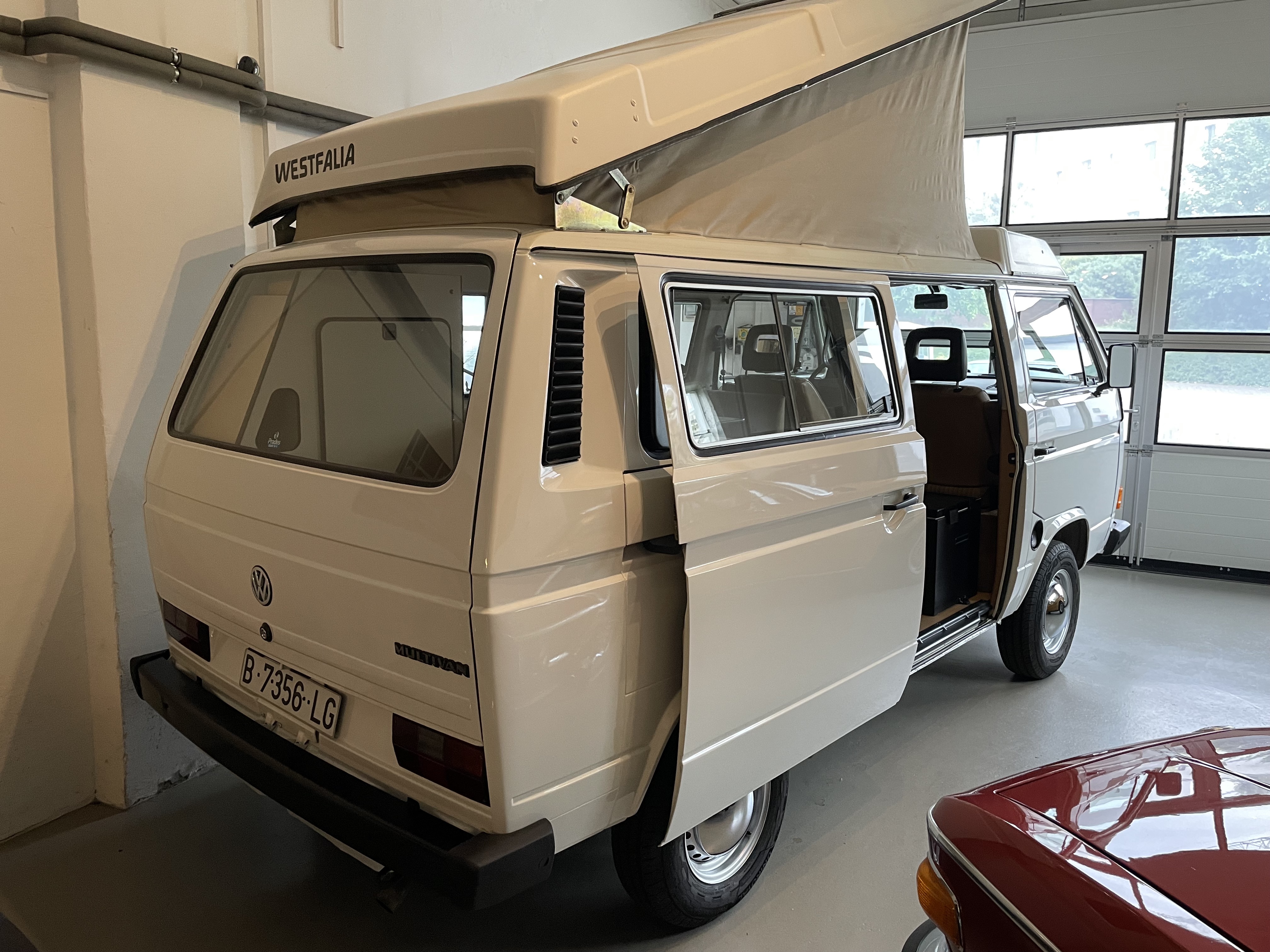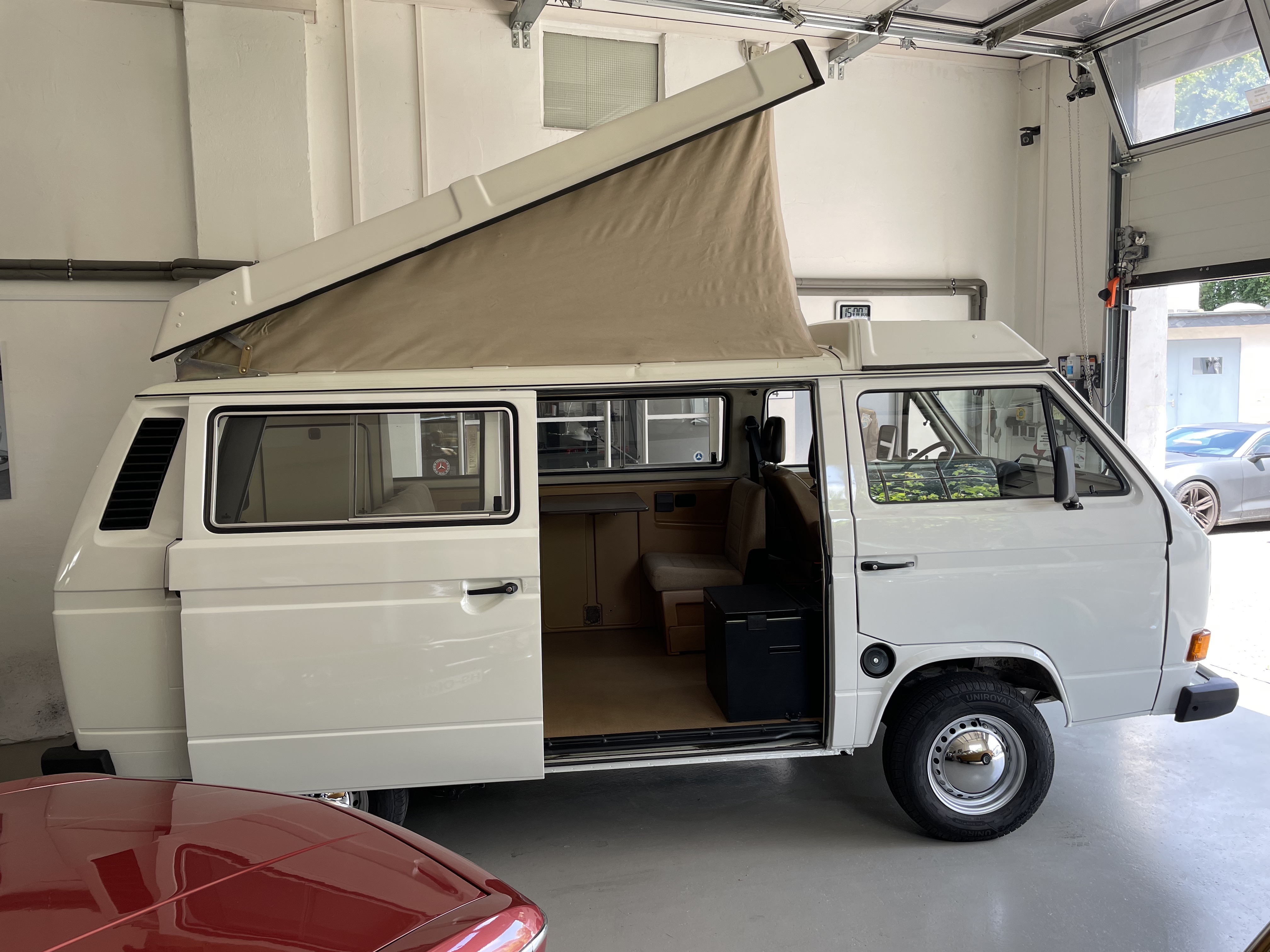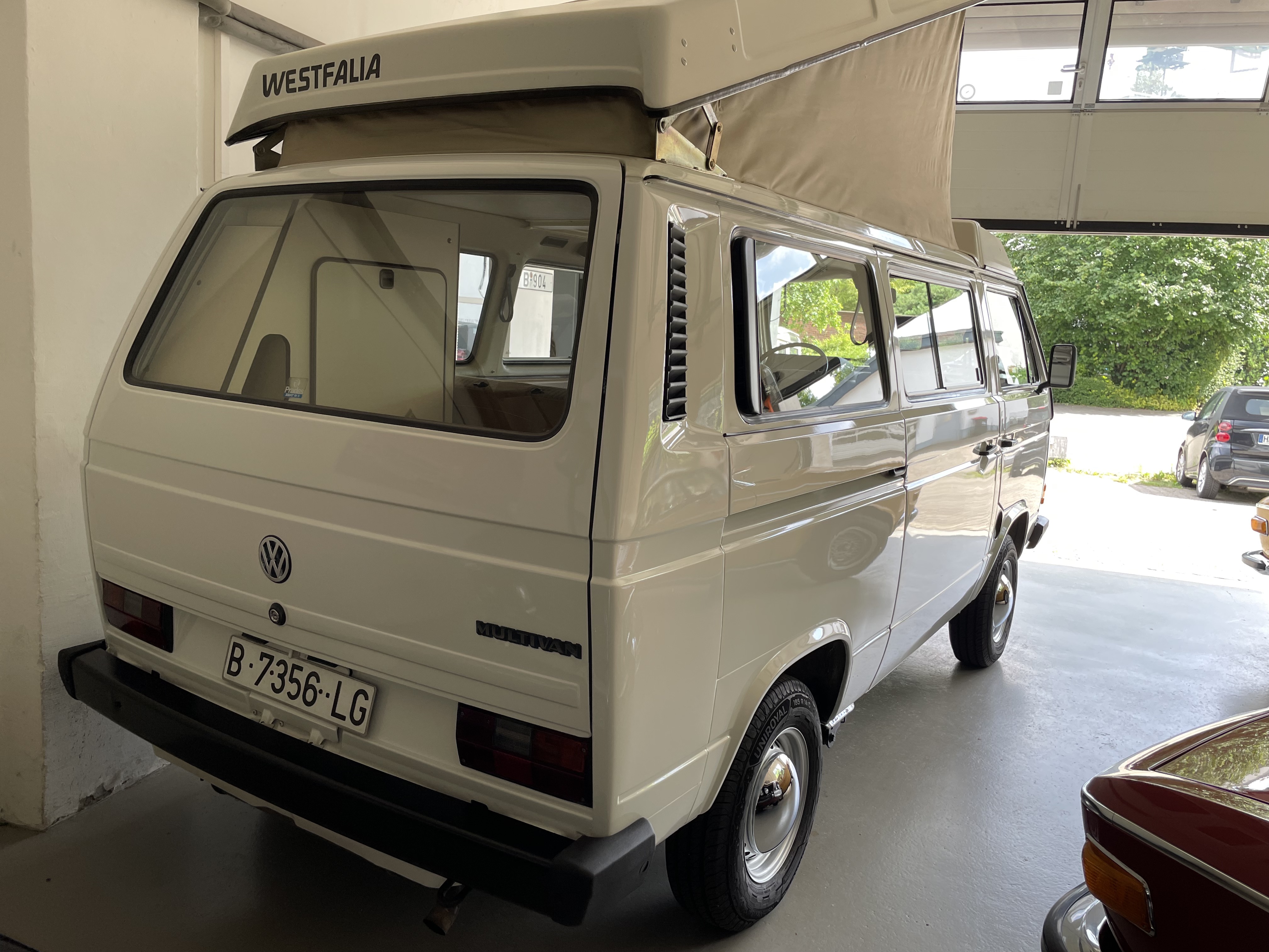 Gepflegter T3 als Multivan mit Aufstelldach von Westfalia. Sagenhafte Blechsubstanz, der Bulli kommt aus Spanien. Die TÜV und H-Abnahme inkl. einer Inspektion, einige Gummis, neue Stoßdämpfer, Reifen etc. wurden gemacht.  Wer einen richtig guten und gesunden T3 sucht, sollte sich diesen auf jeden Fall einmal anschauen, es lohnt sich wie immer bei uns. Wir freuen uns auf Ihren Anruf und Besuch. Weitere Infos und schöne Oldtimer finden Sie auf unserer eigenen Homepage: www.hs-oldtimer.de