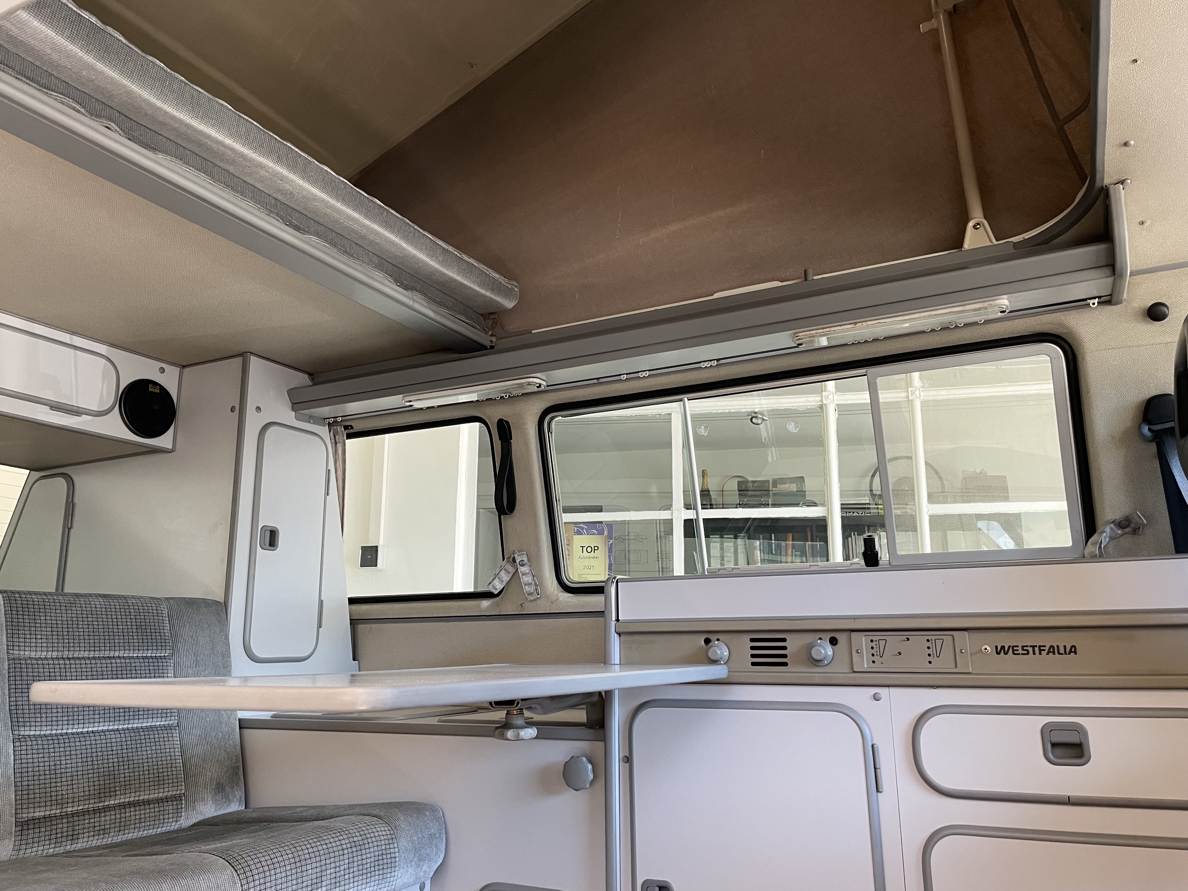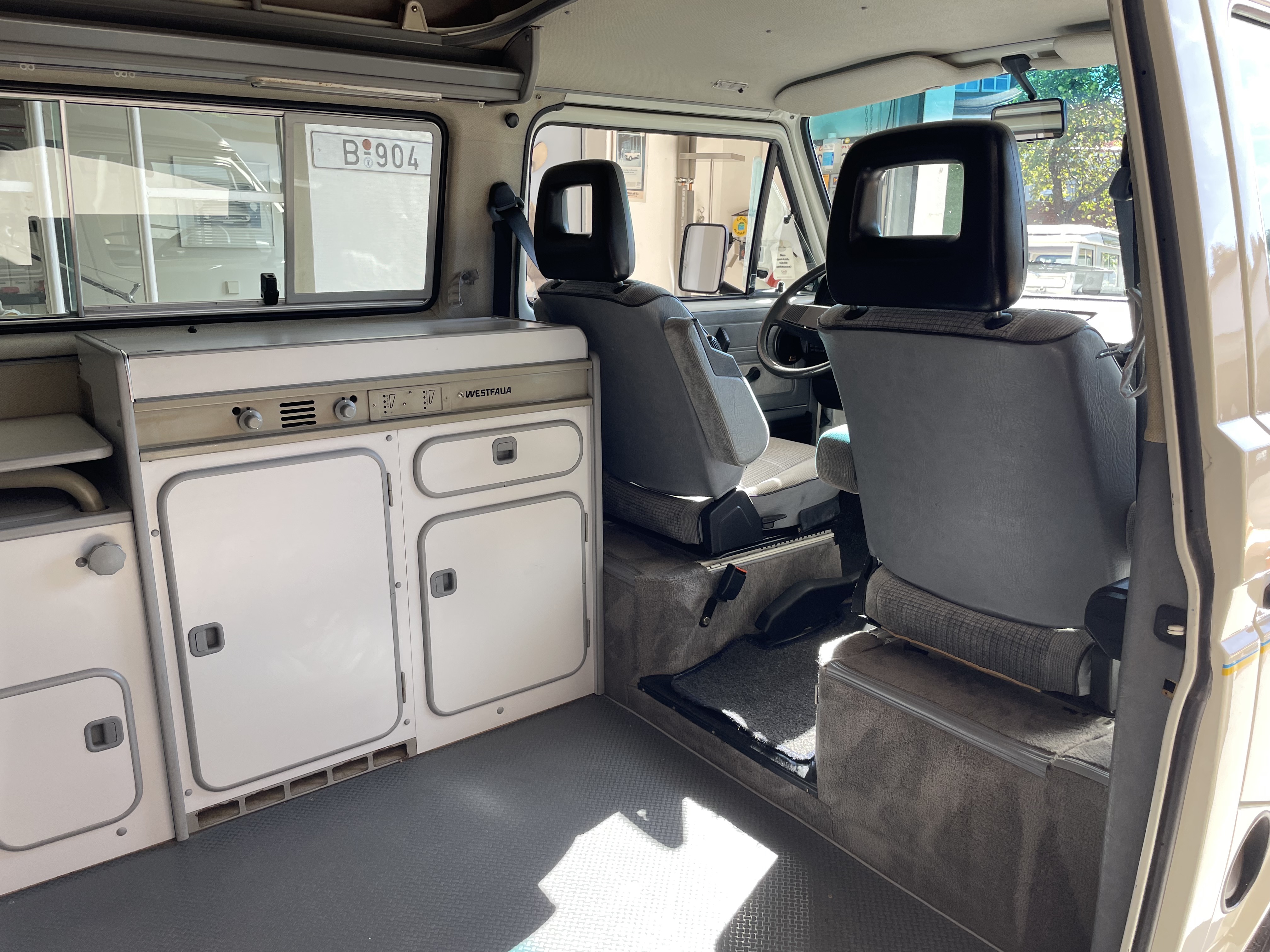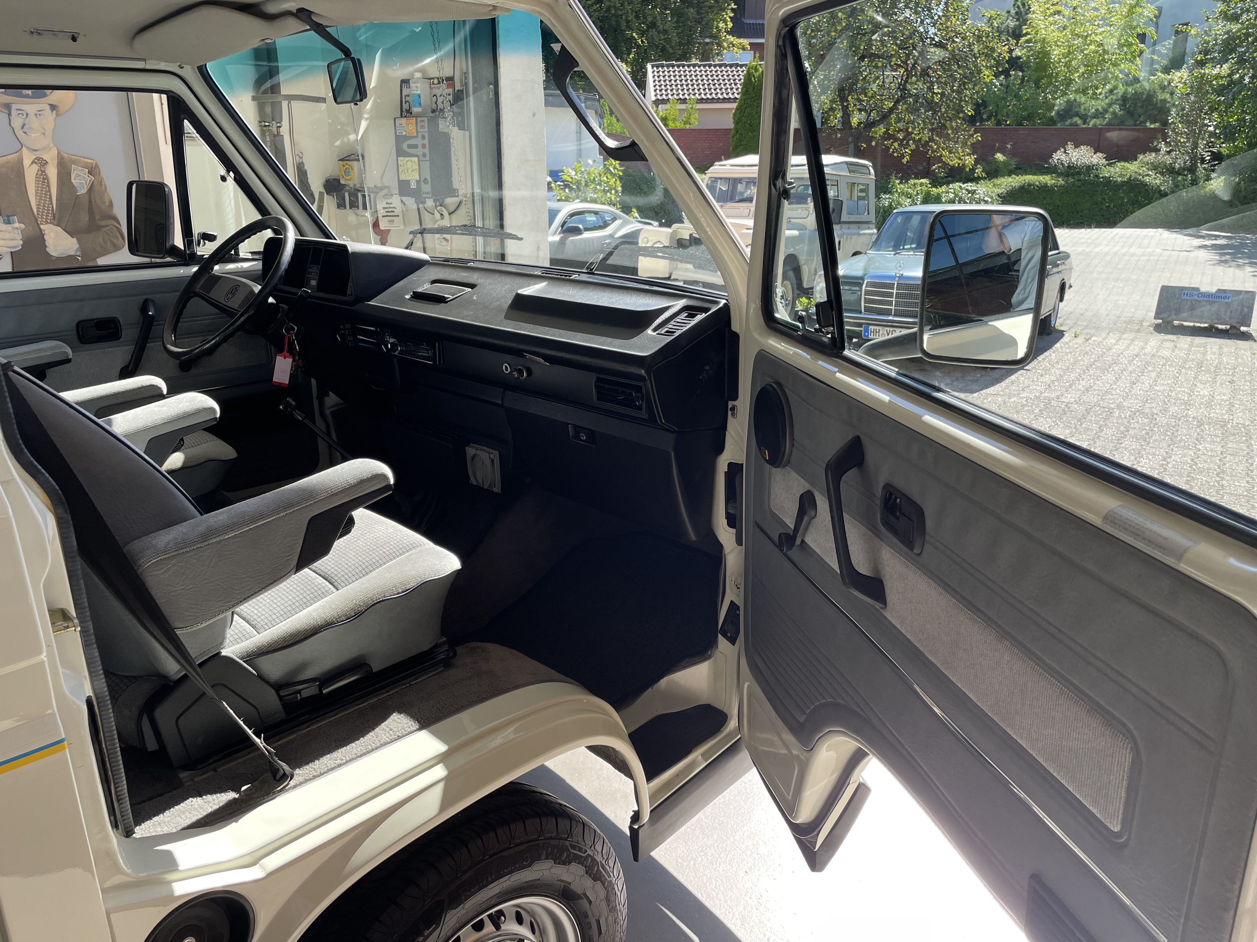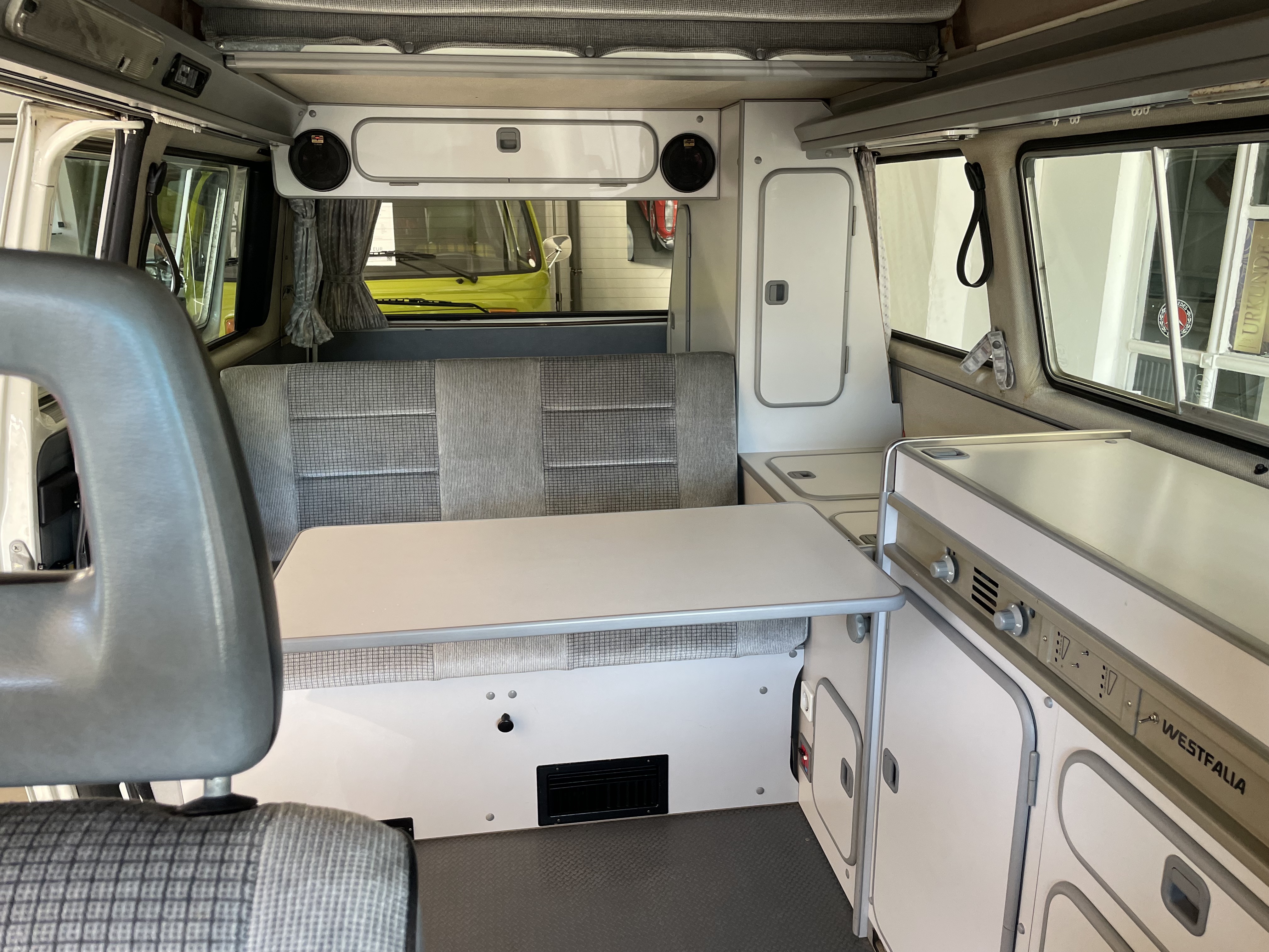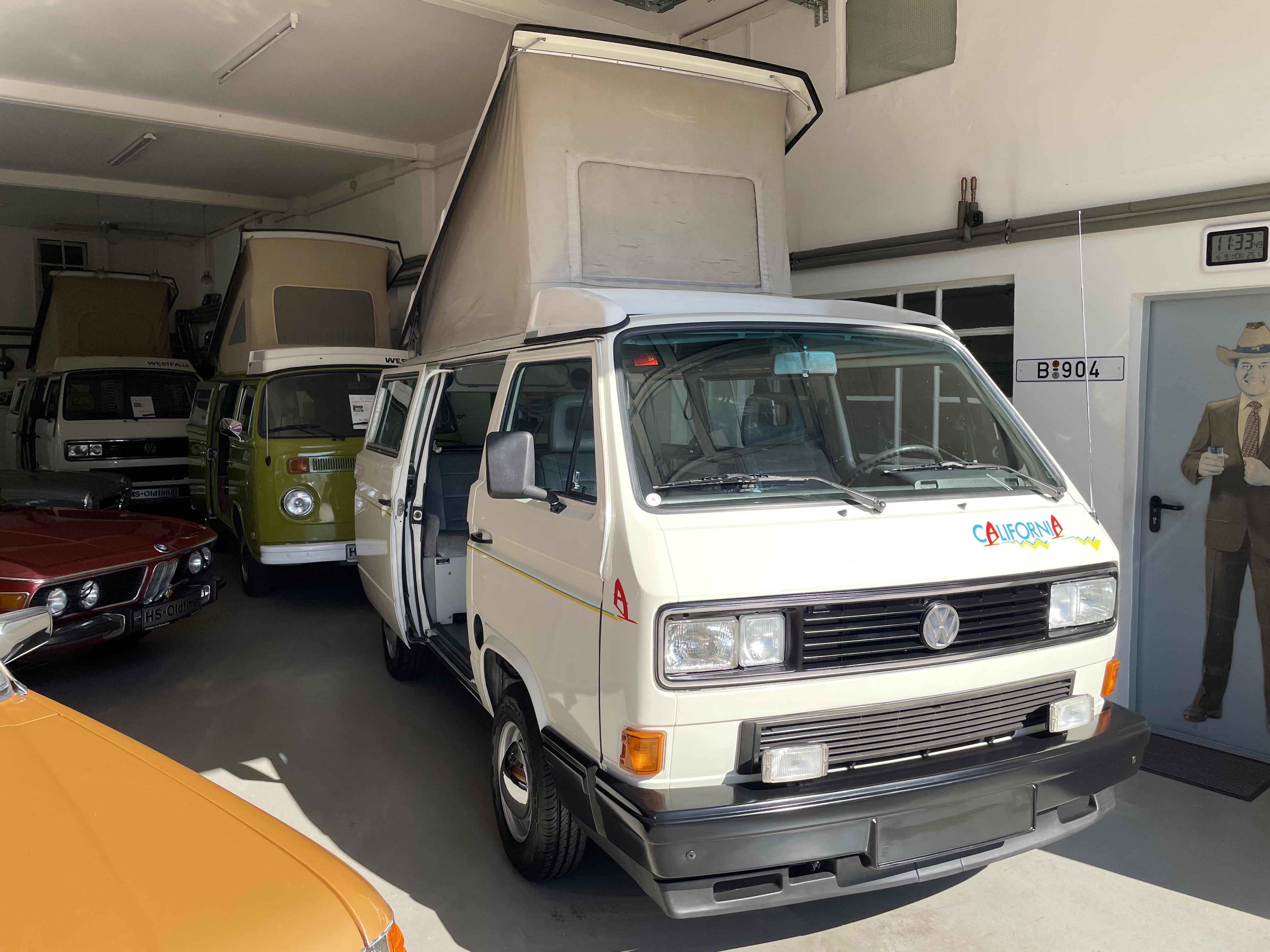 Gepflegter T3 California  Westfalia Camper mit Aufstelldach.  Sagenhafte Blechsubstanz, der Bulli kommt aus Südeuropa.  Die TÜV und H-Abnahme, Gasprüfung inkl. einer Inspektion mit Zahnriemen, Rifen etc., hier wurde viel gemacht.  Bis auf Kleinigkeiten kein Handlungsbedarf.  Wer einen originalen und besonders guten T3 sucht, sollte sich diesen auf jeden Fall einmal anschauen, es lohnt sich wie immer bei uns. Wir freuen uns auf Ihren Anruf und Besuch. Weitere Infos und schöne Oldtimer finden Sie auf unserer eigenen Homepage: www.hs-oldtimer.de