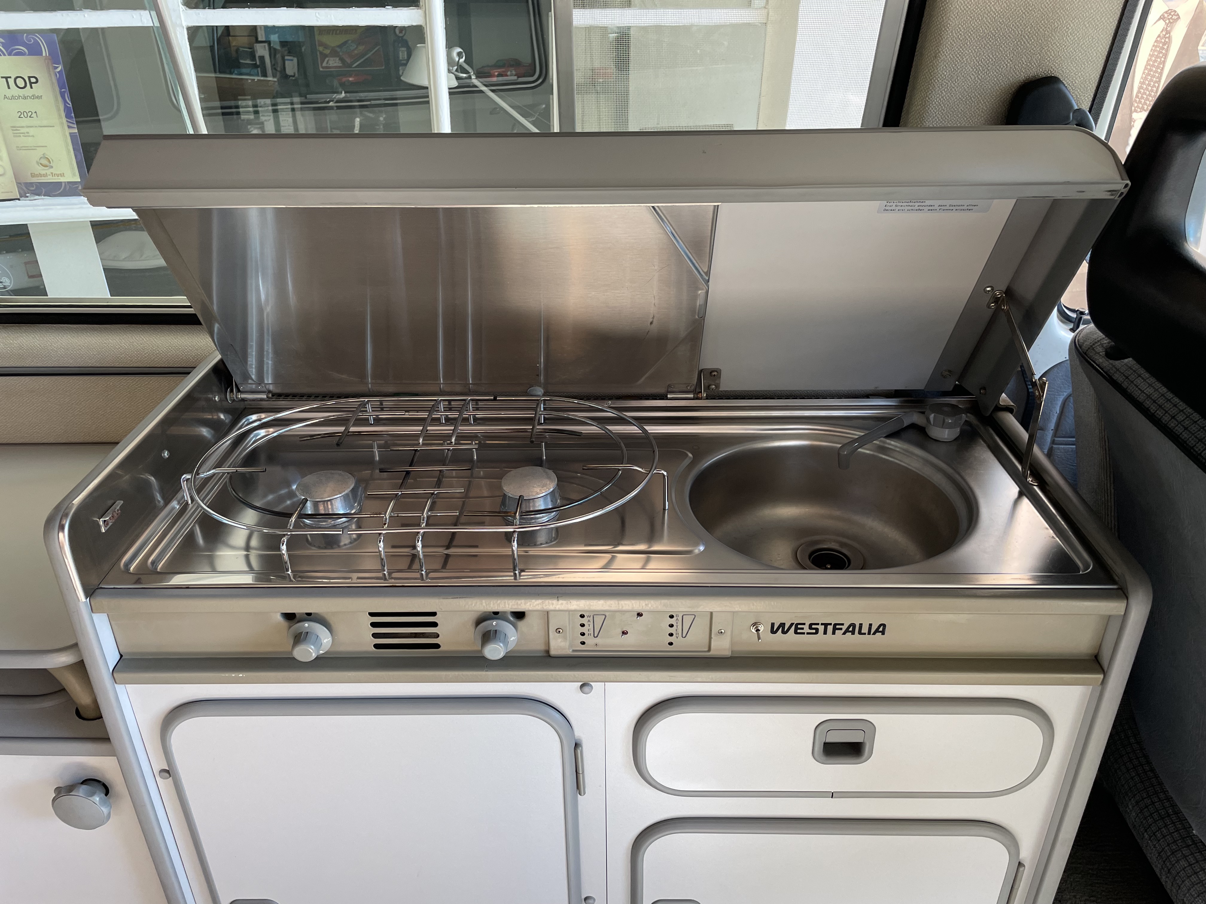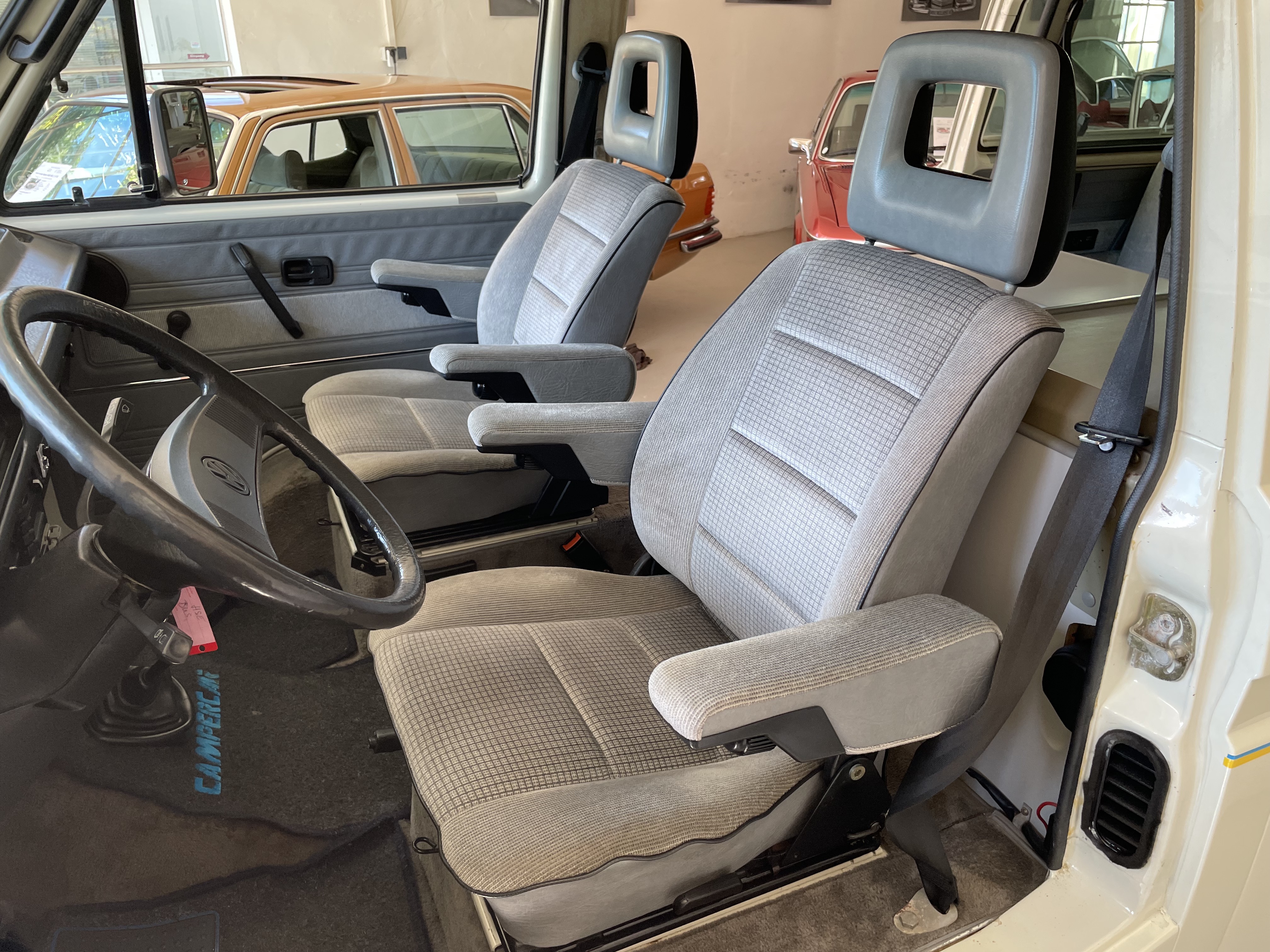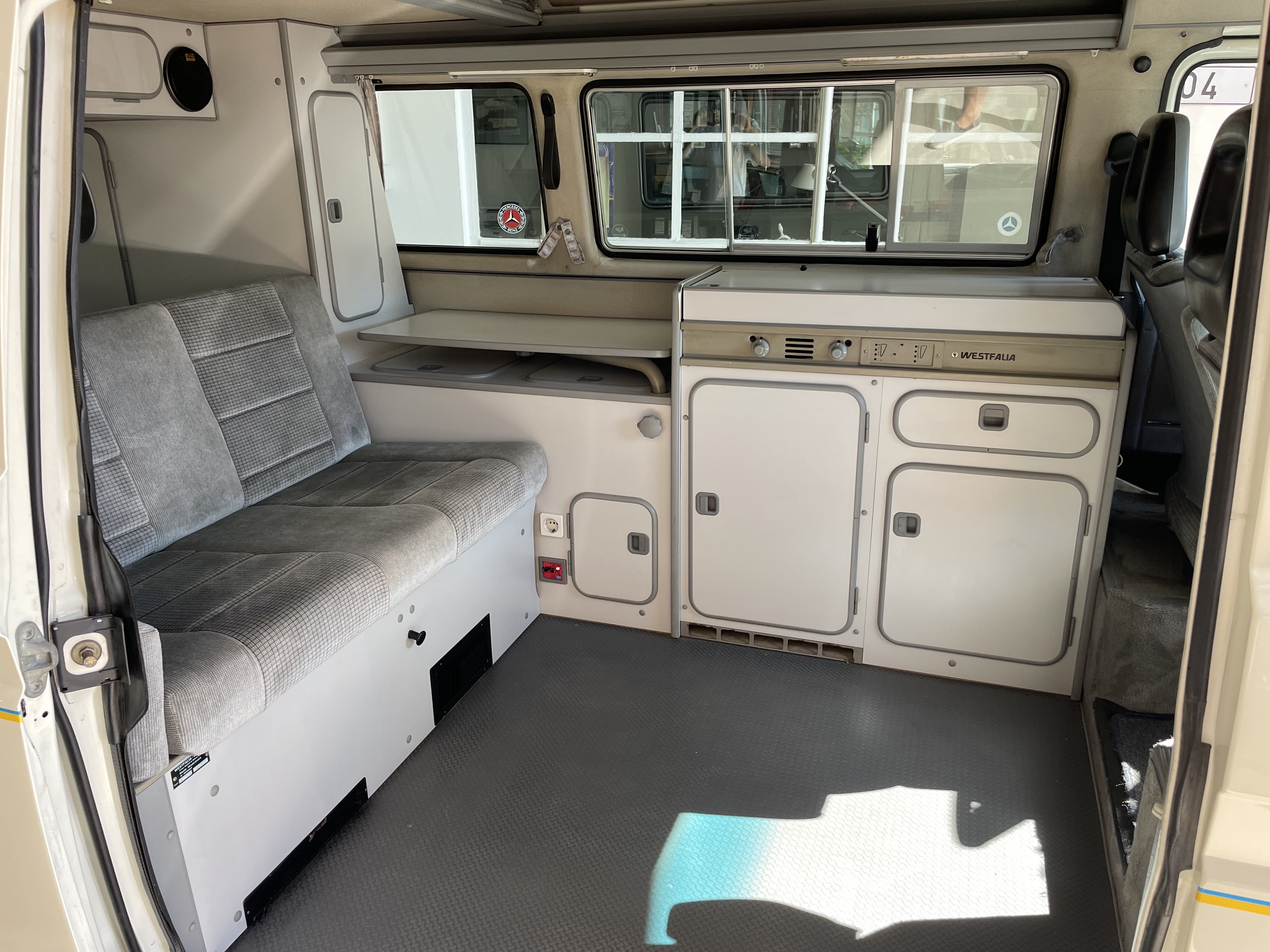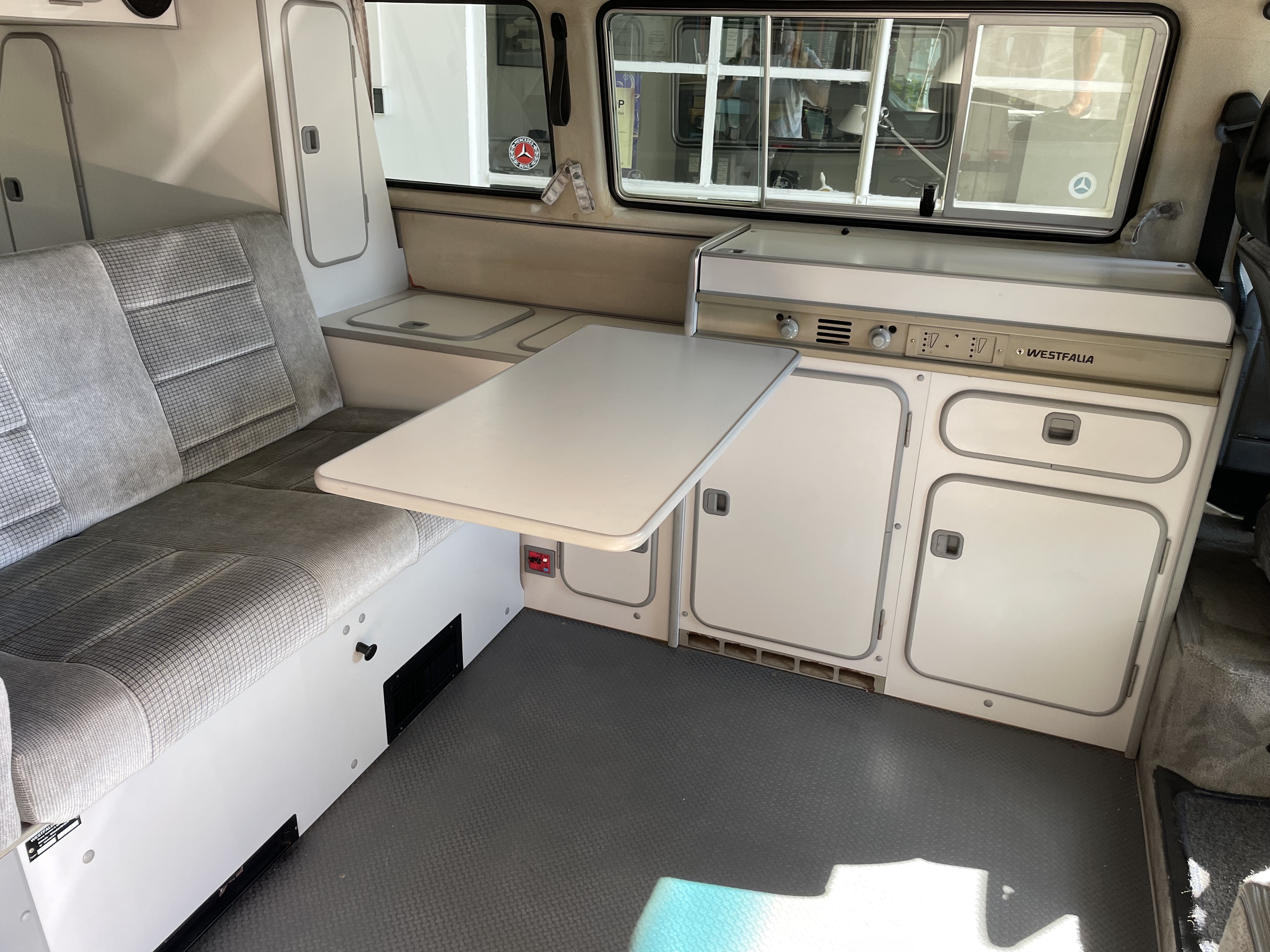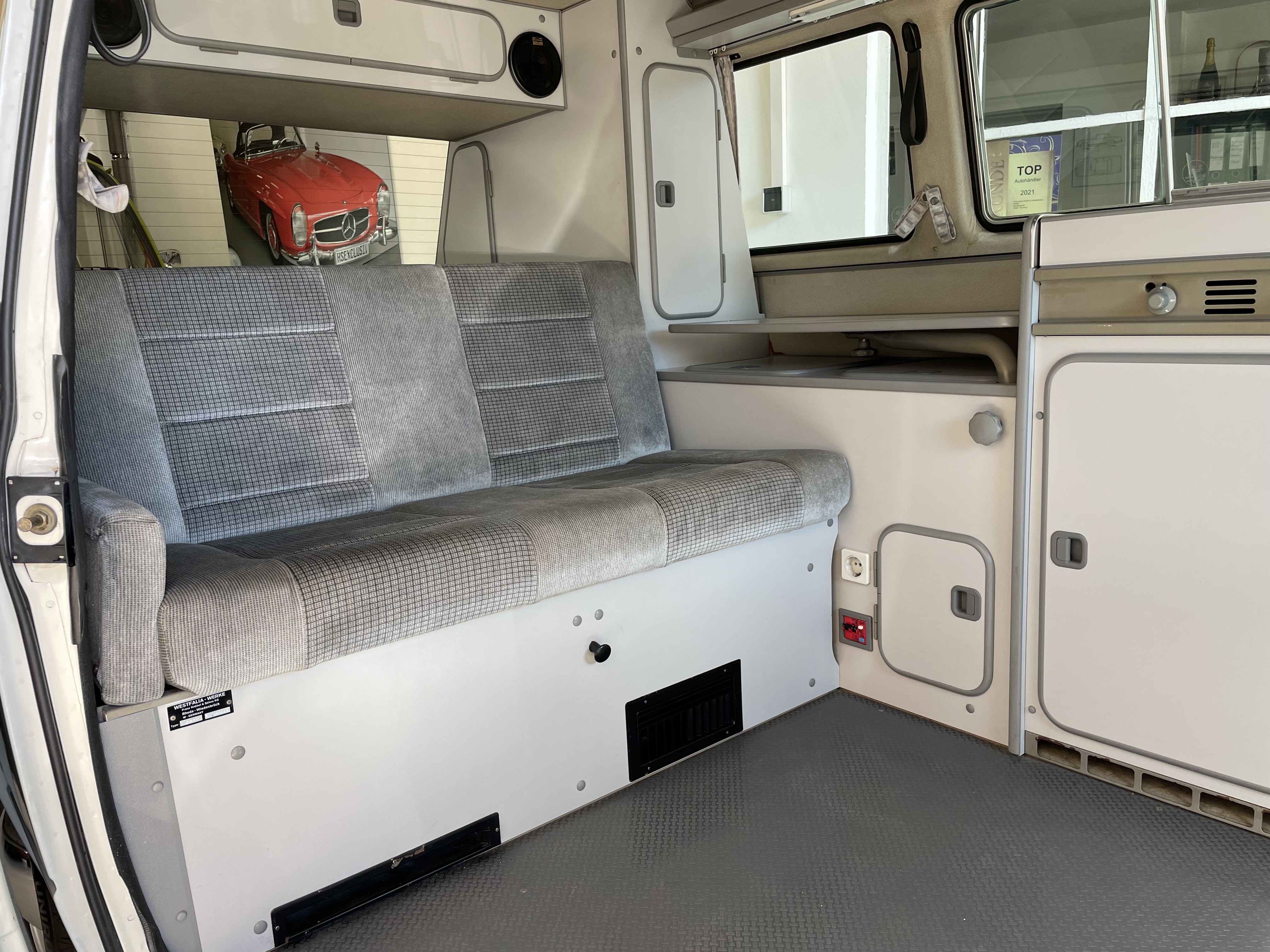 Gepflegter T3 California  Westfalia Camper mit Aufstelldach.  Sagenhafte Blechsubstanz, der Bulli kommt aus Südeuropa.  Die TÜV und H-Abnahme, Gasprüfung inkl. einer Inspektion mit Zahnriemen, Rifen etc., hier wurde viel gemacht.  Bis auf Kleinigkeiten kein Handlungsbedarf.  Wer einen originalen und besonders guten T3 sucht, sollte sich diesen auf jeden Fall einmal anschauen, es lohnt sich wie immer bei uns. Wir freuen uns auf Ihren Anruf und Besuch. Weitere Infos und schöne Oldtimer finden Sie auf unserer eigenen Homepage: www.hs-oldtimer.de